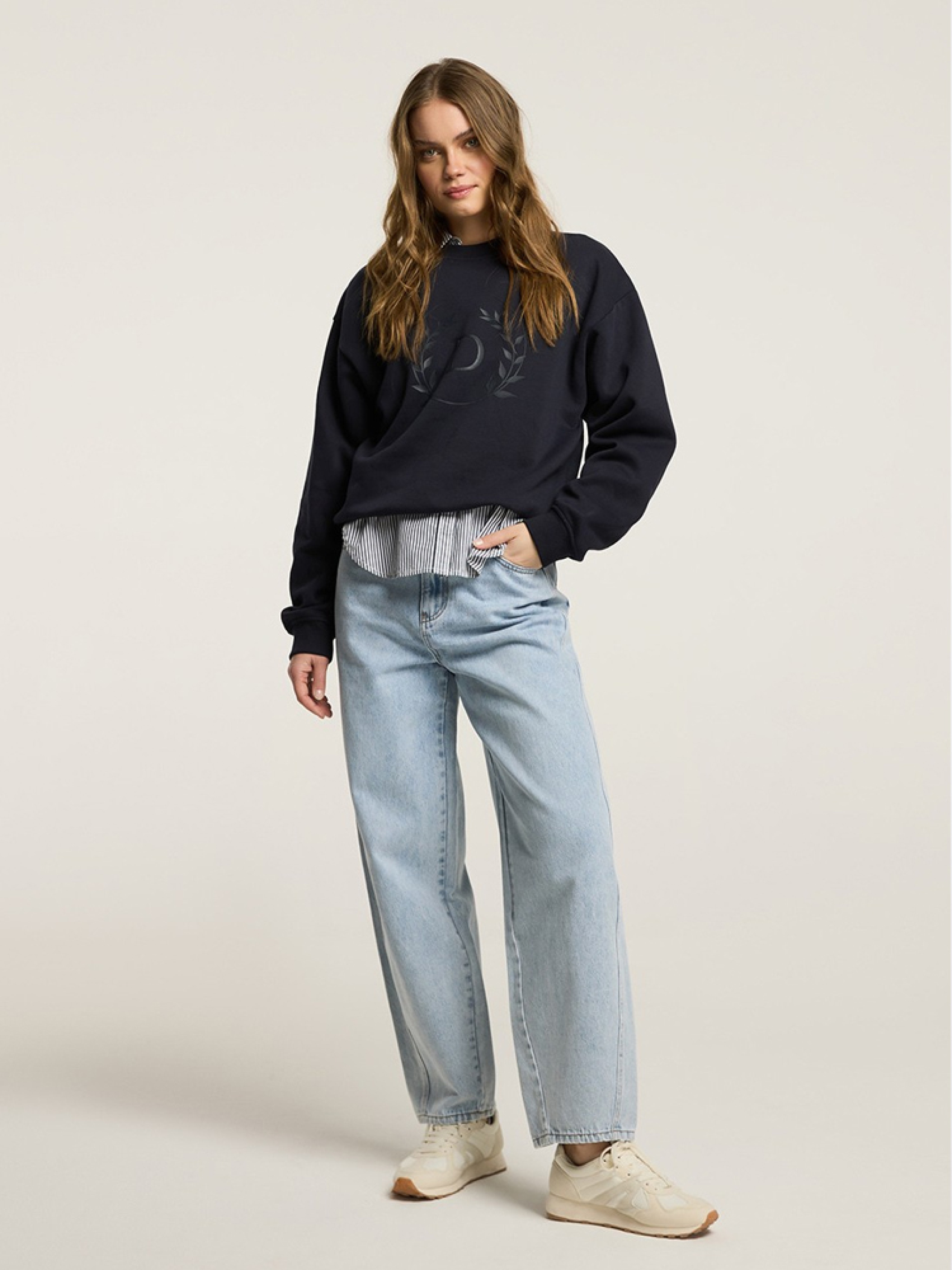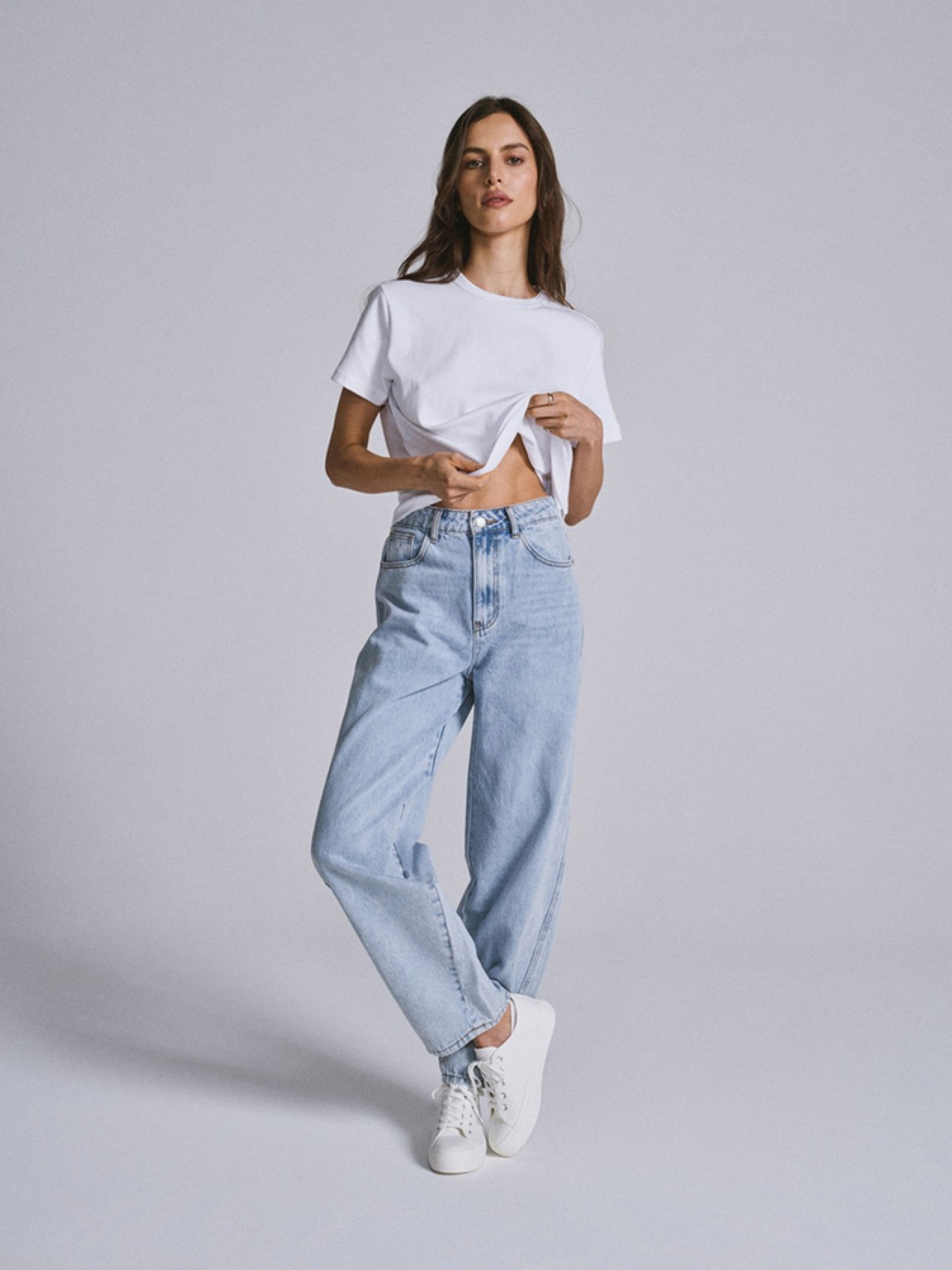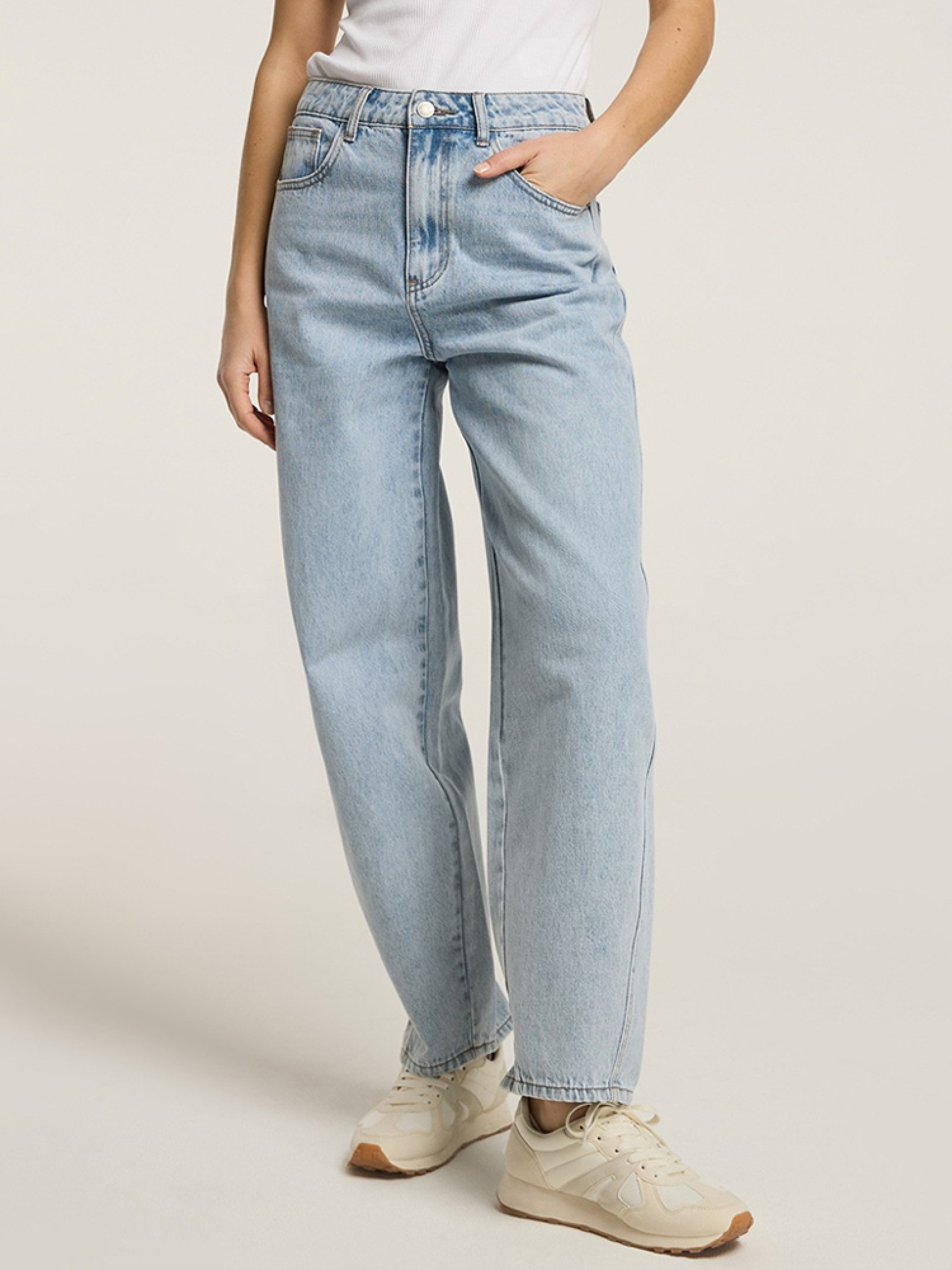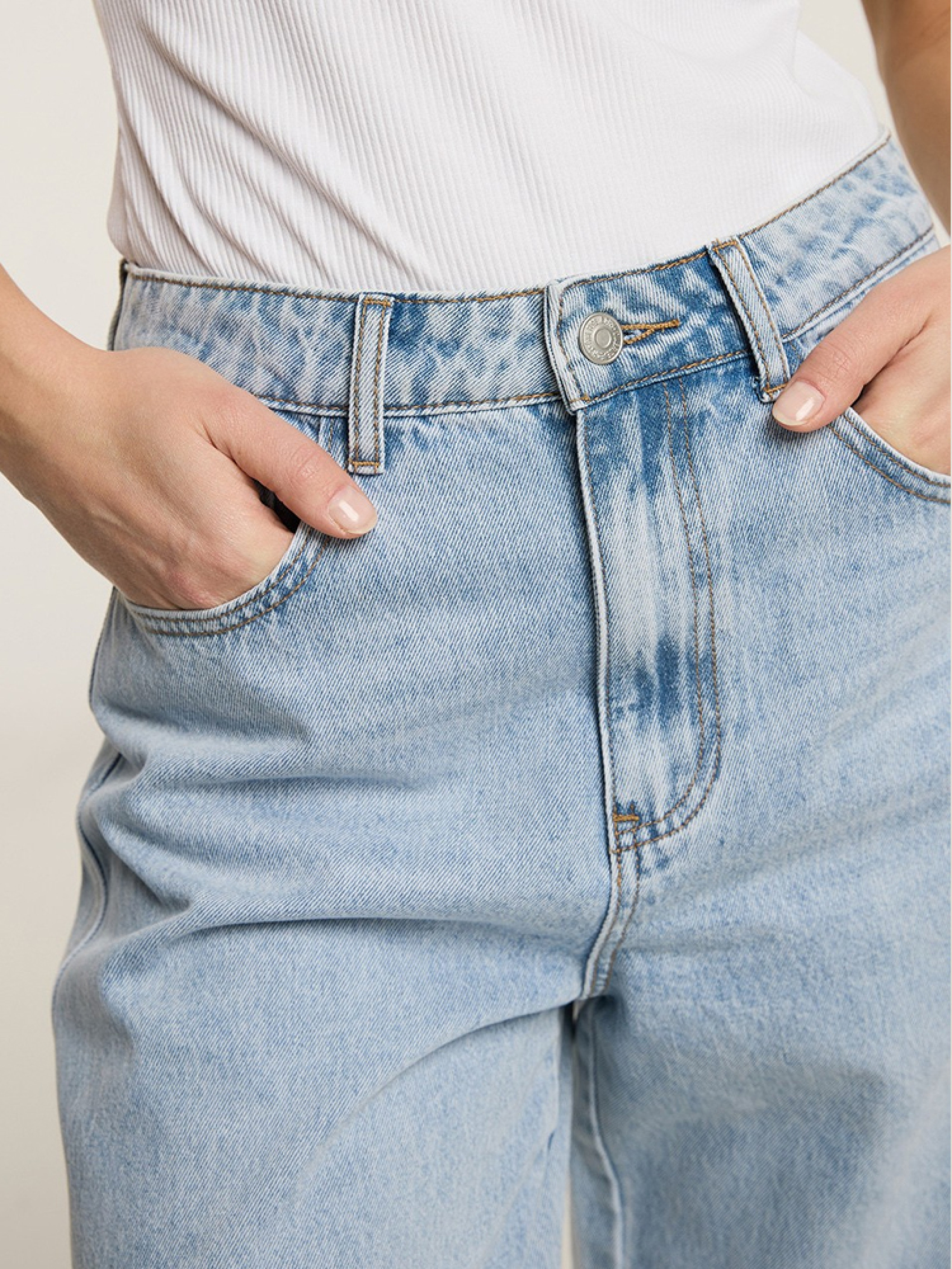 Штаны CORR 10046091 Женские джинсовые брюки из коллекции TREND из мягкого хлопка - завышенная талия, - свободные штанины, сужающиеся к щиколотке, - матовые серебристые аксессуары, - силиконовая этикетка, - доступны в приглушенном светло-голубом цвете. Сезон: Весна/Лето 2025 Состав: 100% хлопок Уход: - стирка при максимум 40 °С - не отбеливать - сушите при низкой температуре - гладить максимум при темп. 150°С - не химчистка