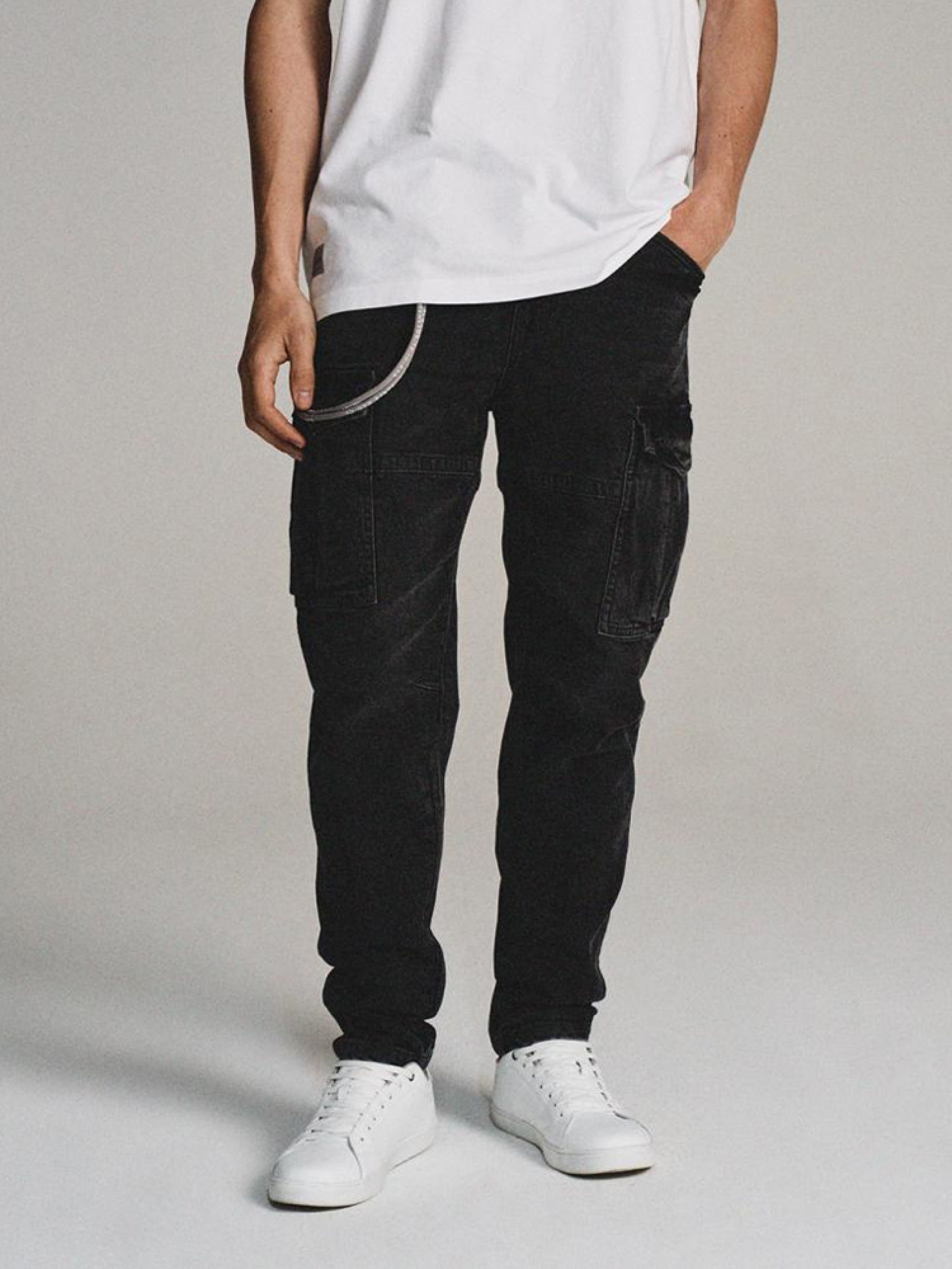 Штаны WIKTORS 10045272 Мужские джинсовые брюки - изготовлены из хлопка с эластаном, - имеют удобные карманы-карго и два кармана сзади, - имеют шнурок для ключей, - доступны в графитовом цвете. Сезон: осень/зима 2024 Состав: 99% хлопок 1% эластан Уход: - стирка при максимум 40 °С - не отбеливать - сушите при низкой температуре - гладить максимум при темп. 150°С - не химчистка Размер на модели - 34 Рост модели - 189 см