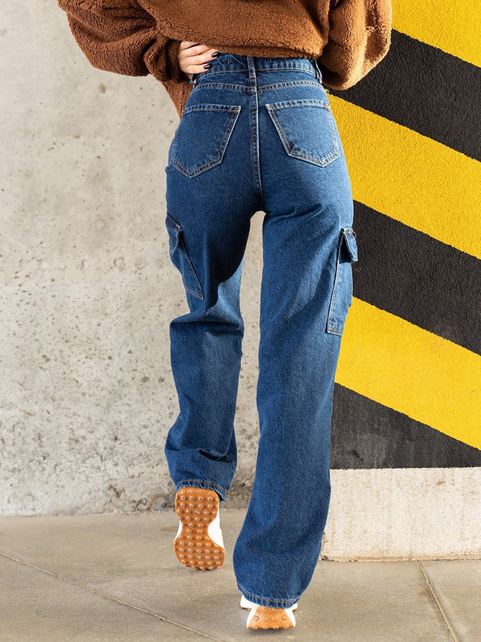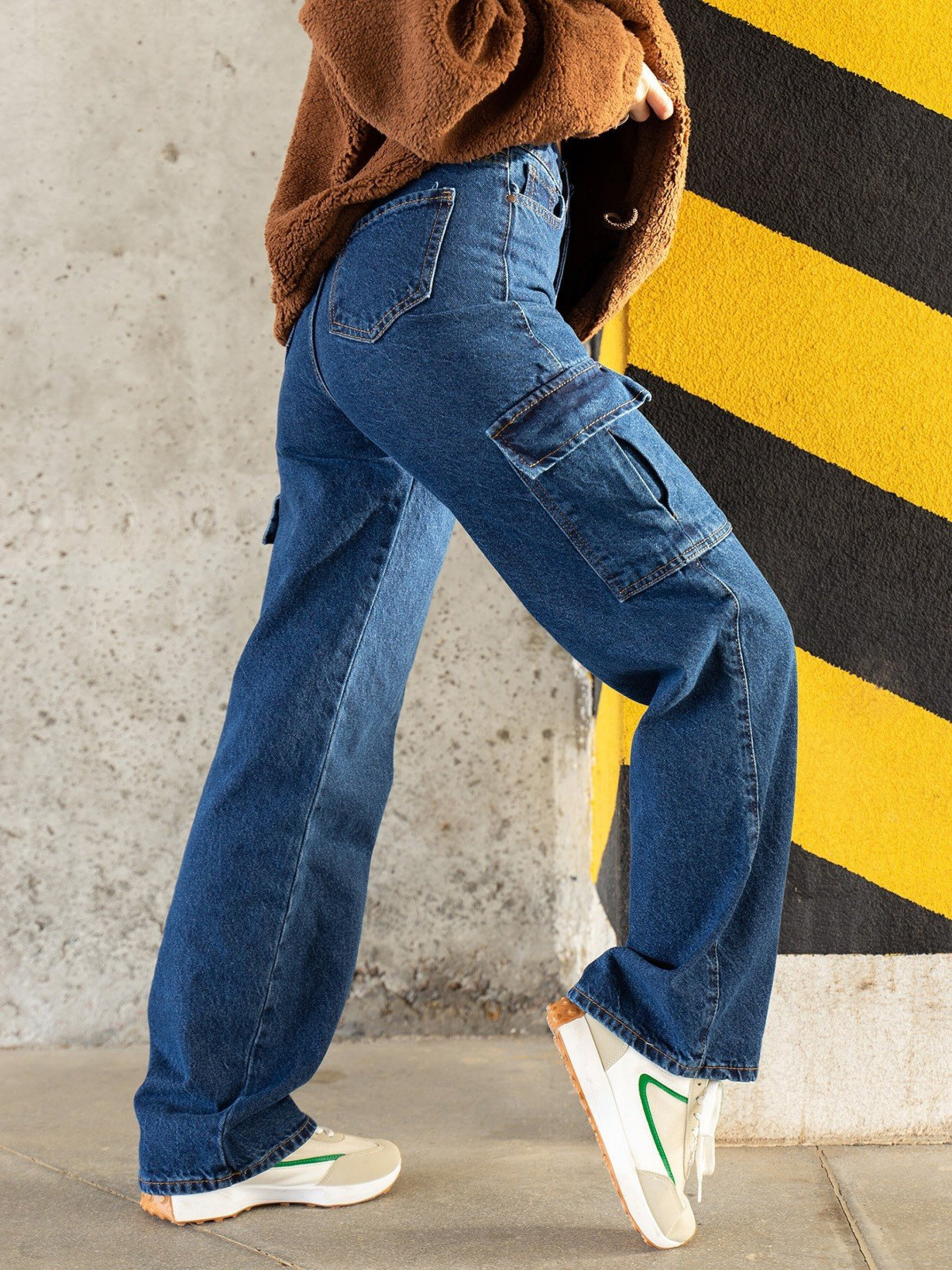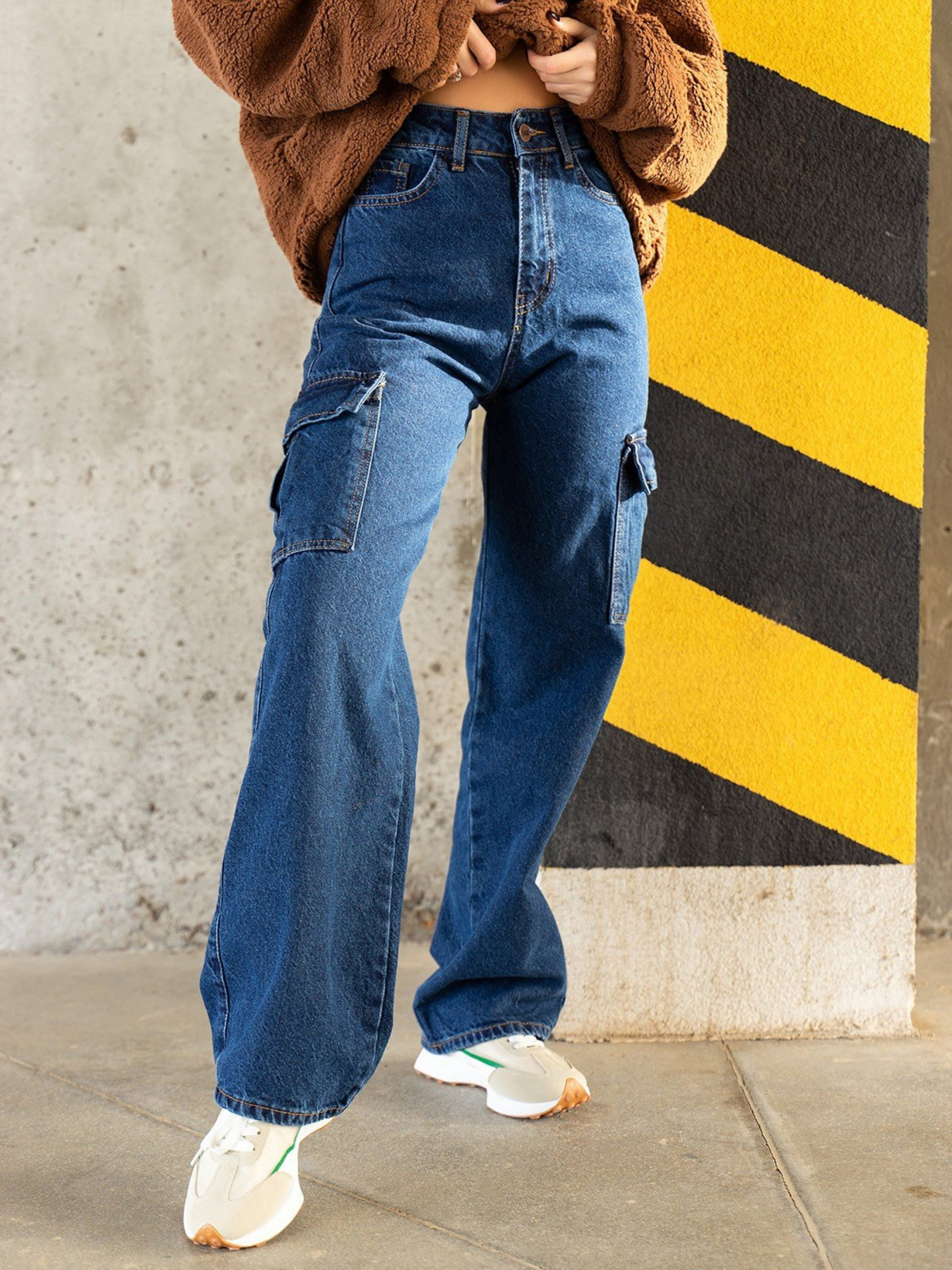 Сині широкі джинси карго з кишенями. Склад тканини: 95% бавовна, 2% поліестер, 3% еластан. Матеріал: Джинс Напівобхват: Талія: 26 (32), 27 (33), 28 (34), 29 (35), 30 (36), 31 (37), 32 (38), Стегна: 26 (48), 27 (49), 28 (50), 29 (51), 30 (52), 31 (53), 32 (54), Довжина виробу -103, Довжина з внутрішнього шва - 77, Тканина: Низька еластичність.