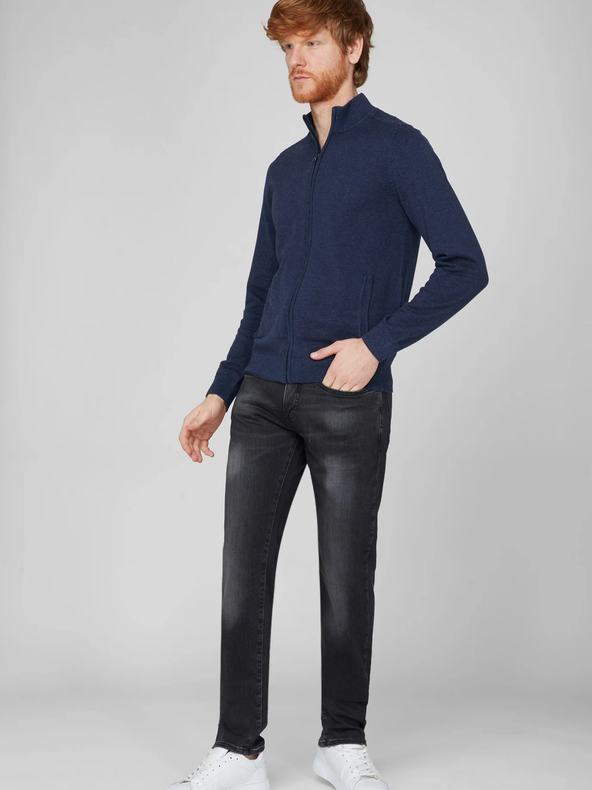 Комфорт и актуальный стиль в повседневном исполнении Основные характеристики Цвет: насыщенный темно-синий — универсальный и стильный выбор Материал: 61 % хлопок, 37 % модал, 2 % эластан — мягкая, дышащая и слегка эластичная ткань Крой: Slіm Fit с прорисовкой силуэта — современный и аккуратный силуэт Посадка: средняя — оптимально для большинства типов фигуры Детали: пять карманов, застёжка "молния + пуговица", фирменный патч-лого Модель на фото: размер 33/34, рост 187 см — легко оценить посадку и длину Преимущества Комфорт и свобода движений: модал и эластан придают ткани мягкость и лёгкую эластичность Универсальный цвет и крой: легко сочетаются с разной одеждой — от футболки до рубашки Эстетическая лаконичность: чистый дизайн, без лишних деталей, с логотипом на патче Практичность: пять функциональных карманов для ежедневных нужд