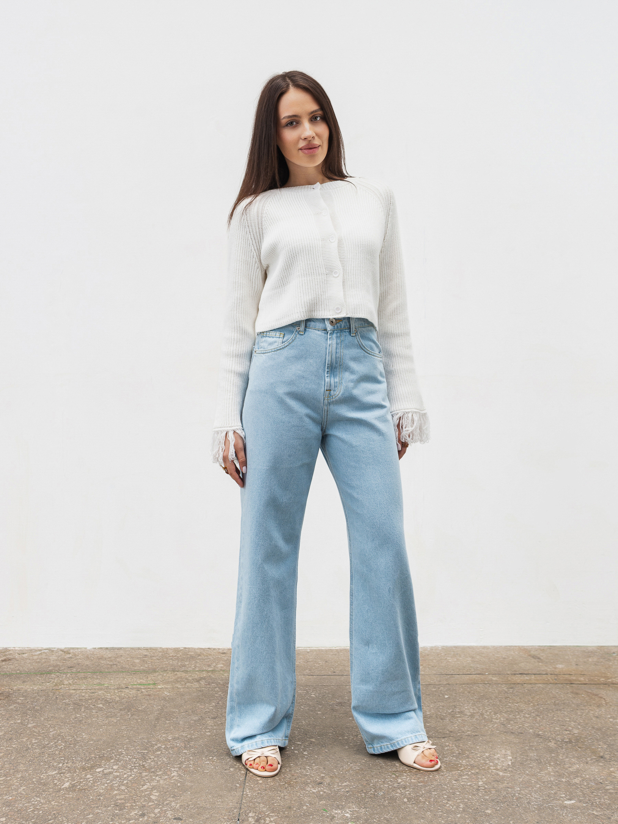 Джинсы Тайт - классическая модель, которая станет основой гардероба. Прямой силуэт предоставляет свободу движений и прекрасно подходит для разных типов фигуры. Благодаря высокой посадке они комфортно сидят на талии, подчеркивая силуэт и добавляя стильного акцента к любому образу. Модель имеет карманы спереди и сзади, что добавляет практичности. На поясе предусмотрены хомутики для ремня, что позволяет экспериментировать с аксессуарами. Выполненные из плотного джинса из 100% хлопка, эти джинсы приятные к телу, хорошо держат форму и со временем только улучшают свою текстуру. Легко сочетаются с футболками, рубашками, свитшотами и пиджаками, создавая как непринужденные кэжуал луки, так и более изысканные комбинации. ХС Длина по внутреннему шву: 83 см. Длина по внешнему шву: 112 см. Полуобхват бедер: 44 см Ширина по низу: 22 см Посадка: 32 см Полуобхват талии: 32 см С Длина по внутреннему шву: 83 см. Длина по внешнему шву: 113 см. Полуобхват бедер: 46 см Ширина по низу: 22 см Посадка: 32 см Полуобхват талии: 34 см М Длина по внутреннему шву: 83 см. Длина по внешнему шву: 115 см. Полуобхват бедер: 49 см Ширина по низу: 23 см Посадка: 33 см Полуобхват талии: 35 см Л Длина по внутреннему шву: 84 см. Длина по внешнему шву: 116 см. Полуобхват бедер: 51 см Ширина по низу: 23 см Посадка: 33 см Полуобхват талии: 36 см ХЛ Длина по внутреннему шву: 85 см. Длина по внешнему шву: 117 см. Полуобхват бедер: 52 см Ширина по низу: 24 см Посадка: 35 см Полуобхват талии: 38 см