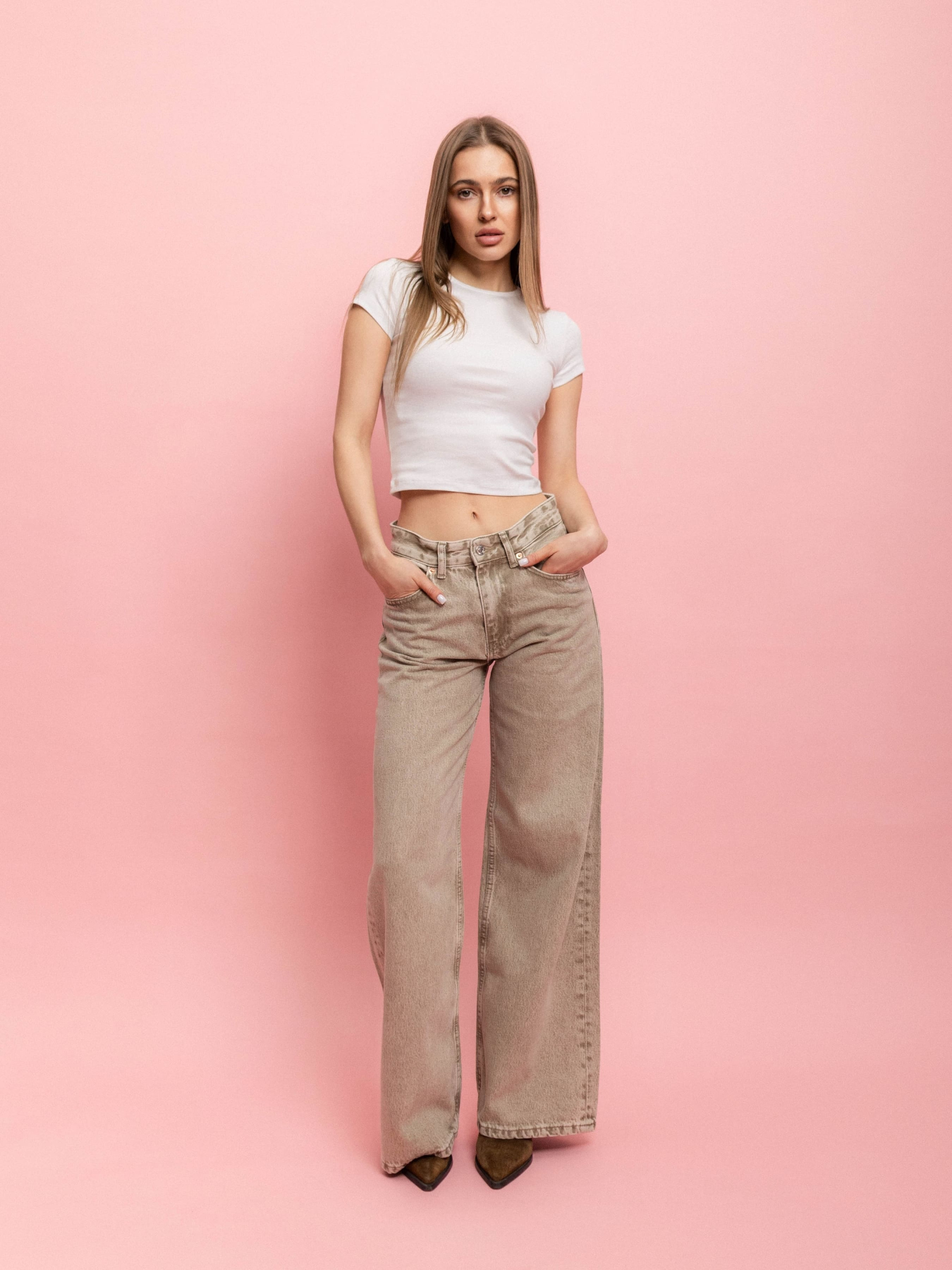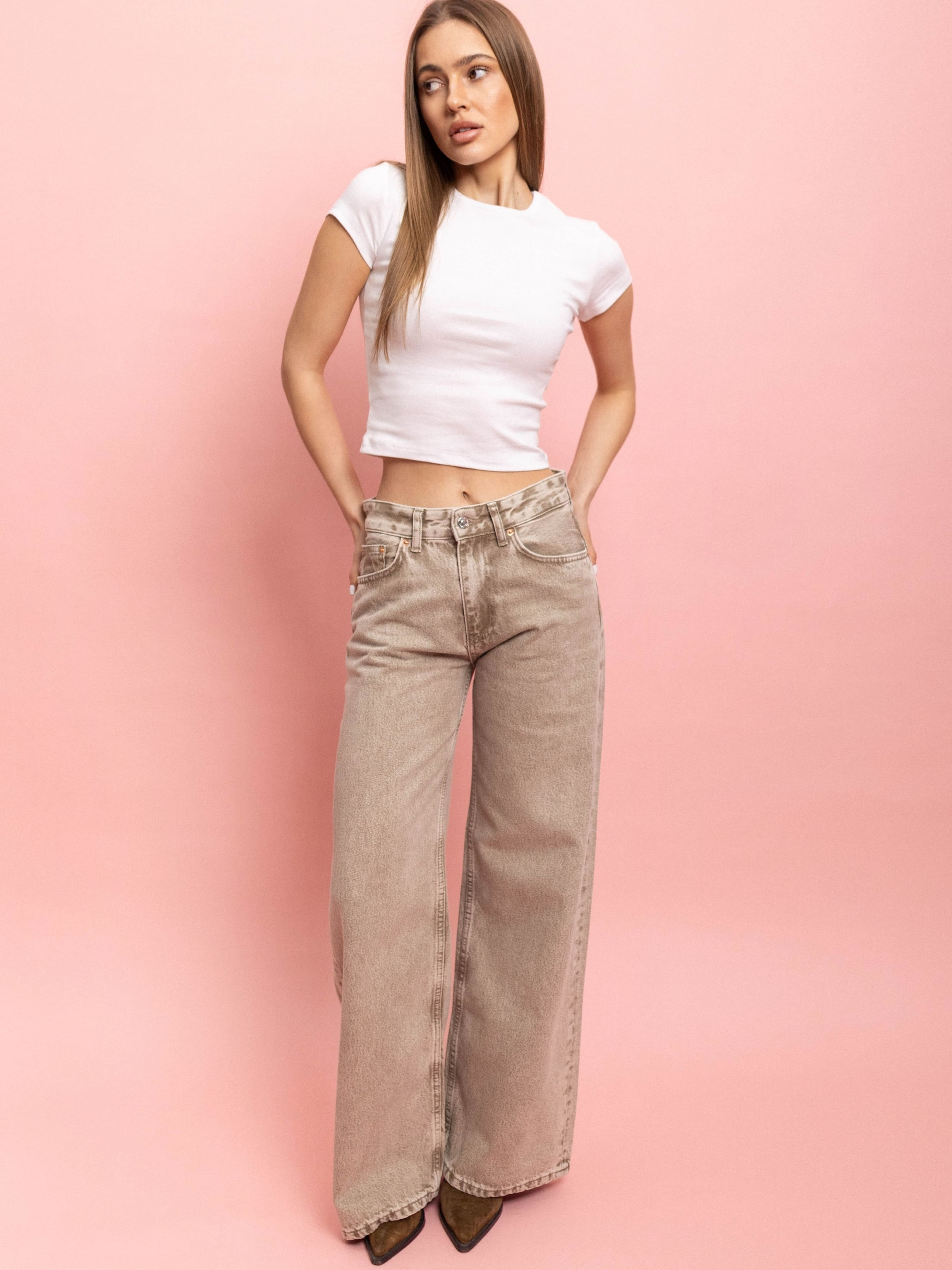 Джинси Wide Leg з пониженою талією в бежевому кольорі WL 544 — це справжній базовий елемент гардеробу, який виглядає одночасно елегантно та сучасно. Бежевий відтінок робить їх нейтральними і універсальними, підходять практично до всього, від casual образів до більш стильних луків. Параметри моделі: 88-66-99 / 168 см Розмір на моделі: 38 Матеріал та рекомендації по догляду за джинсами: 100% коттон 1. Не прати занадто часто. Через часте прання джинси швидко втрачають свій колір та форму. Оберіть краще ручний режим. Та якщо все ж таки зважились відправити джинси в пральну машинку, використовуйте безфосфатний пральний порошок. Штани слід вивернути навиворіт, застебнути всі блискавки та ґудзики. 2. Не прати в гарячій воді Гаряча вода призводить до пошкодження тканини. Температура повинна бути від 30 до 40 градусів. Або ж кімнатної температури. Викручувати джинси не варто. Краще повісити, щоб стекла вода. 3. Скажіть "так" прасуванню. Заміри виробу: 34: Півобхват талії - 32 см; Півобхват стегон - 48 см; Довжина -105 см; Довжина внутрішнього шва - 77 см; Ширина штанки знизу - 29 см. та зверху - 29 см; Висота посадки - 26 см. 36: Півобхват талії - 34 см; Півобхват стегон - 50 см; Довжина - 106см; Довжина внутрішнього шва - 77 см Ширина штанки знизу - 29 см. та зверху - 30 см; Висота посадки - 26 см. 38: Півобхват талії - 36 см; Півобхват стегон - 52 см; Довжина - 118 см; Довжина внутрішнього шва - 86 см Ширина штанки знизу - 29 см. та зверху - 32 см; Висота посадки - 29 см. 40: Півобхват талії - 38 см; Півобхват стегон - 55 см; Довжина - 108 см; Довжина внутрішнього шва -79 см; Ширина штанки знизу - 30 см. та зверху - 32 см; Висота посадки - 27 см.