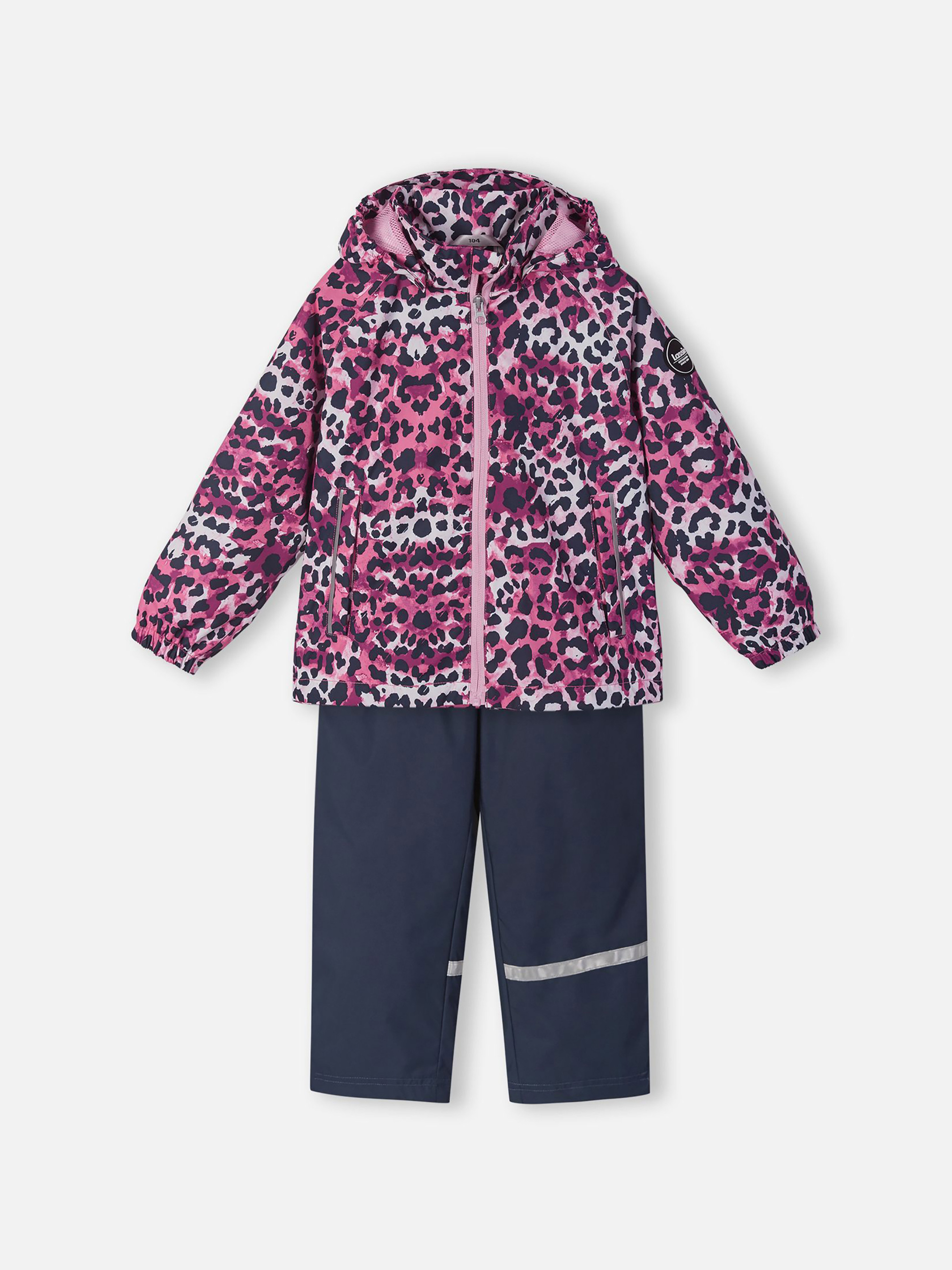 Детский демисезонный непромокаемый комплект. Этот практичный комплект изготовлен из прочного водоотталкивающего, ветронепроницаемого и дышащего материала. Гладкая, дышащая подкладка из полиэстера облегчает одевание, а регулируемый подол позволяет подобрать нужную ширину. Съемный капюшон защищает от пронизывающего ветра и безопасен во время игр на свежем воздухе. Куртка снабжена удлиненной спинкой, двумя прорезными карманами, эластичными манжетами, светоотражателями и украшена модным сплошным рисунком. В брюках предусмотрена эластичная регулируемая талия и регулируемые концы брючин для того, чтобы модель хорошо сидела по фигуре, а также один прорезной карман и светоотражающие элементы. Этот практичный комплект позволяет детям быть активными при любой погоде!