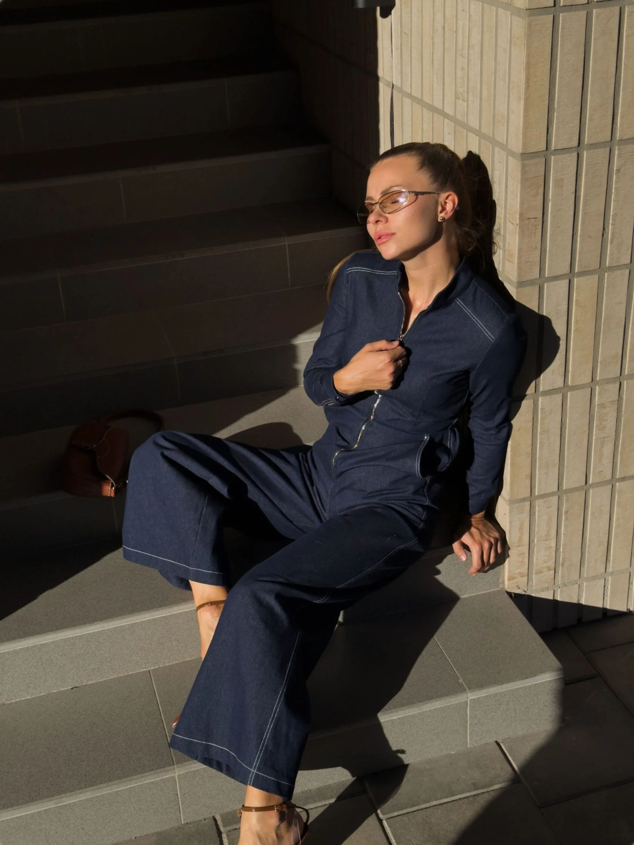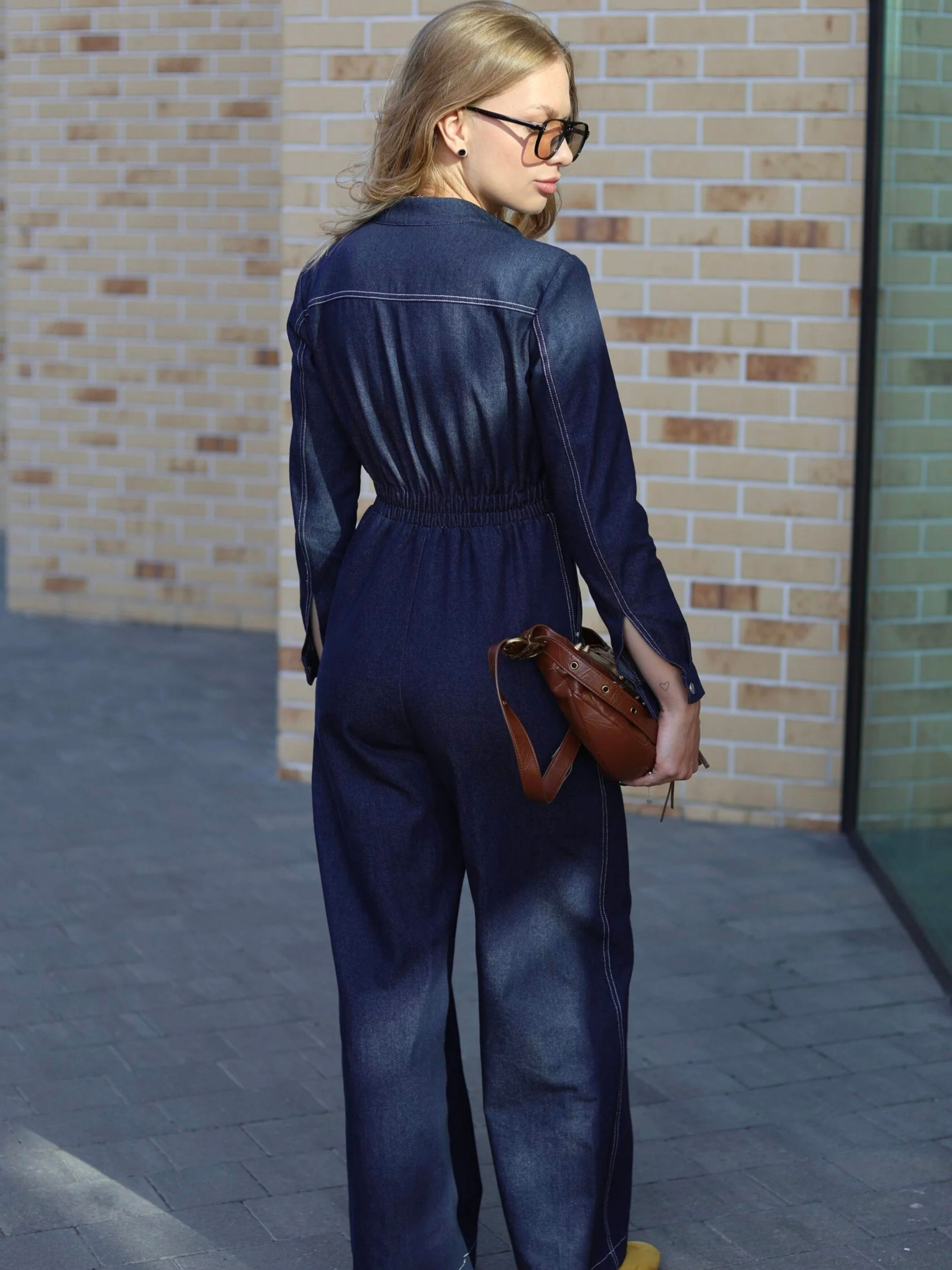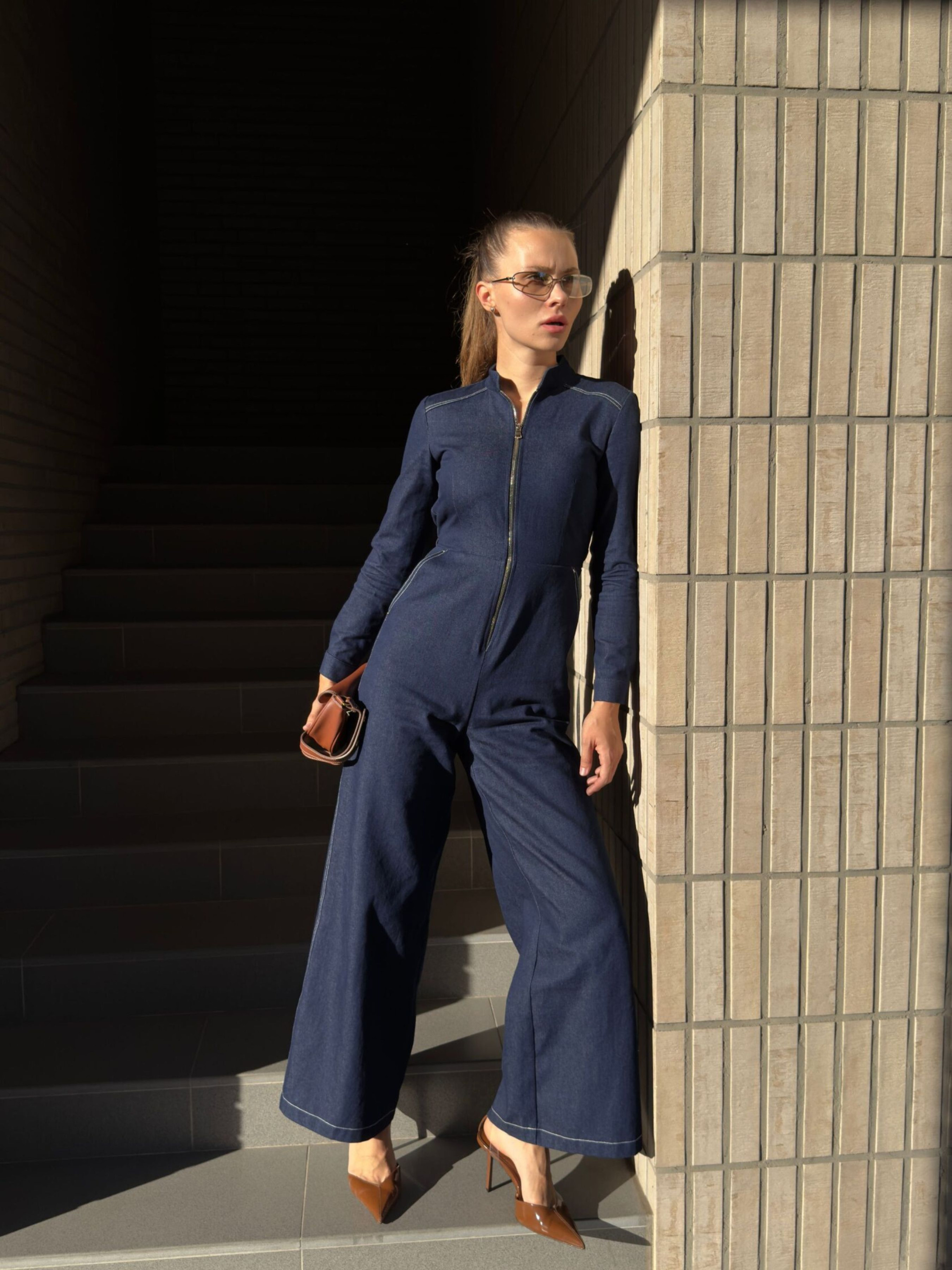 Джинсовый комбинезон – выбор ценящих минимализм, комфорт и трендовый вид в одном образе. Глубокий темно-синий деним визуально извлекает силуэт. Приталенный крой и замок-молния спереди придают акцент на фигуру. Широкие брюки-клеш создают баланс и стильный «вау-эффект». Лаконические контрастные строчки подчеркивают деним и делают образ более дорогим. Этот комбинезон – идеальная база для модных лугов: днем с кроссовками и шопером, вечером – с каблуками и маленькой сумочкой. Для тех, кто любит свободу движений и в то же время хочет выглядеть эффектно и современно. Состав ткани: 100% хлопок Размерная сетка: XS Грудь: 84–88 см Талия: 59–63 см Бедра: 85–91 см S Грудь: 88-90 см Талия: 64–67 см Бедра: 92–94 см M Грудь: 90-95 см Талия: 67–75 см Бедра: 95–98 см L Грудь: 95-99 см Талия: 76–83 см Бедра: 99–102 см XL Грудь: 105–110 см Талия: 85–92 см Бедра: 105–110 см XXL Грудь: 112–115 см Талия: 93–97 см Бедра: 111–115 см