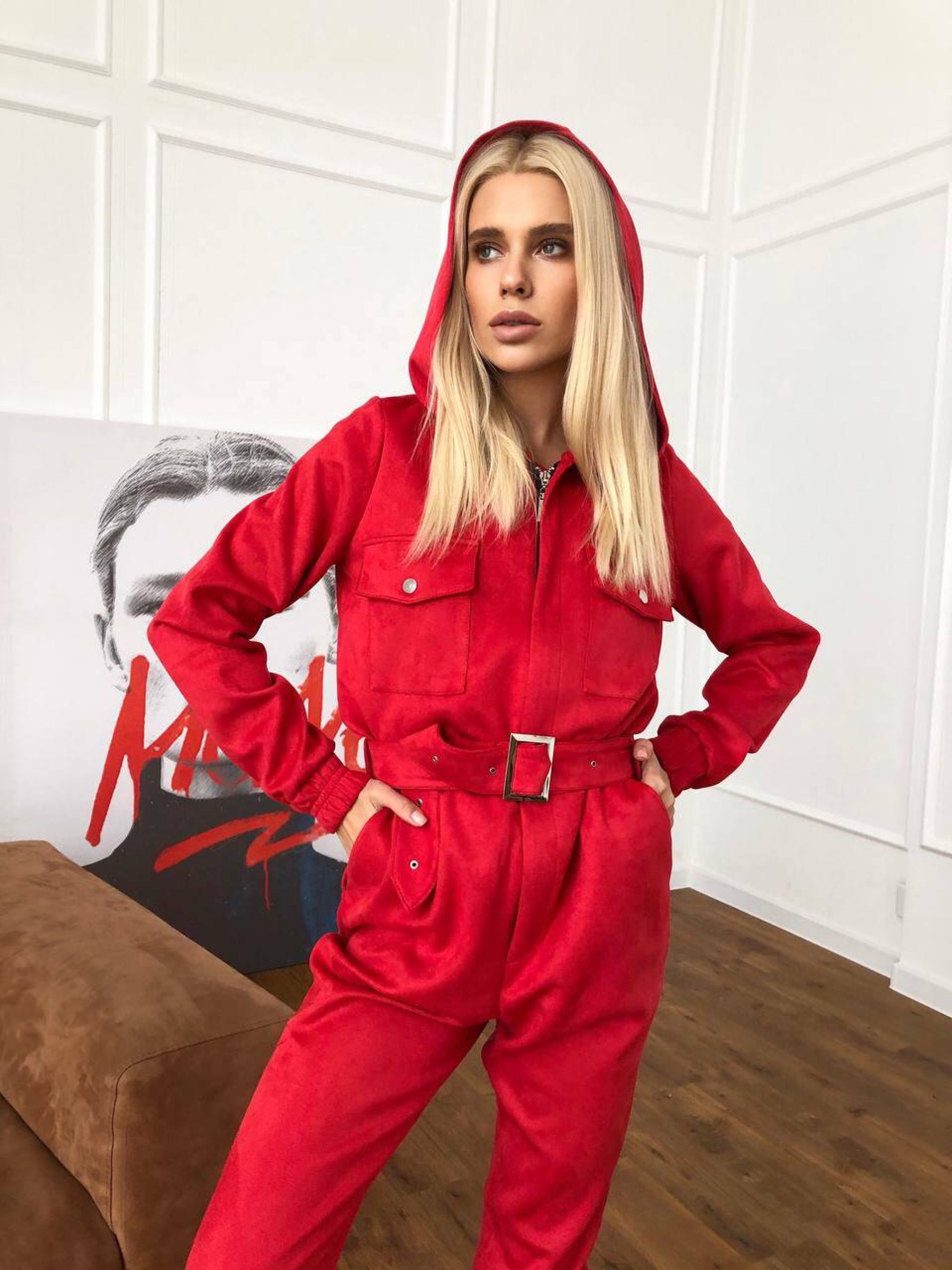 Характеристики: Застібка: металева блискавка спереду Додатково: ремінь із металевою бляшкою Кишені: 2 нагрудні та 2 на штанинах Особливість крою: розстібається на попереку (бокові кнопки) Розмір: S–L Матеріал: щільна замша на основі дайвінгу Кольори: бежевий, червоний, пудровий, чорний, хакі Догляд: машинне або ручне прання при температурі не вище 30 °C не використовувати відбілювач прасування при середній температурі (до 110 °C) через тканину хімічна чистка не рекомендована сушити у розправленому вигляді, подалі від прямих сонячних променів Особливості та опис: Модель виконана з м’якої щільної замші на еластичному дайвінгу — тканина приємна до тіла, добре тягнеться, не сідає після прання. Завдяки зручному фасону комбінезон красиво підкреслює фігуру, забезпечує свободу рухів і комфорт під час носіння. Металева блискавка додає сучасності, а ремінь із бляшкою акцентує талію. Кишені на грудях і штанинах роблять модель практичною для щоденного використання. Завдяки універсальним кольорам комбінезон легко поєднується з кросівками, черевиками чи навіть підборами. Комбінезон стане чудовим вибором для активних жінок, які цінують зручність і стиль. Ідеально підходить для прогулянок, подорожей чи міських образів.
