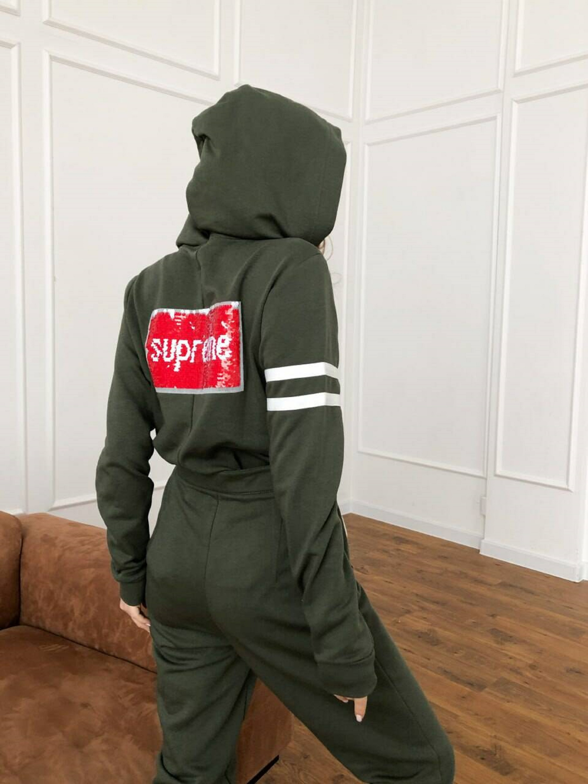 Характеристики: Розмір: єдиний (підходить на 42–46) Тканина: тринитка з начісом Кольори: пляшковий, мілітарі, білий Сезон: осінь/зима Догляд: машинне прання у режимі “делікатне” при температурі до 30 °C прасування з виворотного боку при середній температурі не використовувати відбілювачі не сушити в пральній машині Особливості та характеристики: виготовлений із м’якої та щільної тринитки з начісом, яка добре утримує тепло та приємна до тіла; капюшон із куліскою забезпечує додатковий захист від вітру й холоду; застібка-блискавка по центру робить модель практичною та зручною у щоденному використанні; наявність кишень додає функціональності; низ штанин і рукави зібрані на еластичні манжети, що допомагають зберігати тепло та створюють акуратний силует; крій не обмежує рухів, забезпечує комфорт під час активного відпочинку чи прогулянок; тканина не кошлатиться та добре тримає форму навіть після багаторазового прання. Жіночий комбінезон SUPER — це стильне рішення для прохолодної погоди. Поєднує зручність спортивного стилю та м’якість теплого трикотажу, створюючи ідеальний варіант для дому, подорожей чи активного відпочинку на свіжому повітрі.