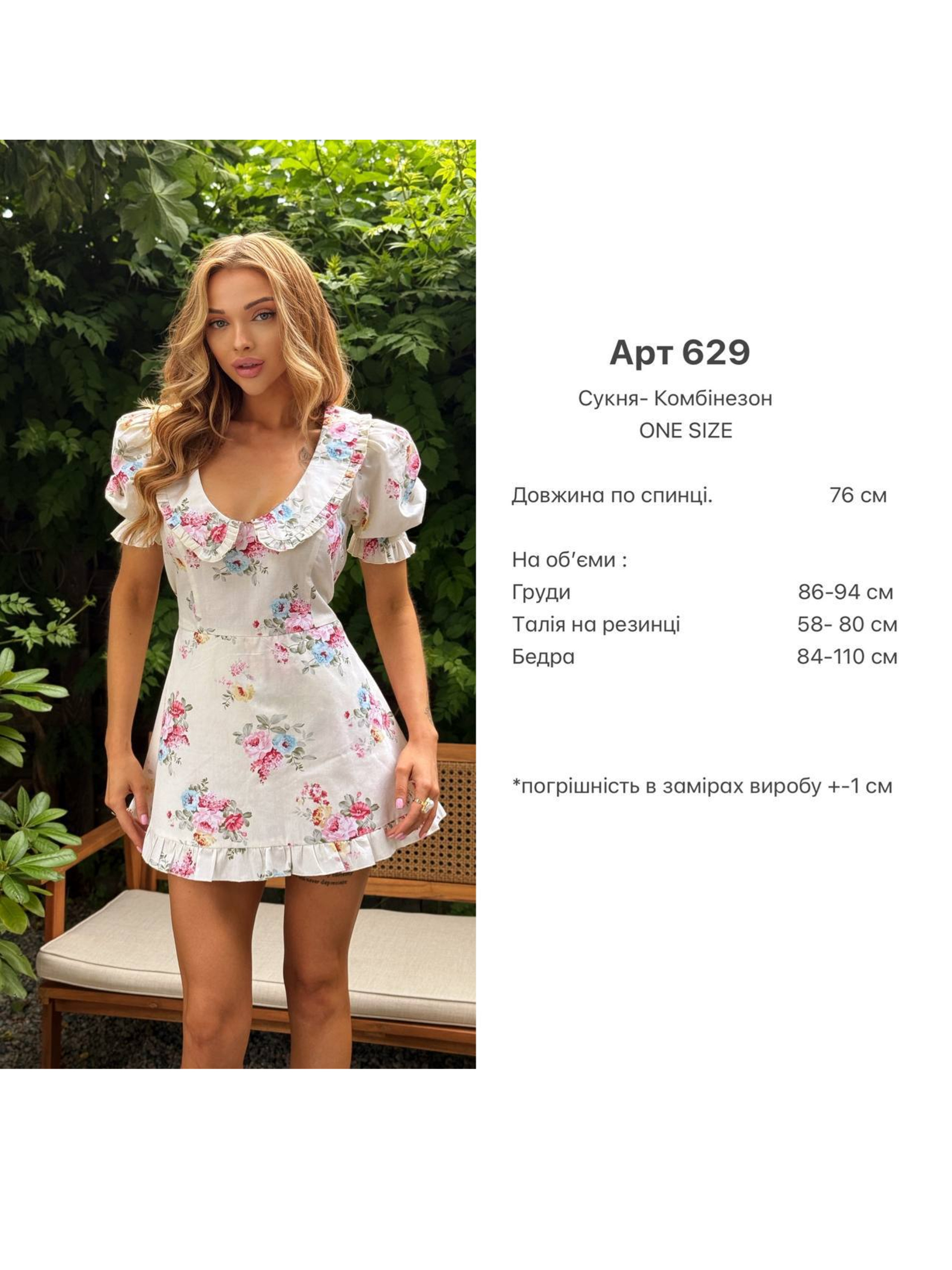 Характеристики: Тканина: 100% бавовна Розмір: one size (M) Принт: аквамарин, жовта троянда, рожева півонія, троянда на молочному фоні Догляд: ручне прання або машинне прання на делікатному режимі при температурі до 30 °C прасування з відпарюванням при середній температурі до 150 °C хімічна чистка заборонена відбілювання заборонене Літній комбінезон для жінок Особливості та характеристики: легка та натуральна бавовняна тканина забезпечує комфорт та дихаючі властивості у спекотні дні; яскраві квіткові принти створюють свіжий літній настрій і гармонійно поєднуються з будь-яким взуттям чи аксесуарами; вшиті шорти під низом дозволяють активно рухатися без обмежень, зберігаючи зручність і свободу; вільний крій комбінезону додає легкості й комфортної посадки, підкреслює фігуру без стиснення; зручні бретелі регулюють посадку по плечах, а легкі декоративні елементи роблять образ жіночним і стильним. Літній комбінезон LORA PREMIUM — ідеальний вибір для прогулянок, відпочинку та активного дозвілля, поєднуючи стиль, практичність і комфорт у кожному кроці.