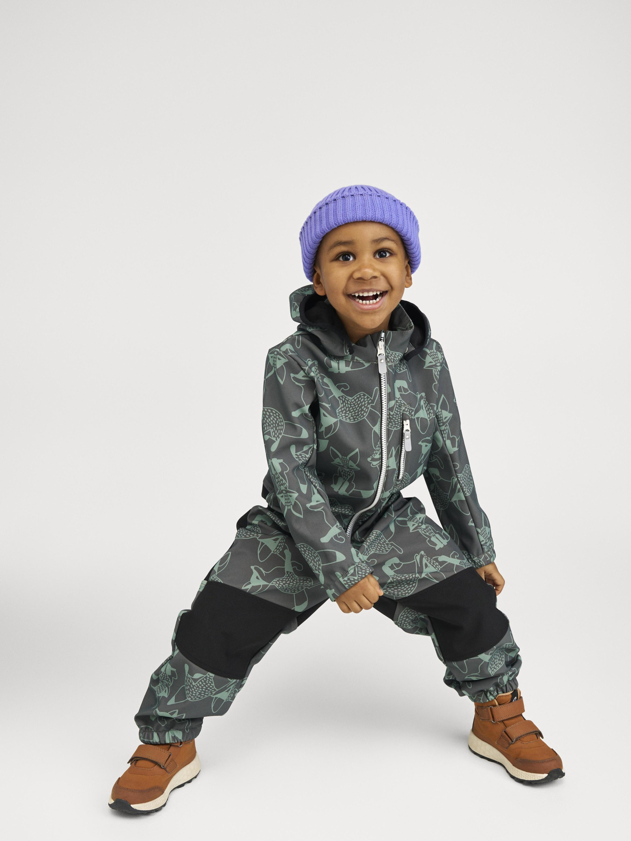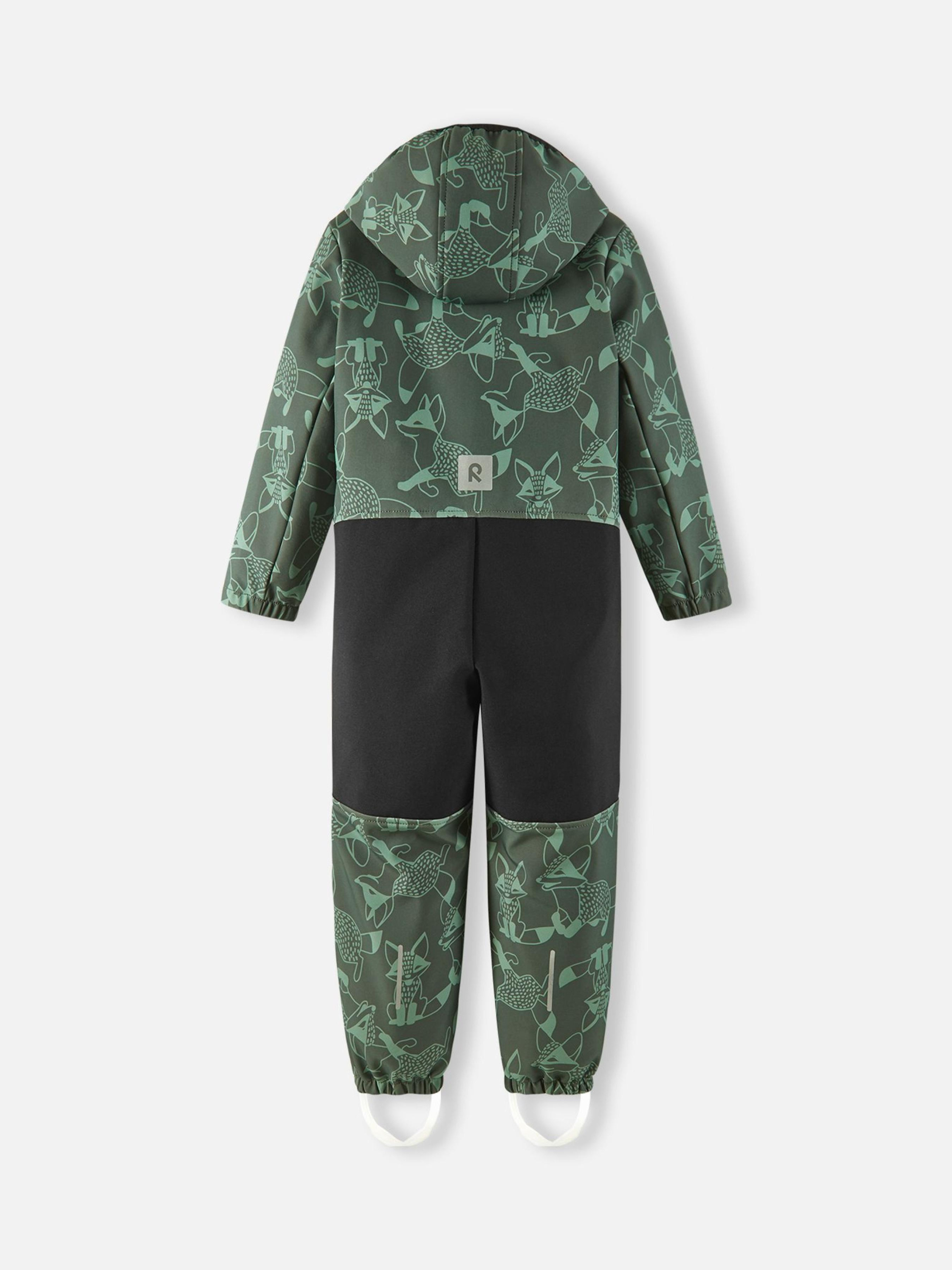 Состав: Softshell BS GRS: лицевая часть: 92% переработанный полиэстер, 8% эластан; оборотная сторона: 100% переработанный полиэстер, полиуретановая TPU мембрана; вставки: Reimatec Oxford BS GRS: 55% переработанный полиэстер, 45% полиэстер, полиуретановое ламинирование Водонепроницаемость основного материала: >10 000 Воздухопроводимость основного материала: >5 000 Износостойкость основного материала (по тесту Мартиндейла): 25000 Материал:Softshell GRS Ветронепроницаемый материал Водо- и грязеотталкивающий материал Не содержит фторуглероды Светоотражающие детали Прочные усиливающие вставки Переработанный материал Прочные усиленные вставки|Из ветронепроницаемого материала, но изделие «дышит»|Флис на оборотной стороне|Содержит переработанные волокна с сертификатом качества|Водо- и грязеотталкивающая пропитка без содержания фторуглеродов Teflon EcoEliteTM|Безопасный, съемный капюшон|Эластичные манжеты на руках и ногах|Съемные эластичные штрипки|Карман на молнии|Принт по всей поверхности|Светоотражающие детали Уход: Стирать по отдельности, вывернув наизнанку. Застегнуть молнии. Стирать моющим средством, не содержащим отбеливающие вещества. Полоскать без специального средства. Во избежание изменения цвета изделие необходимо вынуть из стиральной машинки незамедлительно после окончания программы стирки. Детям нравится защитный материал Reima Softshell — он очень комфортный и эластичный. Детский комбинезон из материала Softshell надежно защищает от ветра, а также обладает непревзойденными дышащими свойствами. Эластичный материал имеет мягкую флисовую изнаночную сторону, очень приятную на ощупь. Водо- и грязеотталкивающая поверхность — и все это, естественно, без фторуглеродов. Безопасный съемный капюшон и карманы на молнии.