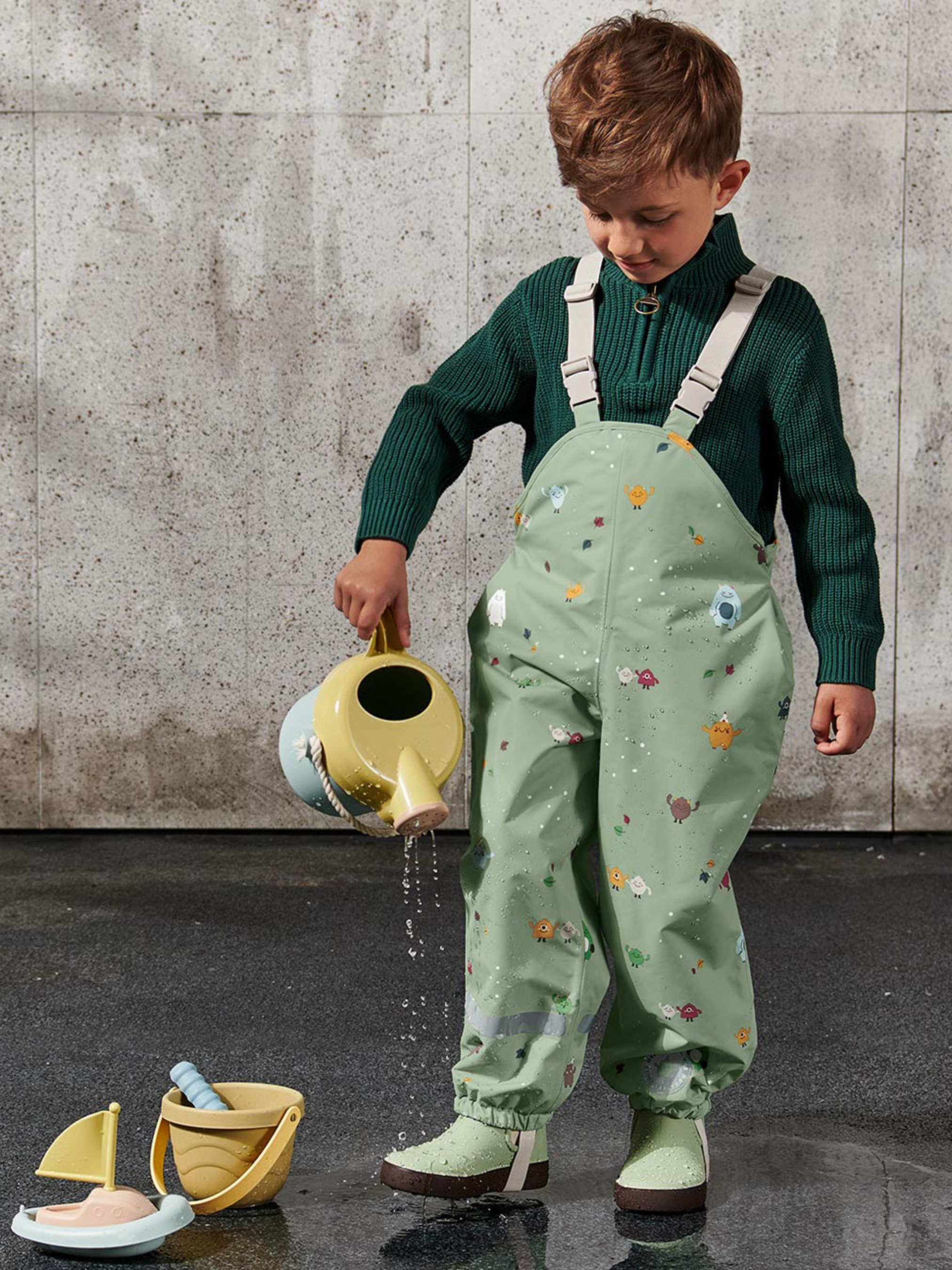 Функциональные термоштаны, предназначенные для защиты ребенка во время активных прогулок в холодную и влажную погоду. Они водо- и ветронепроницаемые, обладают дышащими свойствами и хорошо удерживают тепло благодаря микрофлисовой подложке. Благодаря экологической пропитке evoPel и герметичным швам обеспечивается надежный барьер от влаги. Брюки оснащены эластичными Y-образными подтяжками с возможностью регулировки, а также фиксаторами на ногах – для идеальной посадки и удобной носки. Светоотражающие элементы повышают безопасность в темное время суток. Есть именный бейдж для подписи вещей. Изготовлены из переработанного полиэстера – поддерживают рациональное использование ресурсов. Цвет: зеленый с разноцветным принтом монстров Материал: 100% полиэстер (переработанный) Замеры: Размер 74/80 (примерно 6–12 месяцев): ПОГ: 32 см Полуобхват бедер: 35 см Длина: 66 см Шаговая длина: 27 см Размер 86/92 (примерно 1–2 года): ПОГ: 35 см Полуобхват бедер: 39 см Длина: 78 см Шаговая длина: 32 см Размер 98/104 (примерно 2–4 года): ПОГ: 37 см Полуобхват бедер: 37 см Длина: 90 см Шаговая длина: 40 см Доступные размеры/возраст: 74/80 (6–12 месяцев) 86/92 (1–2 года) 98/104 (2-4 года) 110/116 (4–6 лет) 122/128 (6–8 лет) Одежда бренда Tchibo обычно не имеет бумажных этикеток. В большинстве случаев внутренние бирки с составом ткани, названием бренда или размером срезаны частично или полностью.