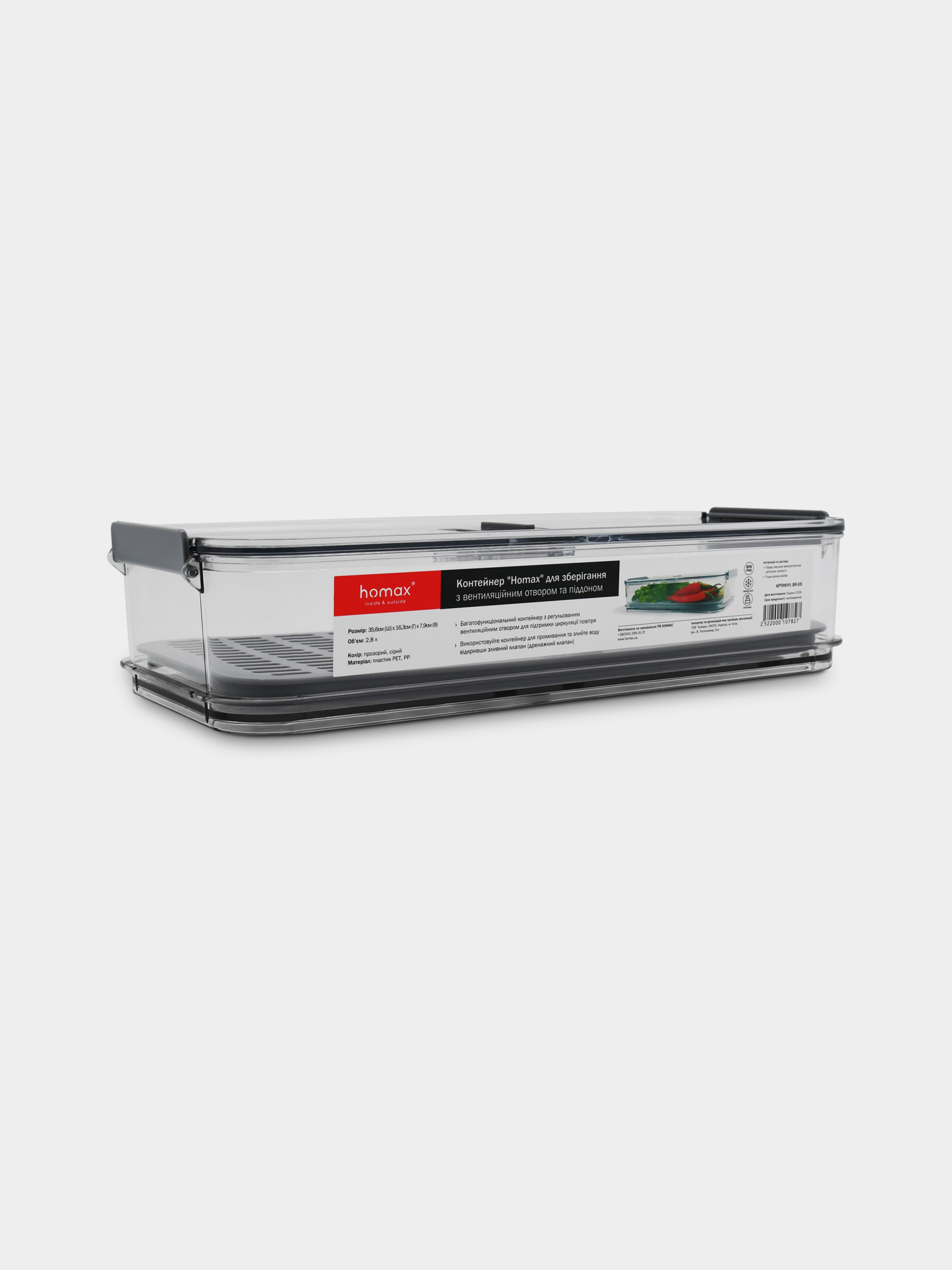 HomaxКонтейнер для хранения с вентиляционным отверстием и поддоном, 2,8 л.