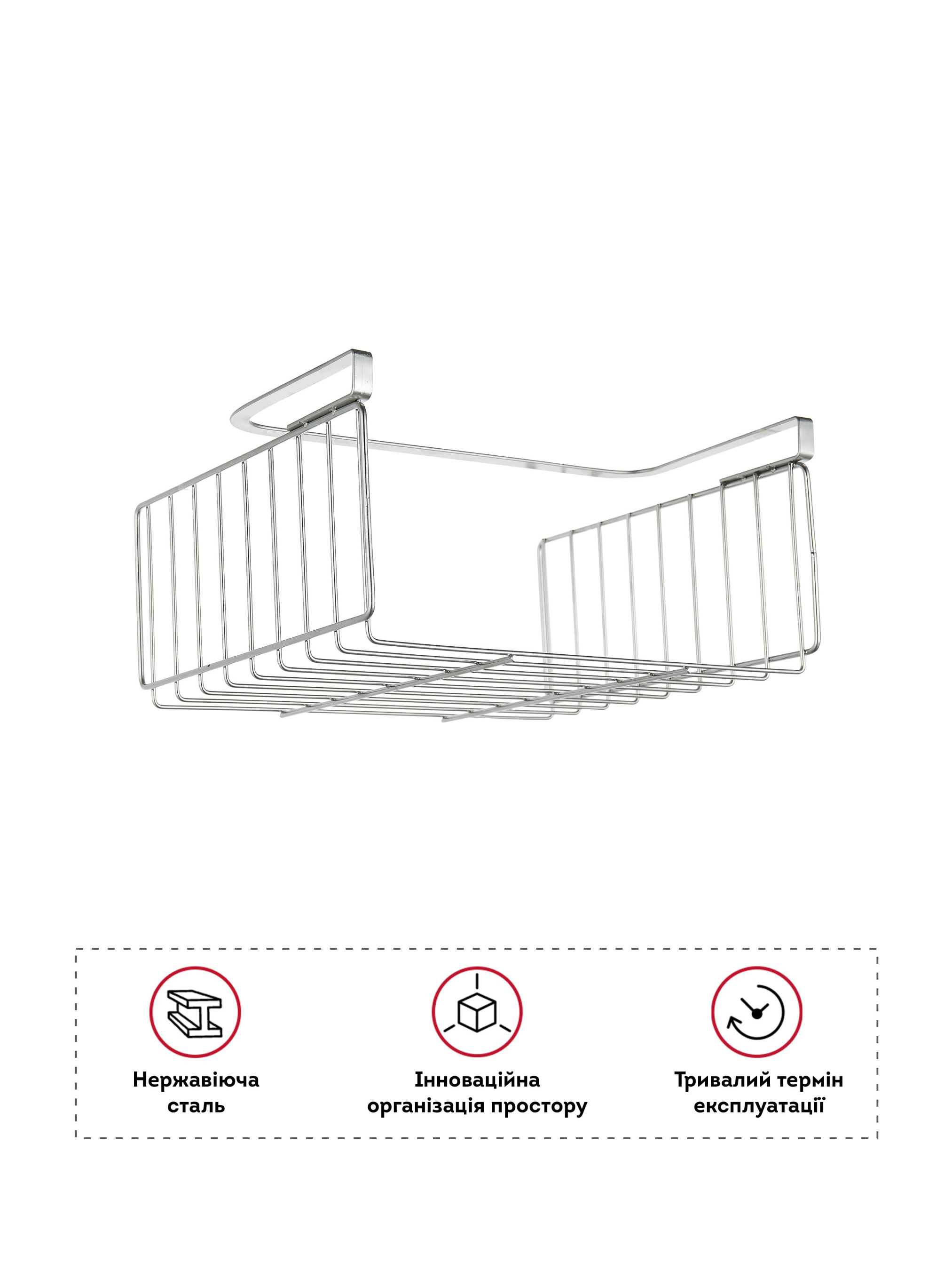 Подвесная корзина YJ-G-3358 имеет удобную конструкцию, изготовленную из высококачественной нержавеющей стали, а универсальный дизайн впишется в любой интерьер. Подходит для любых полок, кухонных шкафов.Помогает организовать пространство на кухне, делая его более функциональным и удобным. Установка: внутри / снаружи Многофункциональность: Подвесная корзина для кухни Homax позволяет сохранять все максимально комфортно и тем самым рационально использовать пространство на вашей кухне.Возможность хранения разных видов предметов делает полку универсальной. Аксессуары для кухни ТМ Homax -это стильные и одновременно практичные решения для вашего дома.