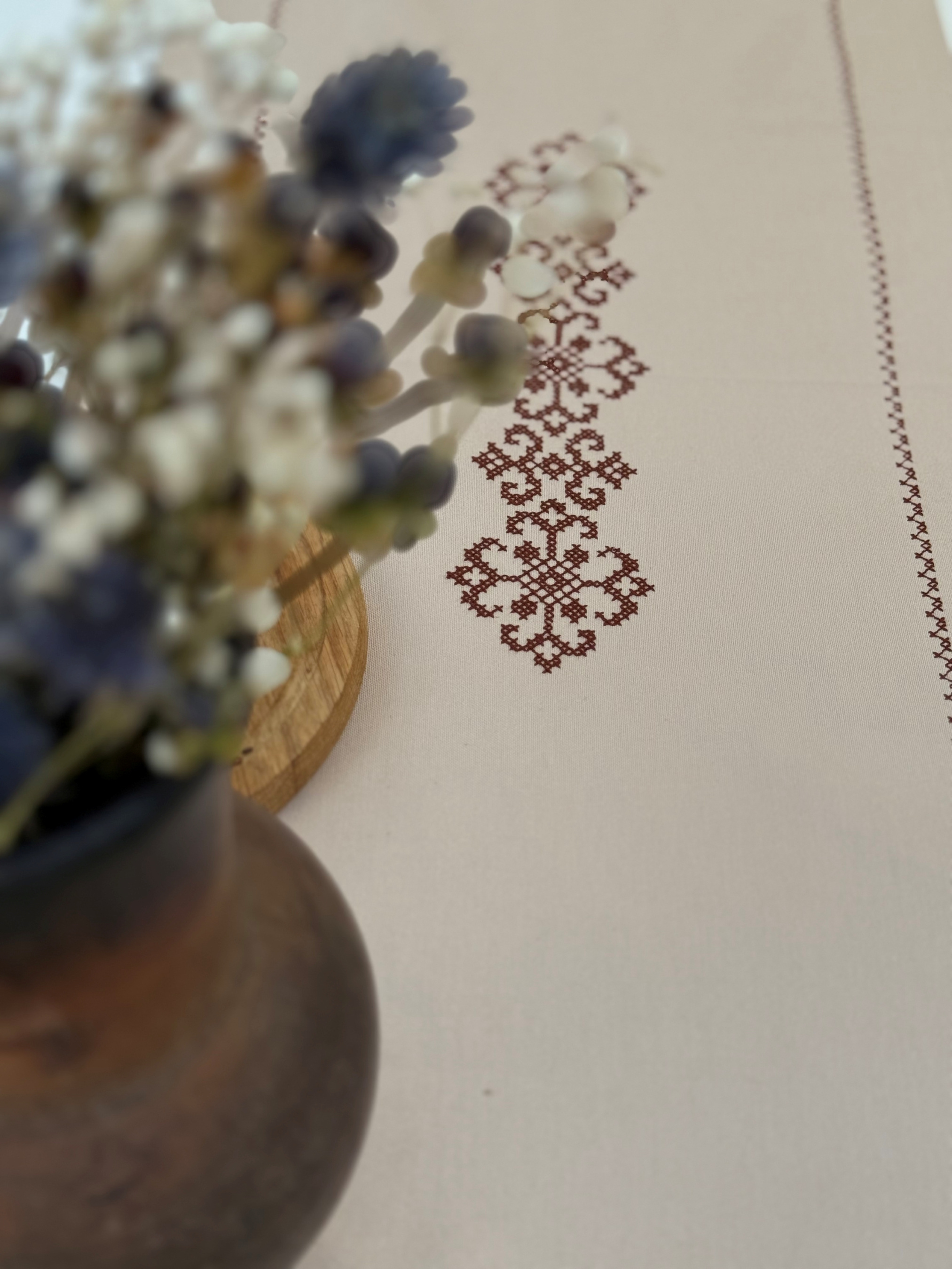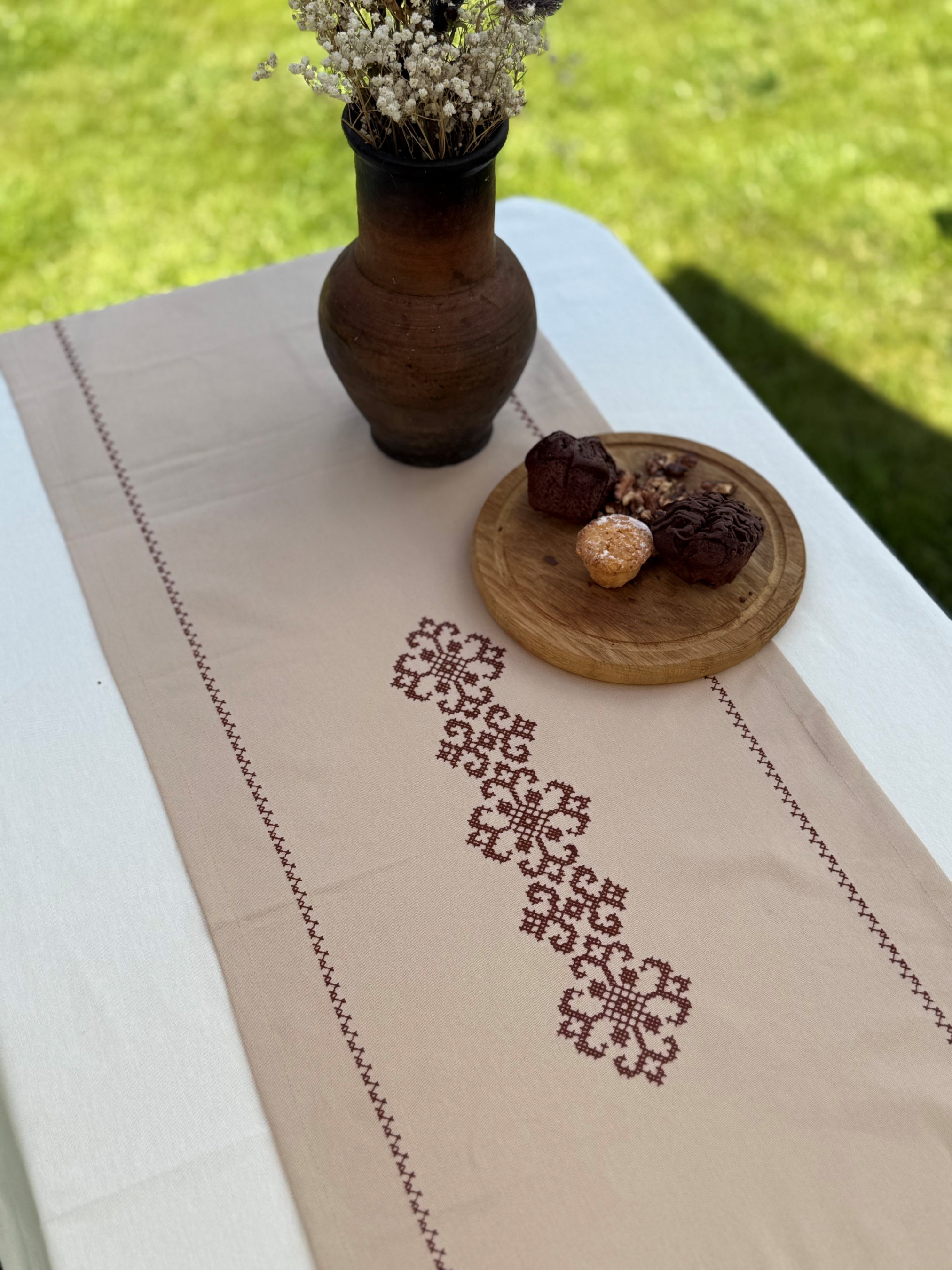 EcottonРаннер-дорожка для обеденного стола с вышивкой Brown on Beige водоотталкивающая в подарочной упаковке