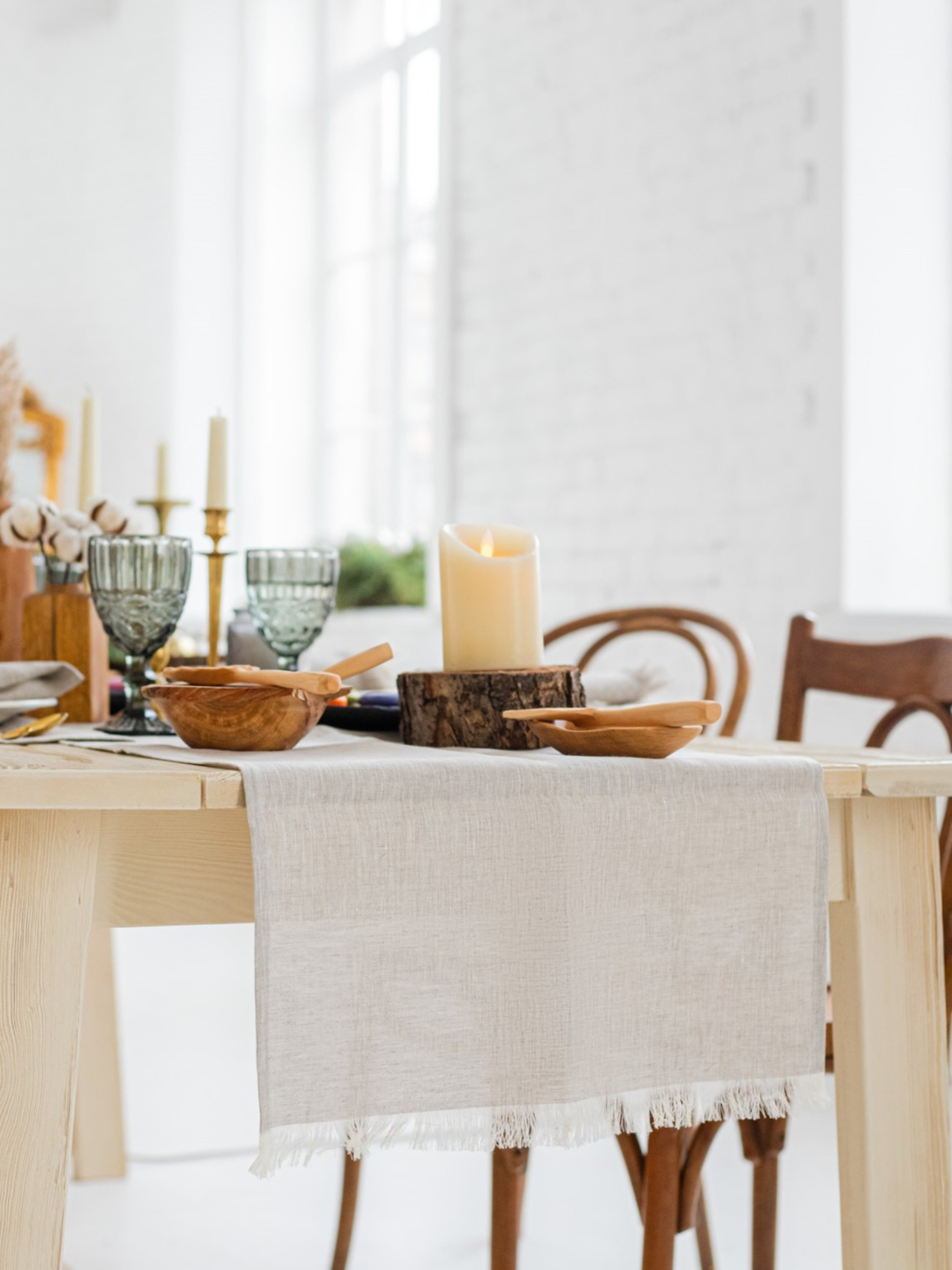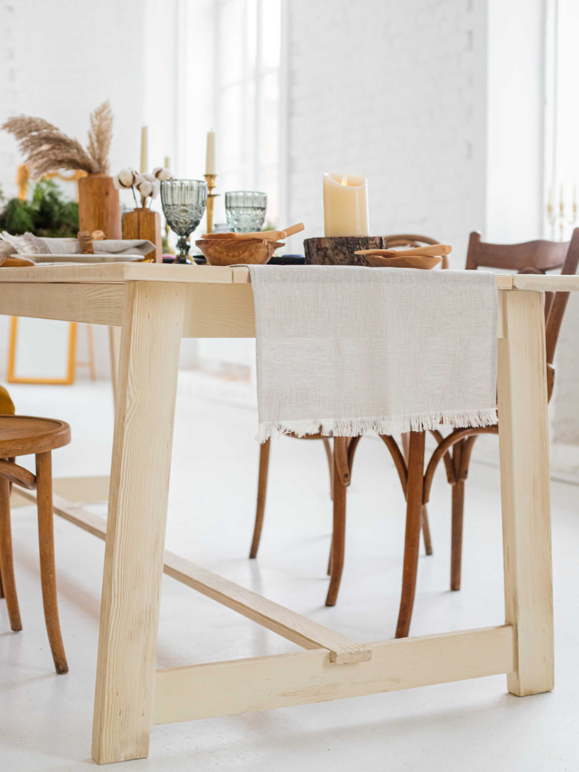 GNIZDOДоріжка лляна на стіл (ранер) з бахромою в кольорі "Еко"