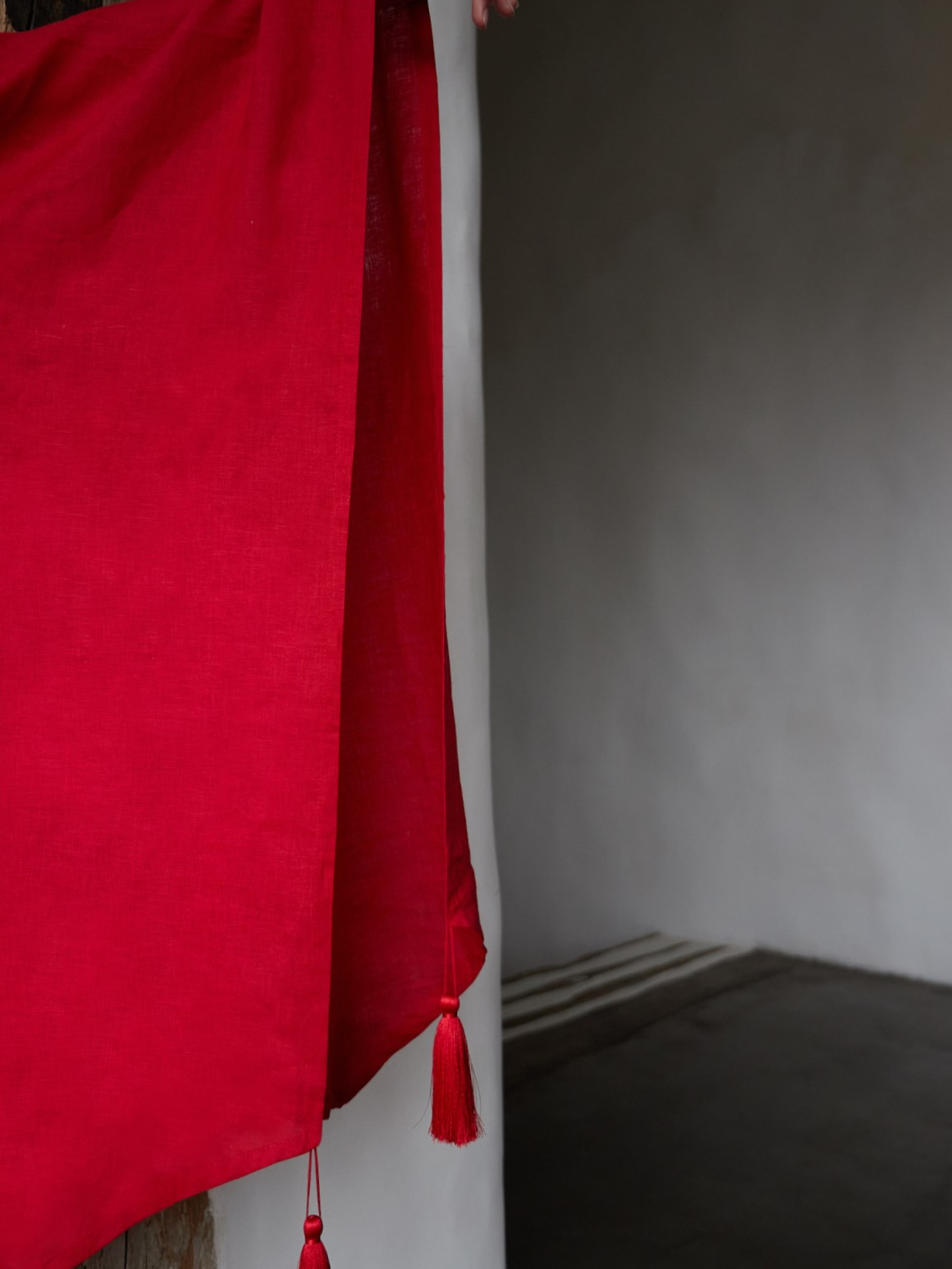 Доріжка на стіл (ранер) з льону з декоративними китицями в червоному кольорі GNIZDO модель LTRDT-008-S