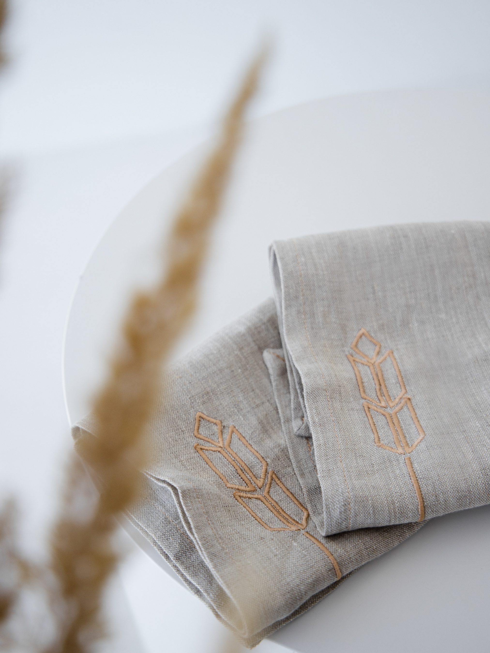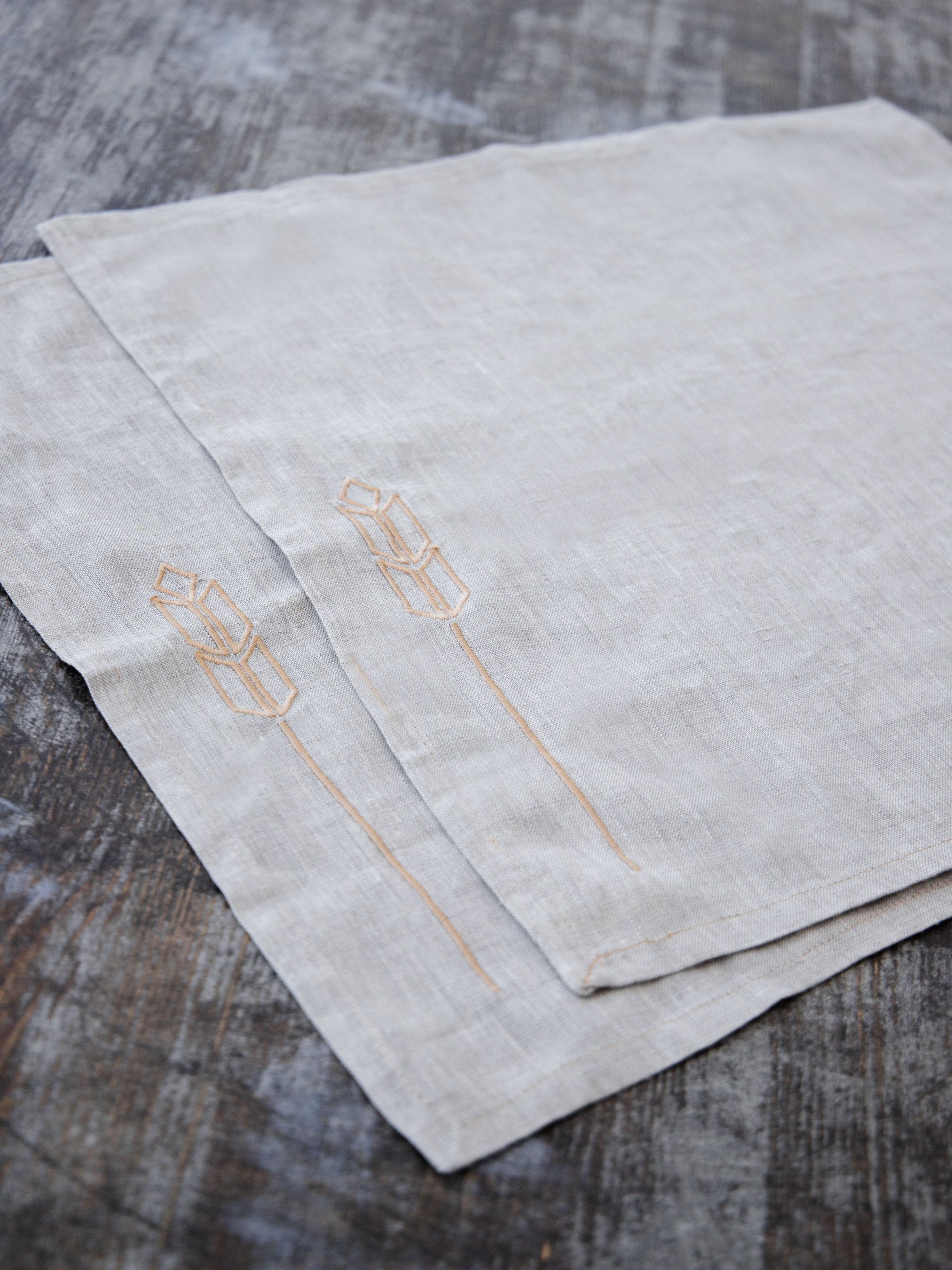 GNIZDOНабір з 2-х столових серветок з льону з машинною вишивкою "Колоски"