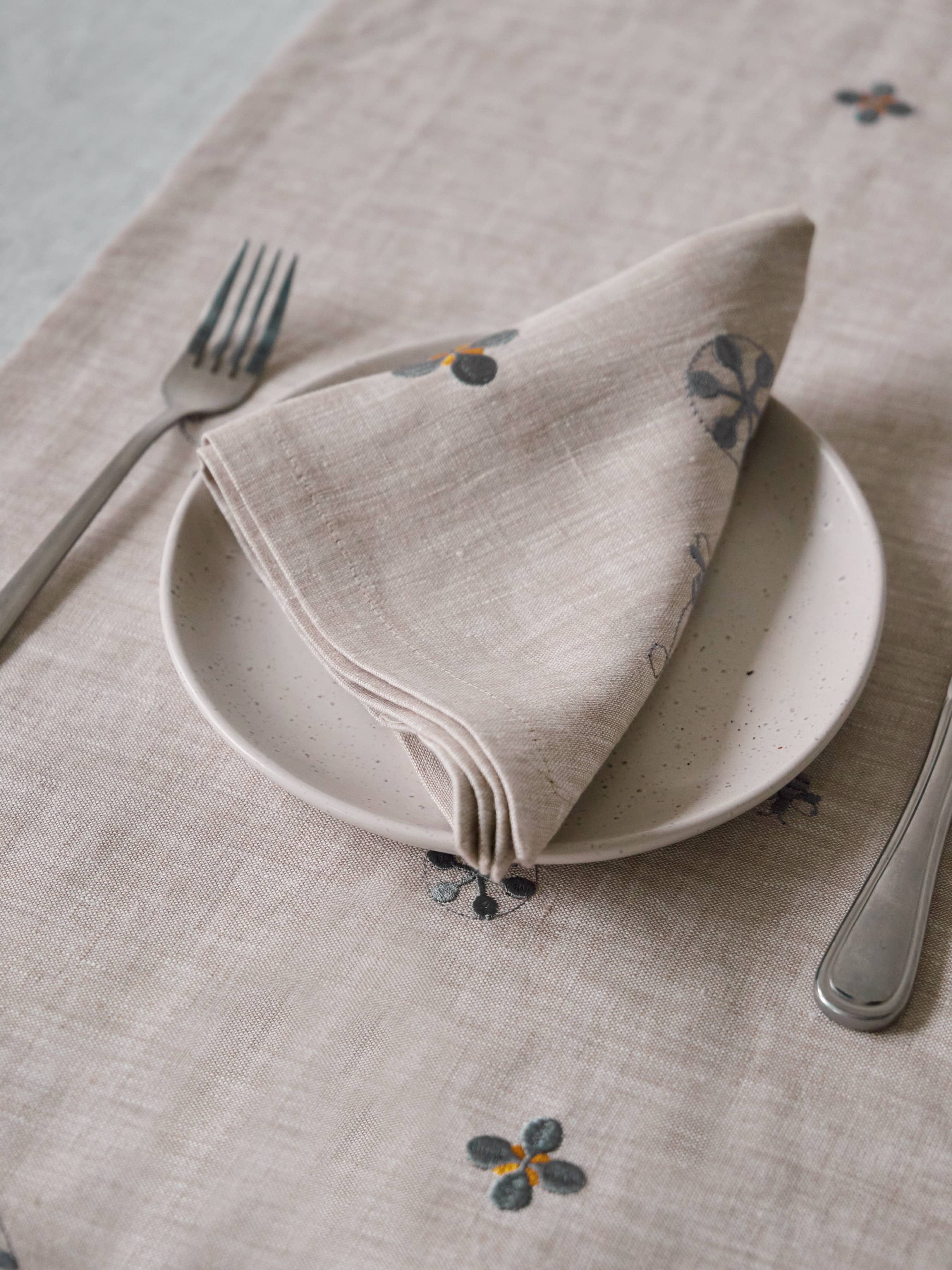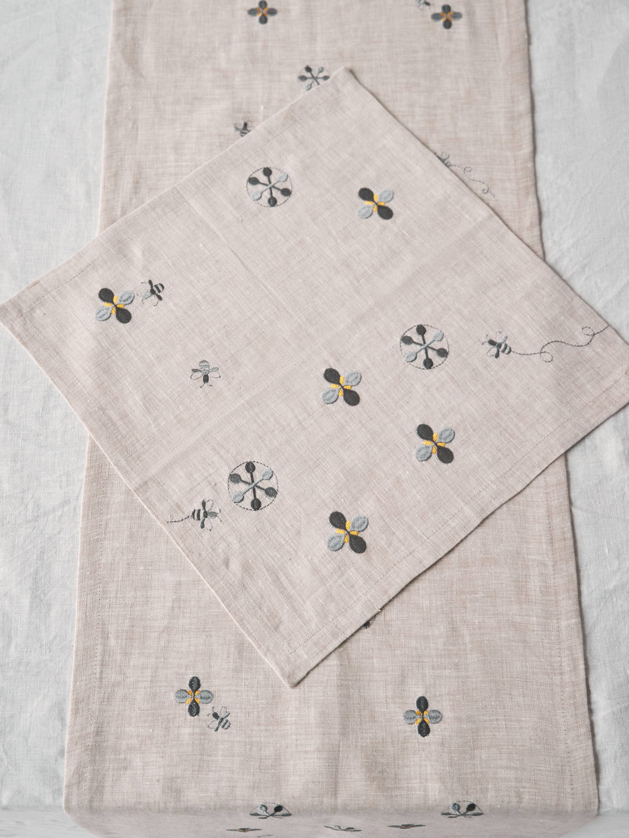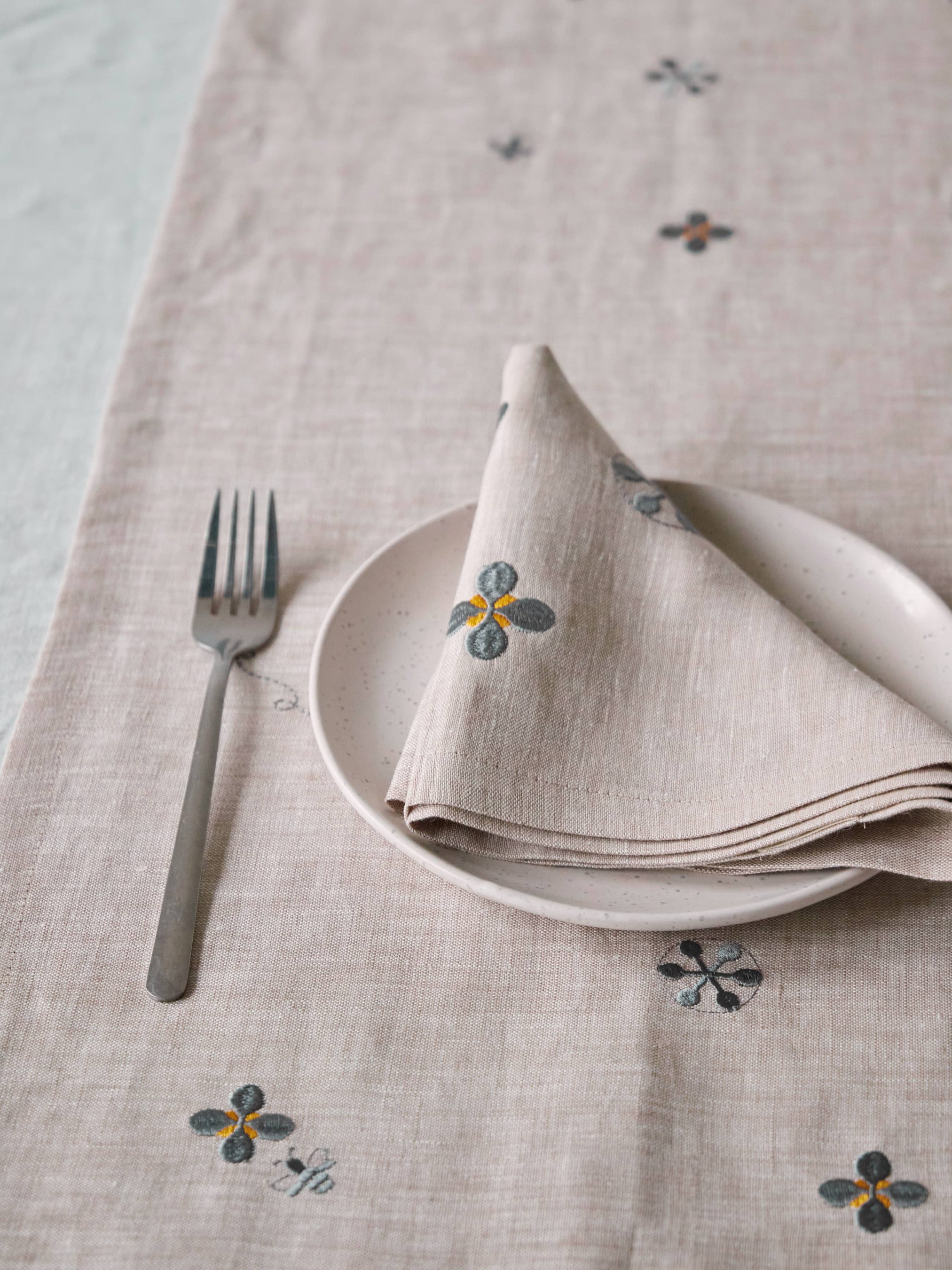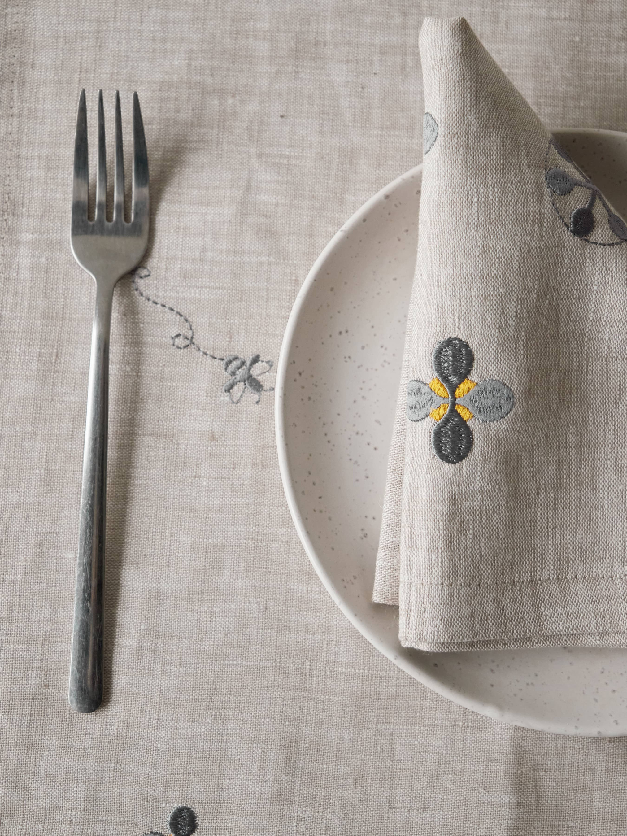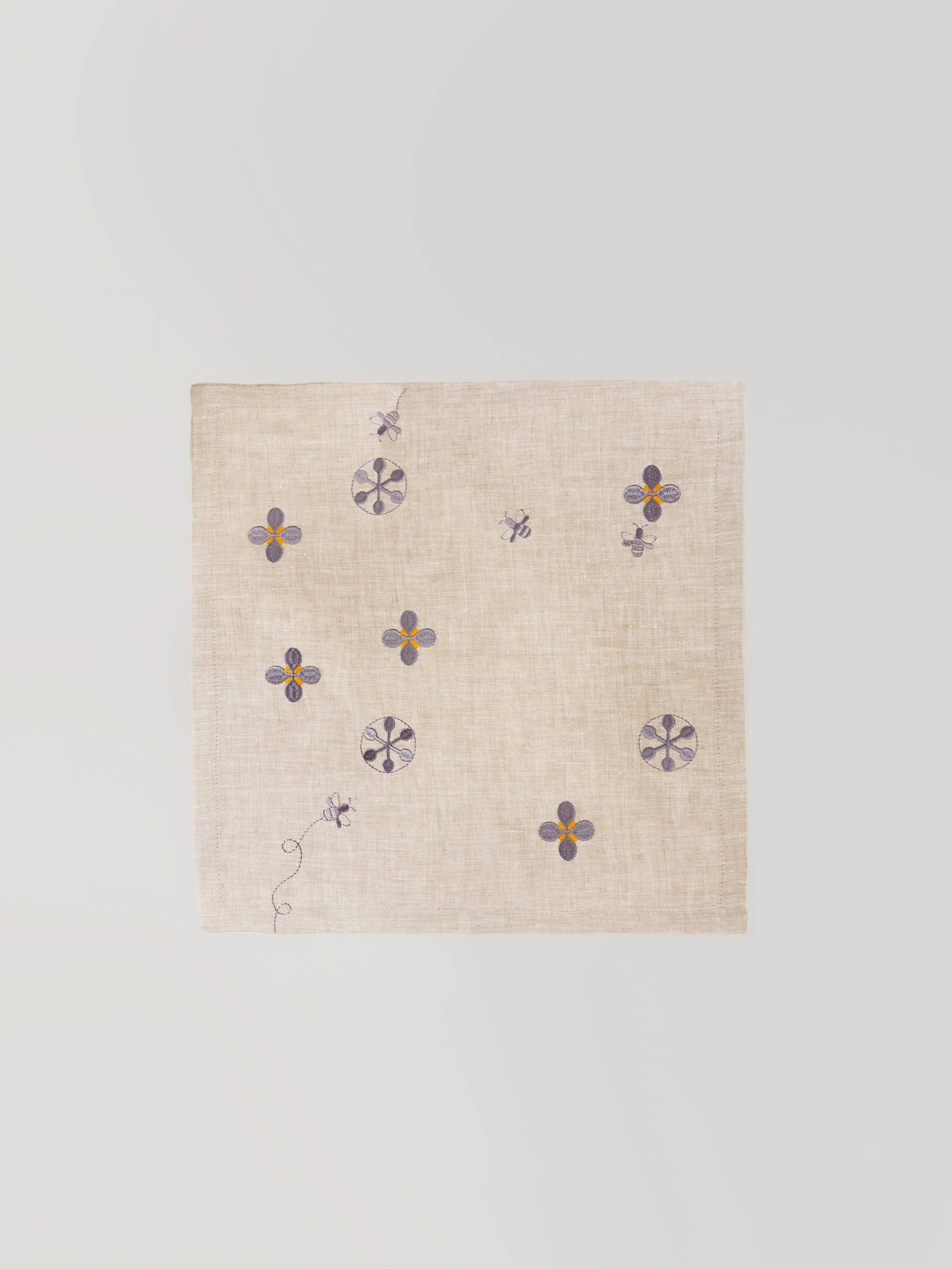 GNIZDOНабір з 2-х серветок столових з льону з машинною вишивкою "Мед" в натуральному кольорі