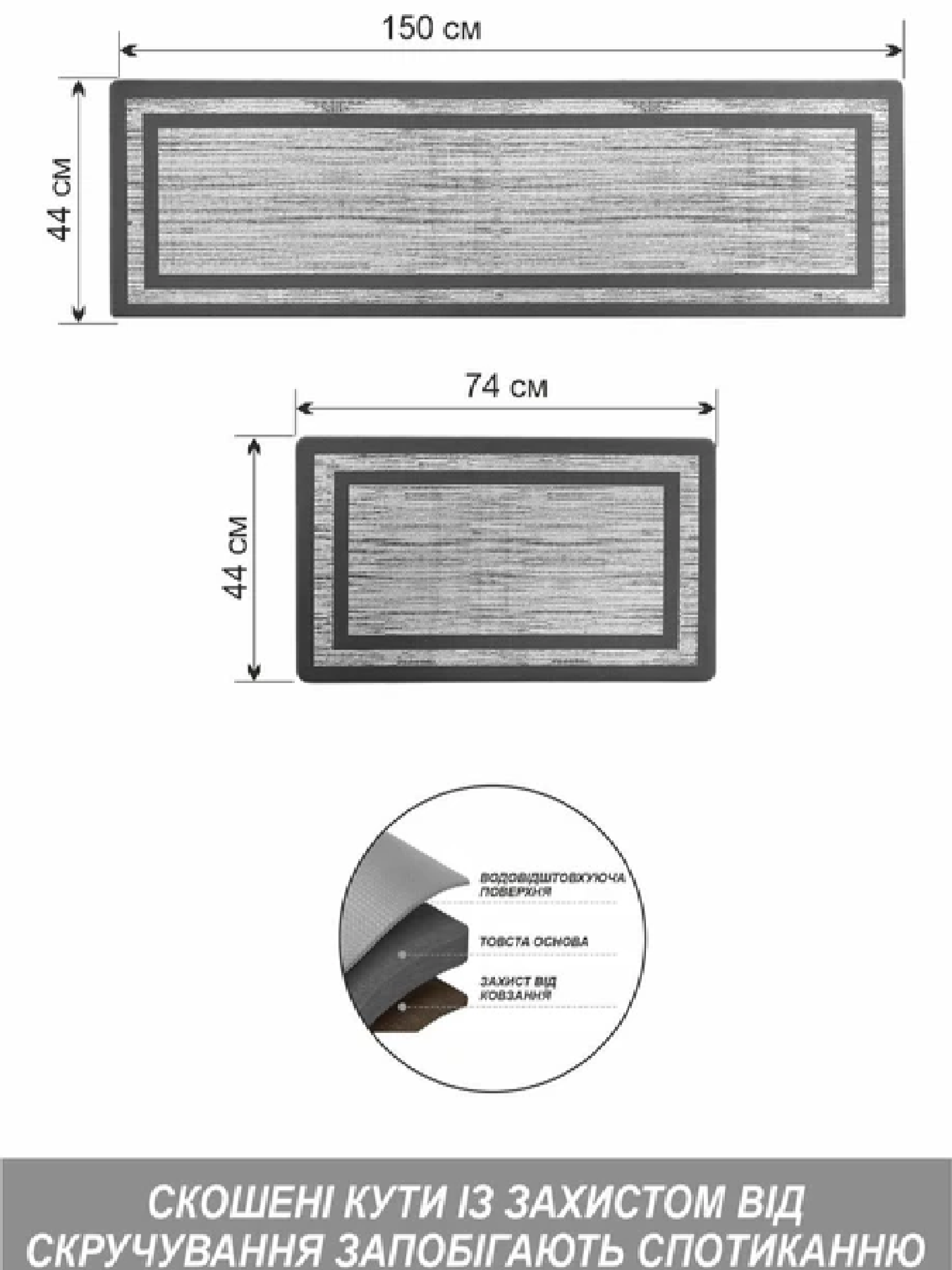 Набор коврики 2 шт. Серая окантовка - для кухни, офиса, дома, прихожей Lovely Svi модель 161203