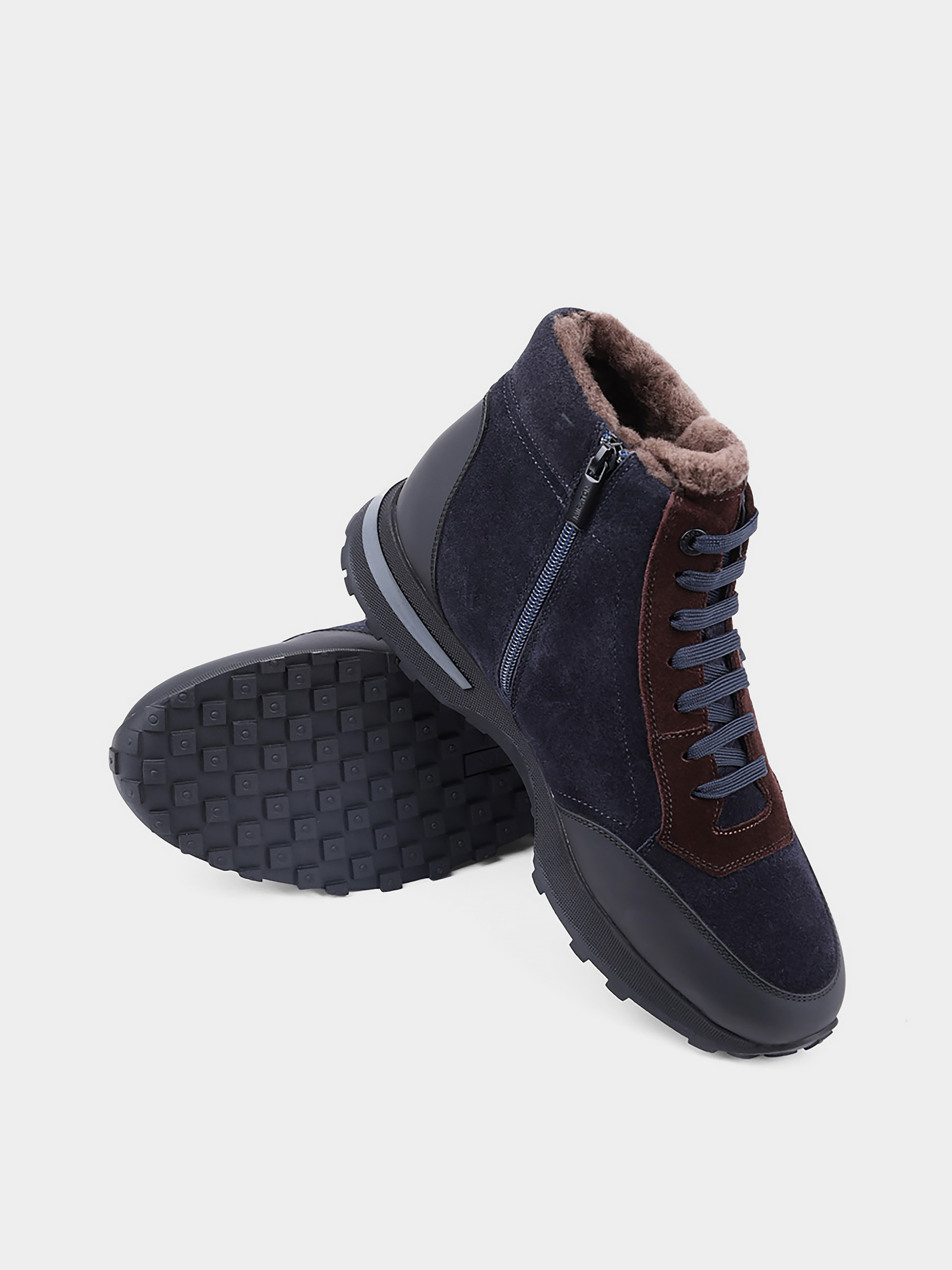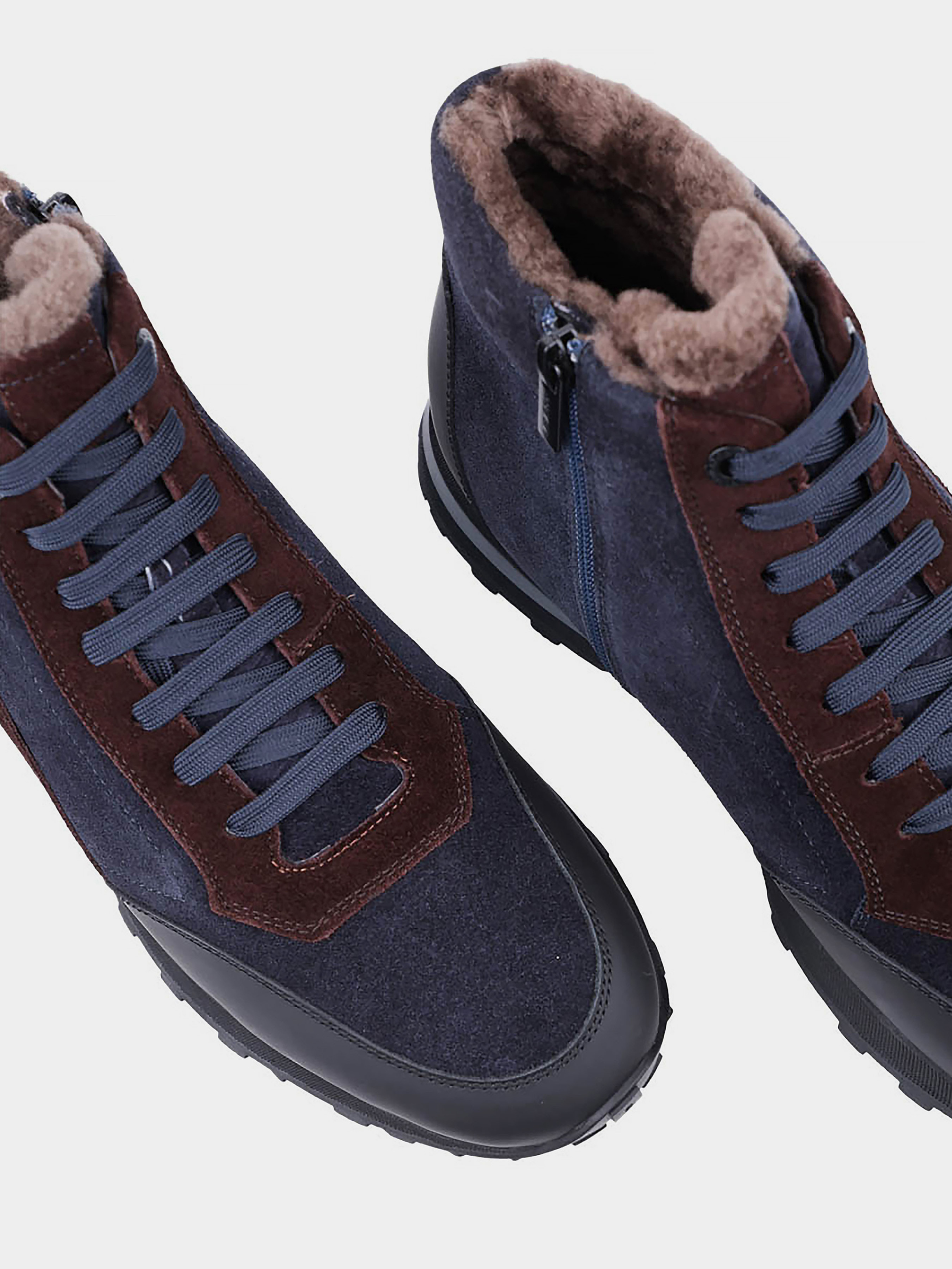 Мужские зимние замшевые ботинки MIRATON Подкладка: натуральный мех. Подошва: толстая. Каблук: без каблука. Цвет: синий. Застежка: молния. Декор: шнуровка.