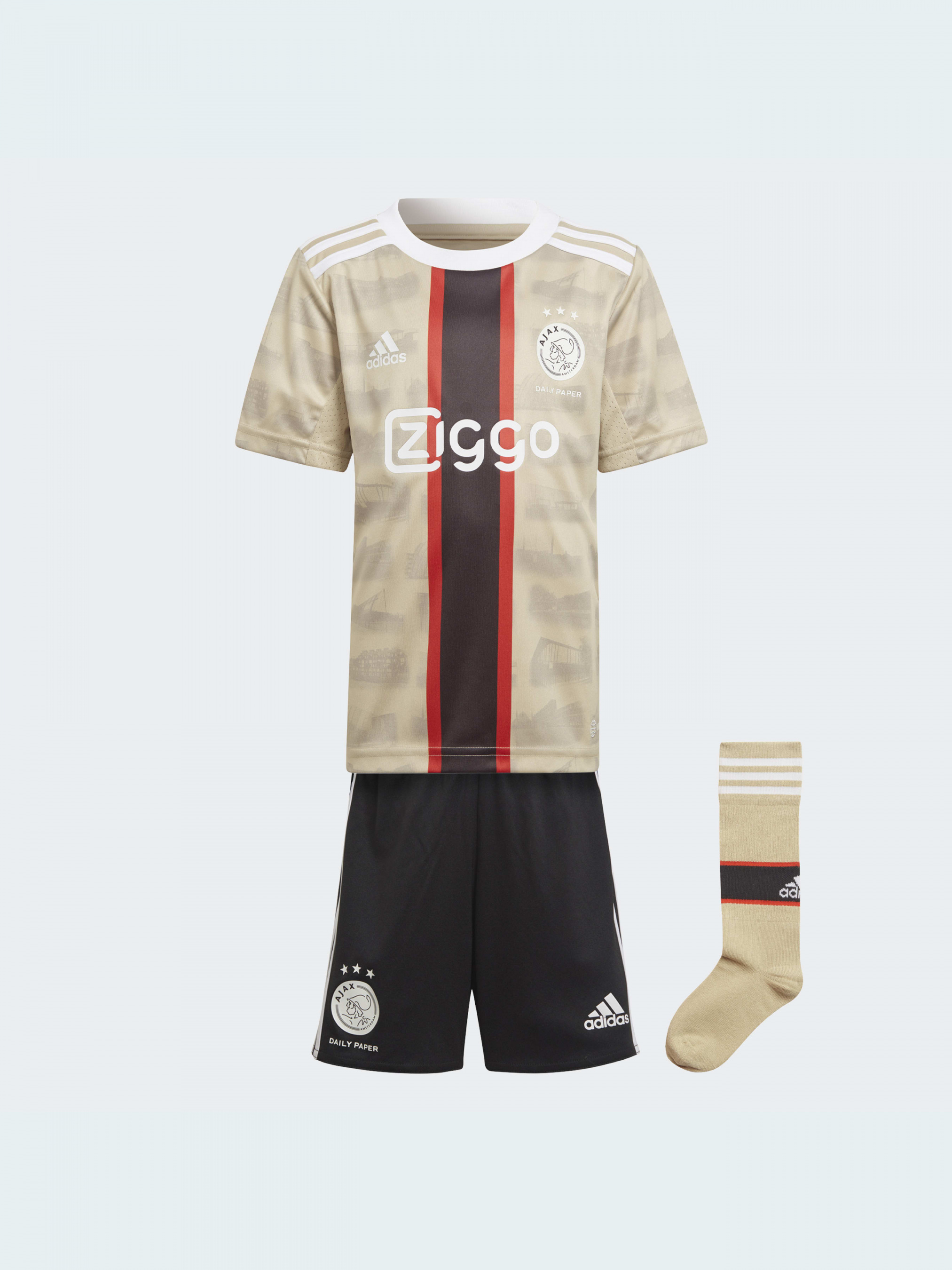Мы объединились с амстердамским модным брендом Daily Paper, чтобы создать этот детский комплект adidas Ajax Amsterdam third mini kit. В вертикальной полоске использованы цвета флага города и силуэты знаменитых футбольных уличных площадок. Шорты и носки завершают образ. Влагоотводящая ткань AEROREADY обеспечивает комфорт на поле и вне его.Эта модель на 60% состоит из переработанных материалов и представляет одно из наших решений по сокращению пластиковых отходов.