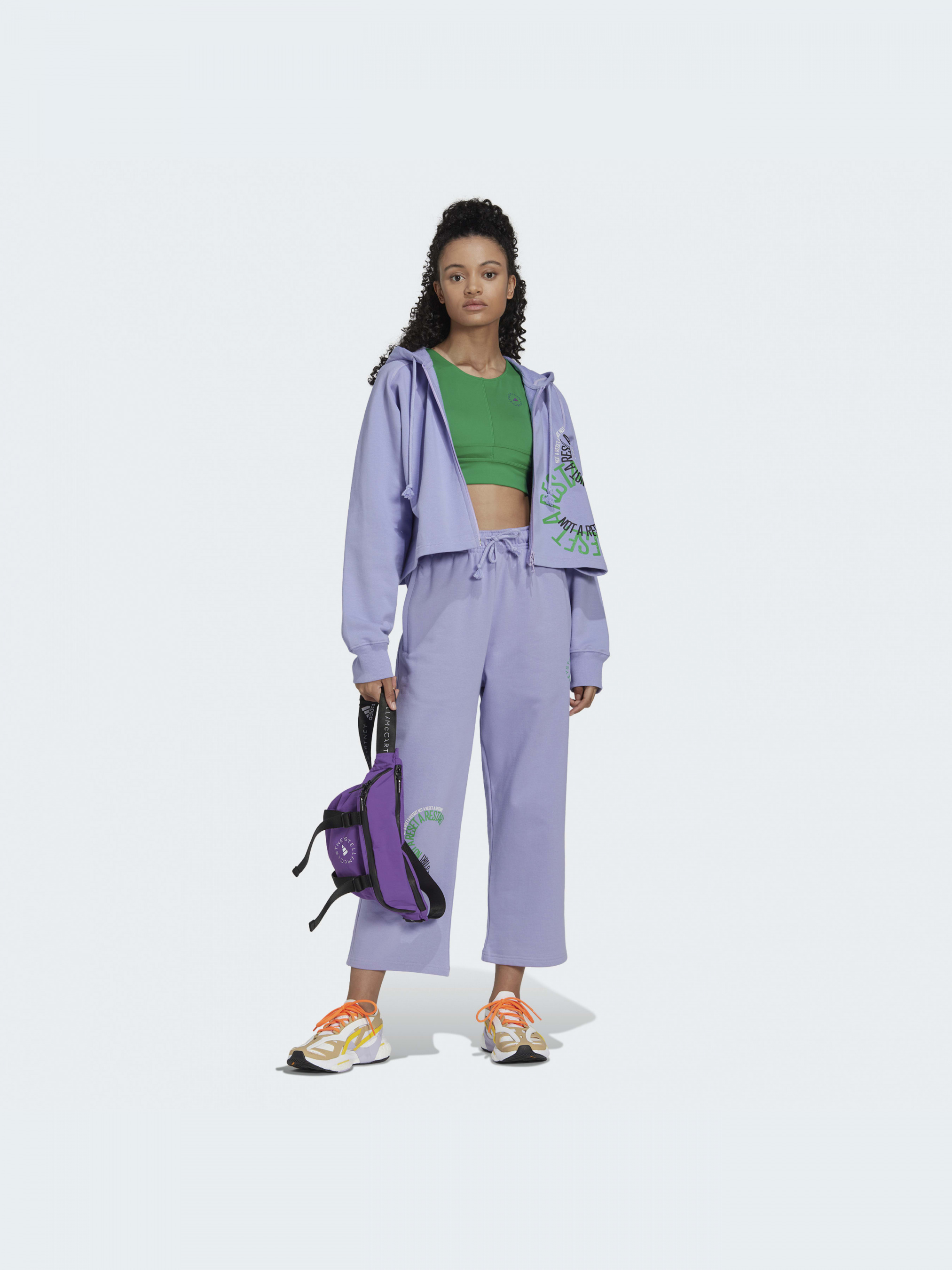 Часть миссии бренда adidas by Stella McCartney изображена на штанине этих спортивных брюк с высокой талией, создавая красочный графический образ. Мягкий френч терри материал из органического хлопка делает акцент на комфорте, а непринужденная форма позволяет не сомневаться в том, что именно так ты себя и чувствуешь. Эти брюки изготовлены из натуральных и возобновляемых материалов, что является частью нашего стремления исчерпать ограниченные ресурсы и помочь покончить с пластиковыми отходами.