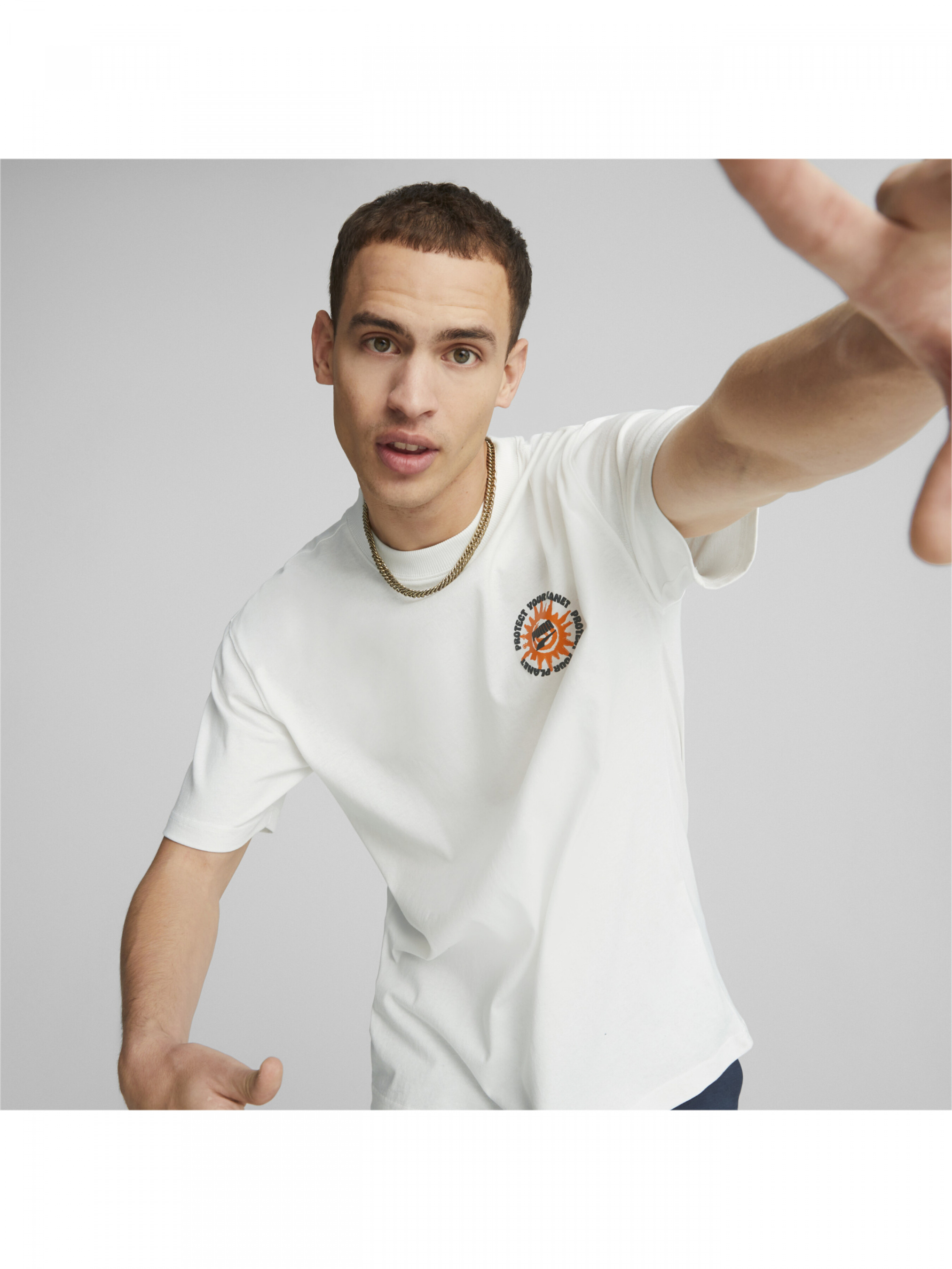 Футболка изготовлена из приятной на ощупь ткани на основе переработанного хлопка, превосходно выглядит и несет с собой важное послание: DOWNTOWN Graphic Men Tee — универсальная вещь для вашего гардероба. Прорезиненный принт с графическими элементами раскрывает суть силы природы. Вырез горловины в рубчик обеспечивает дополнительный комфорт и разнообразит обтекаемый силуэт этой футболки. Детали Коллекция: Весна-Лето 2023 Стиль: Премиум Характеристики Состав: 100% хлопок Содержание переработанных материалов: Изготовлено из переработанного материала не менее чем на 20% и воплощает собой шаг вперед, к лучшему будущему Хлопок: Хлопок, который используется в продуктах PUMA, поступает с ферм с устойчивым способом ведения сельского хозяйства, с эффективным использованием воды и поддержанием здоровья почвы. Узнайте больше на сайте: https://about.puma.com/forever-better Круглый вырез горловины в рубчик Прорезиненный принт с графическими элементами на груди и спине Страна-производитель: Китай