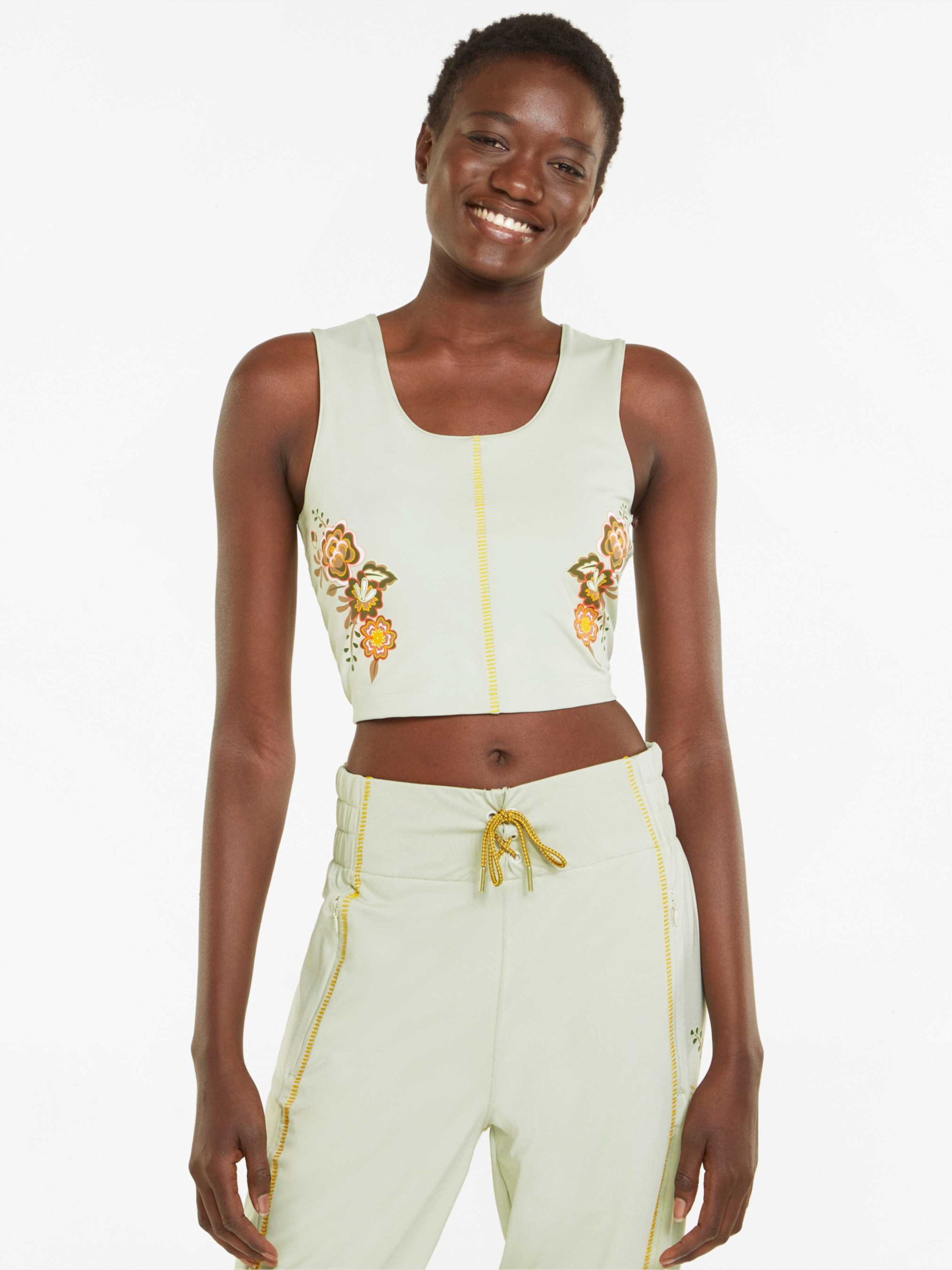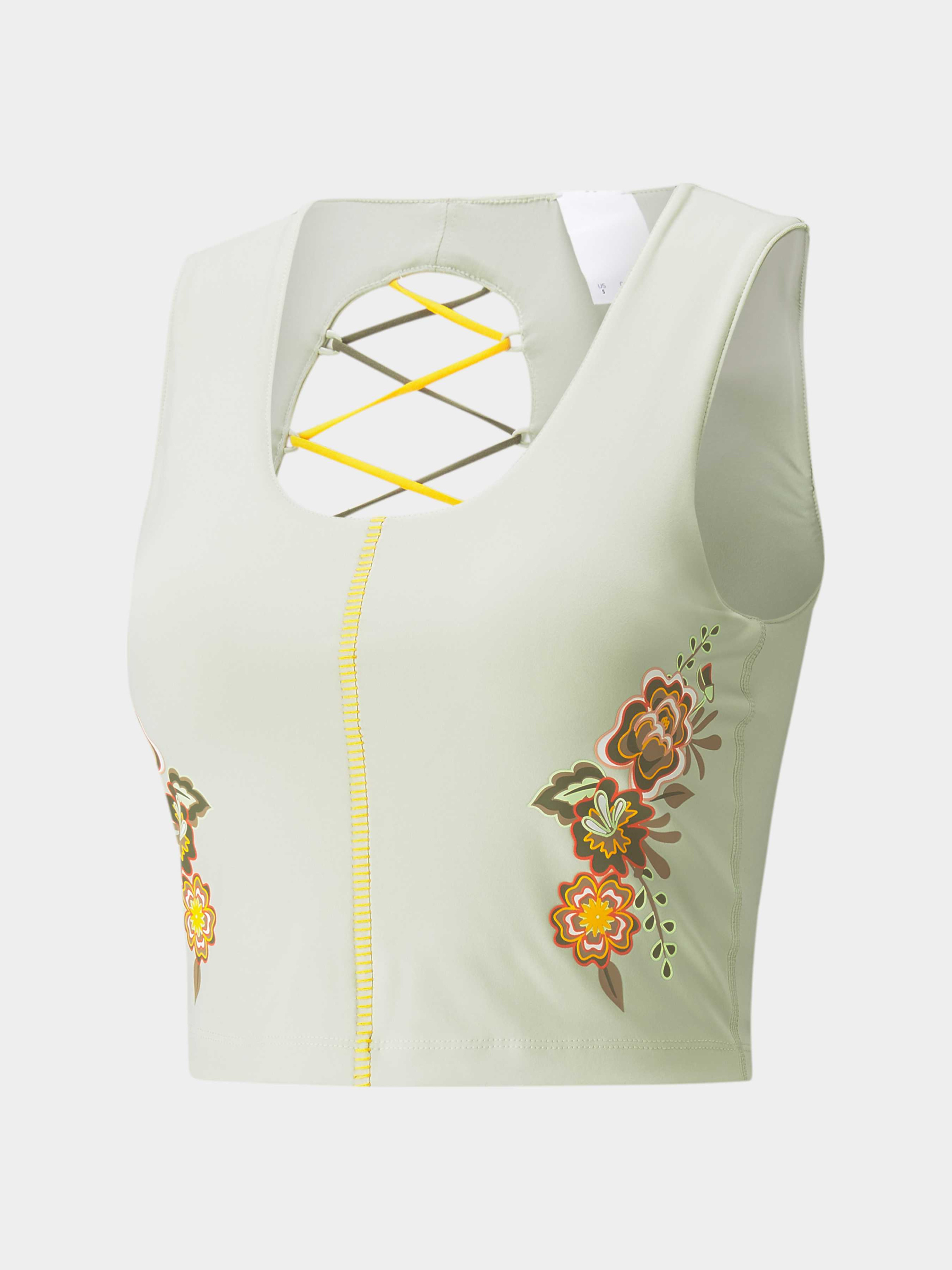 Наша серия Female Artists прославляет сильных женщин творческих профессий. И если говорить об иконах, то нет равных Фриде Кало, неизменному борцу за расширение прав женщин и свободу самовыражения. Непростой топ-бра PUMA x FRIDA KAHLO Cropped Women's Training Bra сочетает в себе красивую цветочную графику, смелую открытую спинку и эластичные детали. Завершают картину высокопроизводительная технология отведения влаги и ткань, которая тянется в четыре стороны. Потрясающее художественное дополнение к вашему спортивному гардеробу. Детали Коллекция: Весна-лето 2022 Стиль: Спортивный Вид спорта: Тренинг Технологии: Высокотехнологичный материал dryCELL отводит влагу, обеспечивая ощущение сухости и комфорт; ellaVATE – лучшая в своем классе ткань PUMA: тянется в четыре стороны, быстро сохнет, не просвечивает, приятна на ощупь Характеристики Состав: Полиэстер, эластан Женский топ-бра Деликатное эластичное плетение сзади Оригинальная строчка спереди Цветочная графика спереди Брендинг PUMA x FRIDA KAHLO сзади внизу Страна-производитель: Вьетнам
