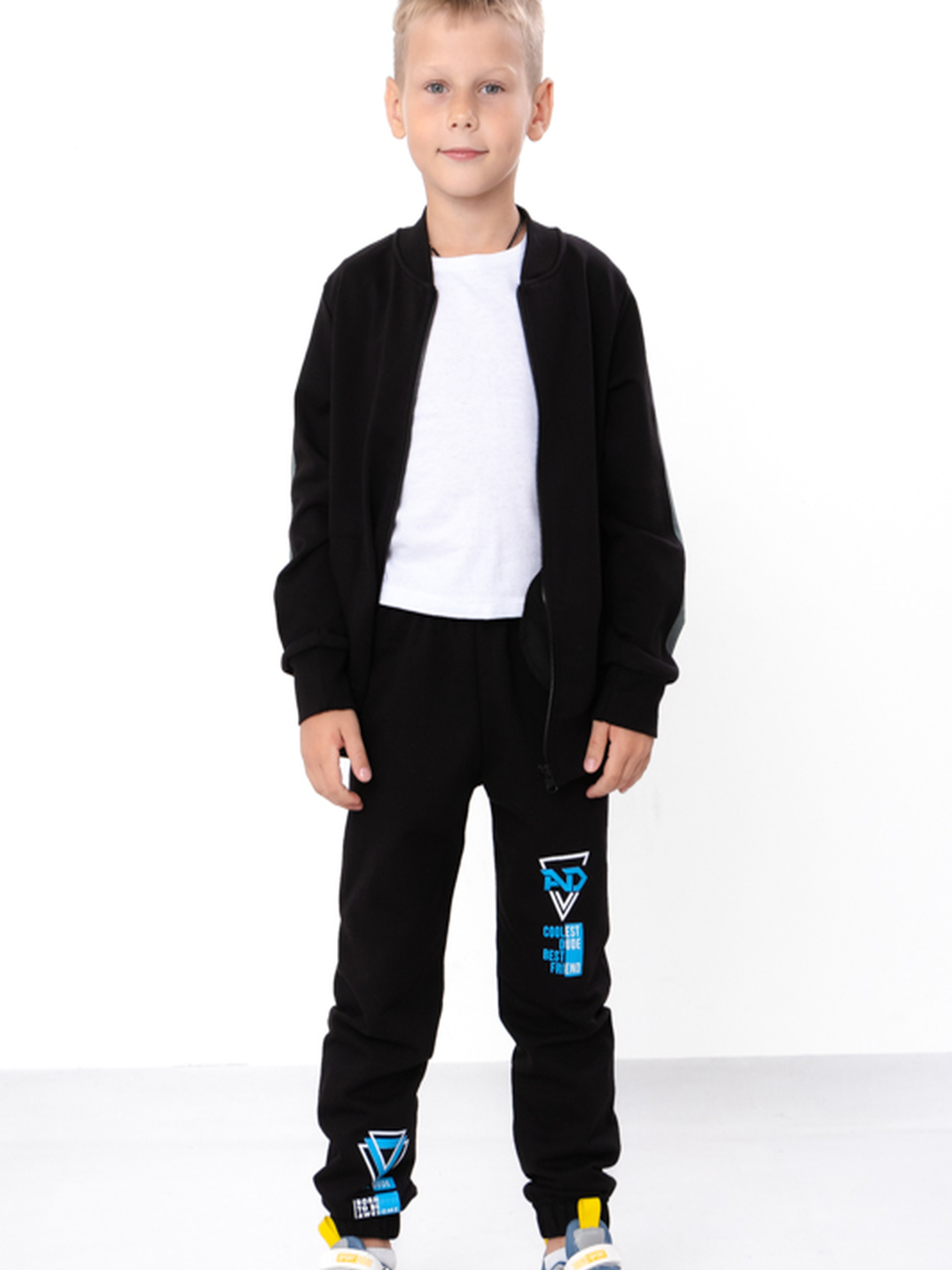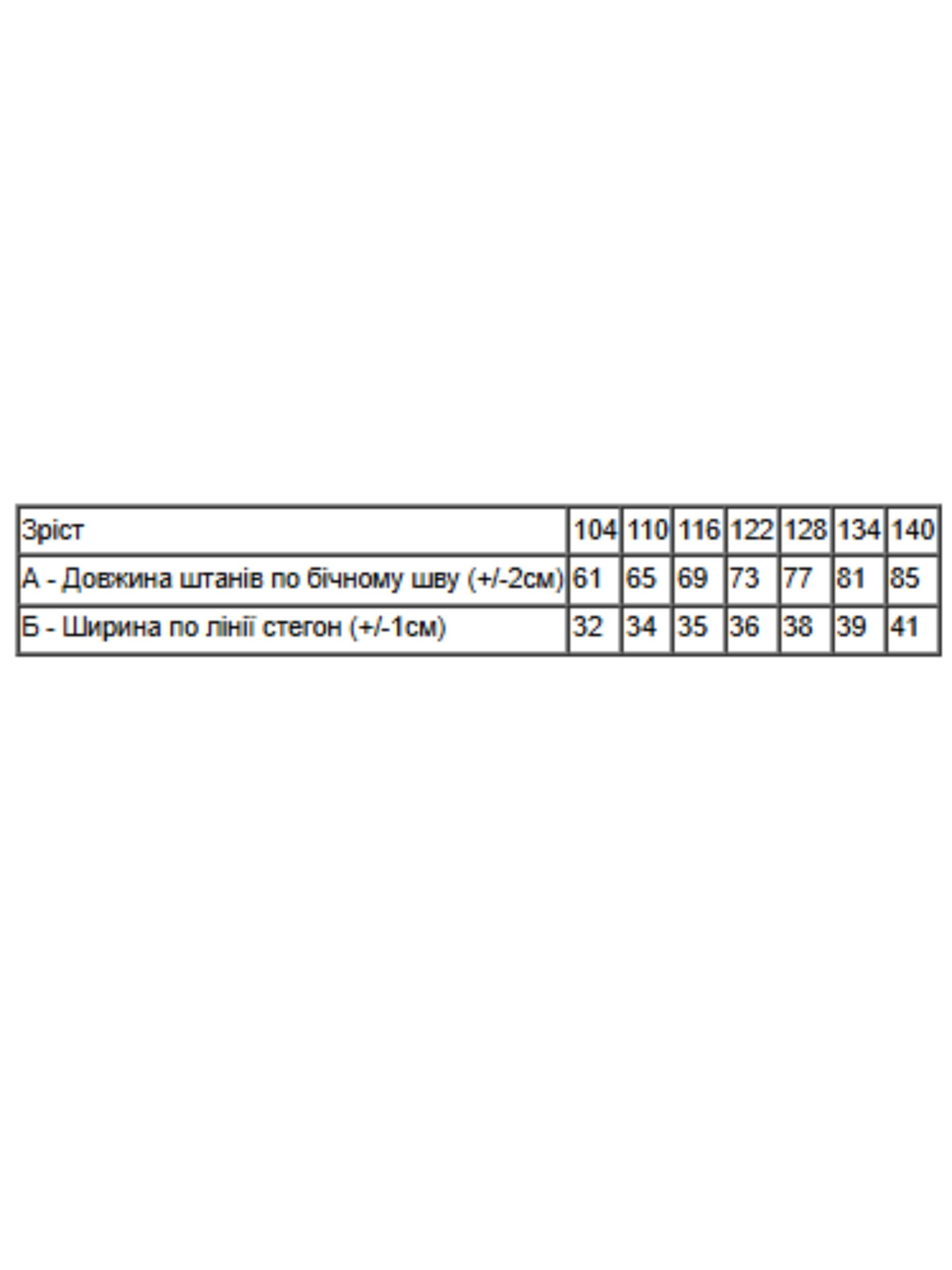 Полотно: начос однотонний Склад полотна: 100% бавовна Зріст: 104-140 Штани для хлопчика — ідеальний вибір для активних дітей! Ці стильні та зручні штани виготовлені з високоякісних, дихаючих матеріалів, що забезпечують комфорт протягом усього дня. Завдяки еластичному поясу і модному дизайну, штани легко надягати і знімати. Вони ідеально підходять для ігор на свіжому повітрі, прогулянок чи садочка.