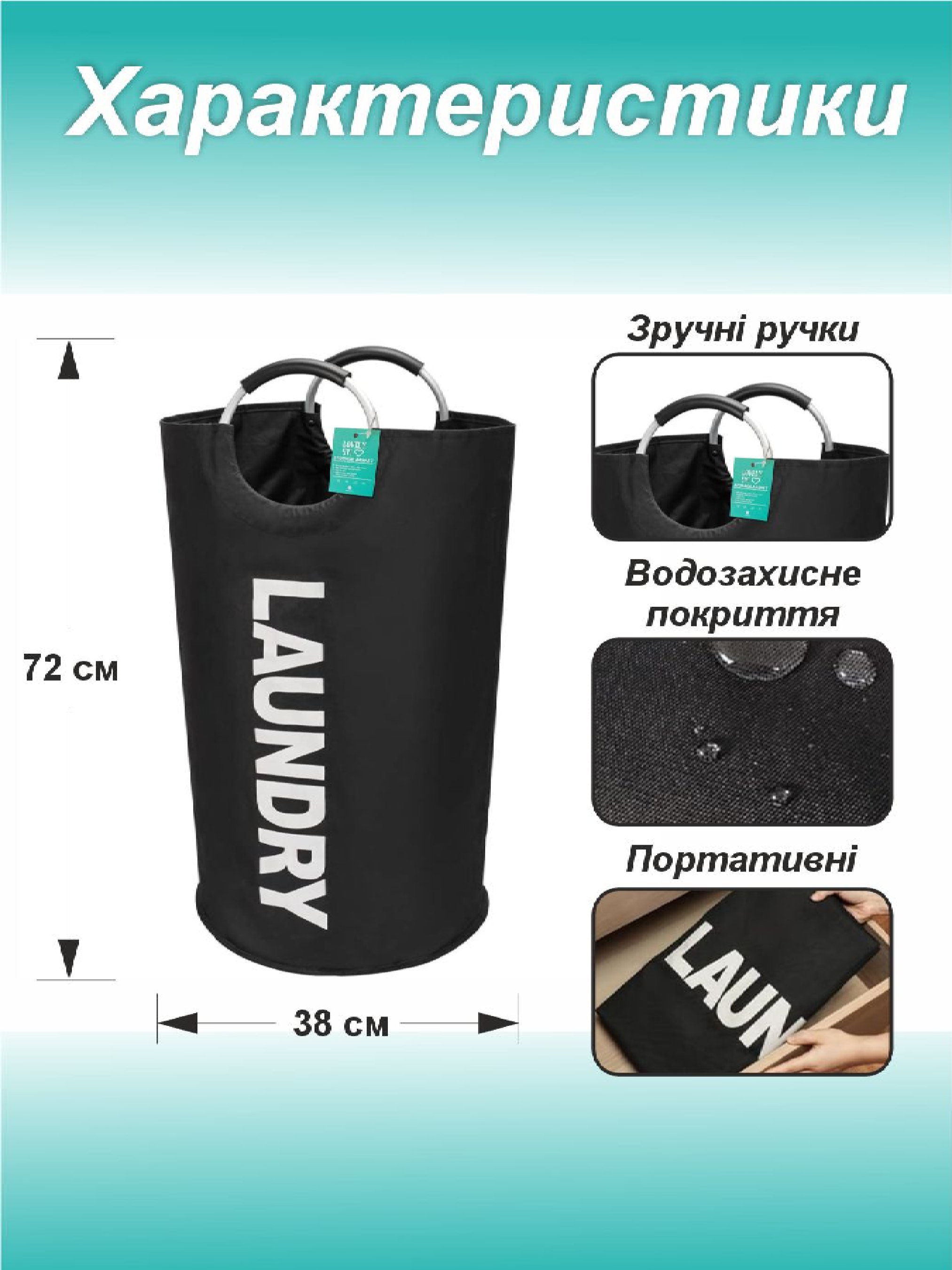 Корзина органайзер для белья, вещей, игрушек 82 л - портативный водонепроницаемый мешок – Черный Lovely Svi модель 6908457963210
