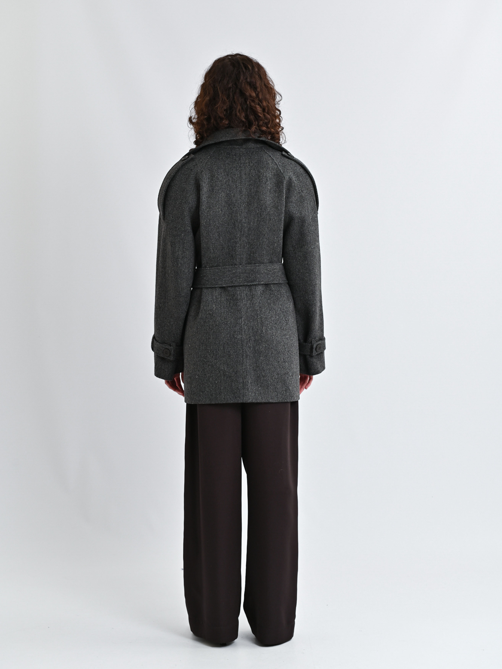 Пальто серое короткое с акцентными патами модель 500441