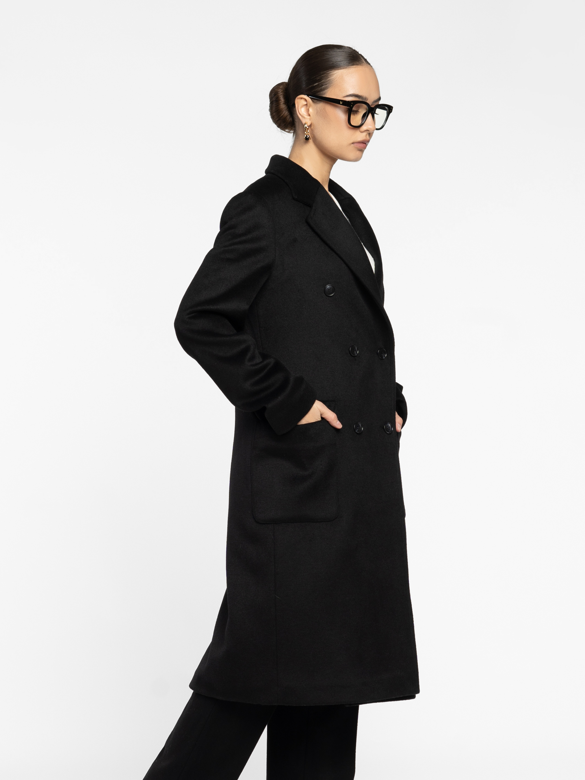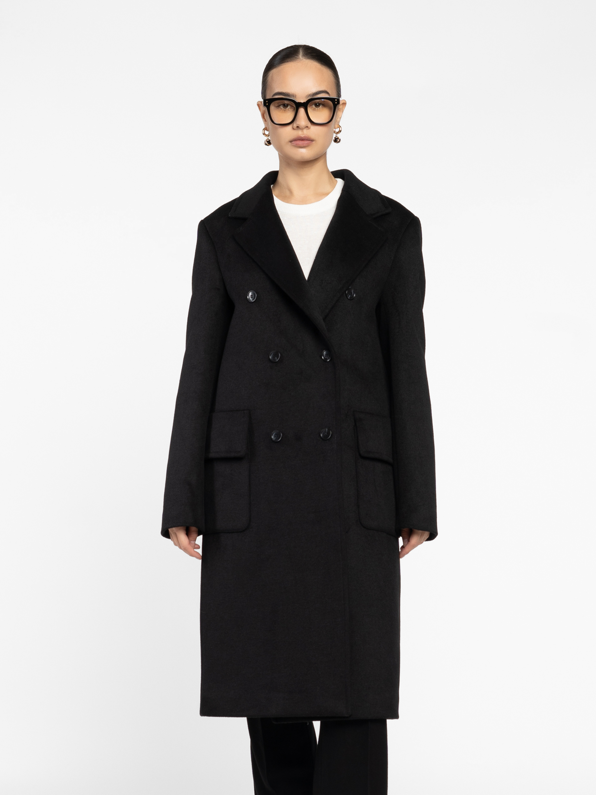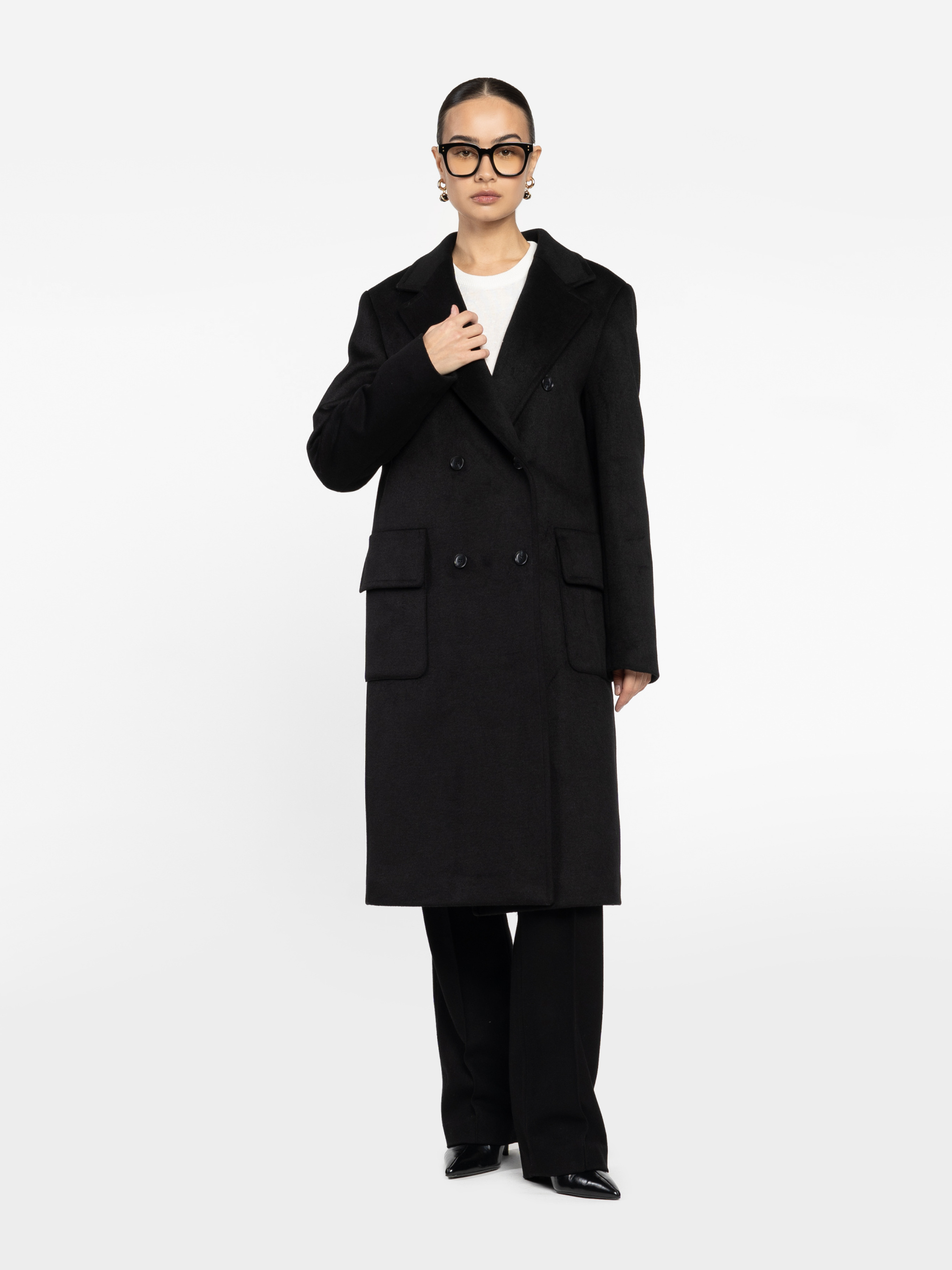 Женское пальто Arber черного цвета. Шерстяная ткань дарит мягкость и тепло, сохраняя безупречную форму. Подкладка стеганая на основе современного синтетического утеплителя Hollowsoft, изготовленного по уникальным технологиям: имея тонкое волокно, сохраняет высокую теплоизоляцию, согревая в холодное время. Четкая линия плеча, удлиненный двубортный силуэт и острые лацканы — классика, звучащая по-новому. Пальто, которое говорит за вас — сдержанная уверенность, считываемая с первого взгляда. Модель на фото в размере 44. Рост: 168 см. Параметры: 79/60/88