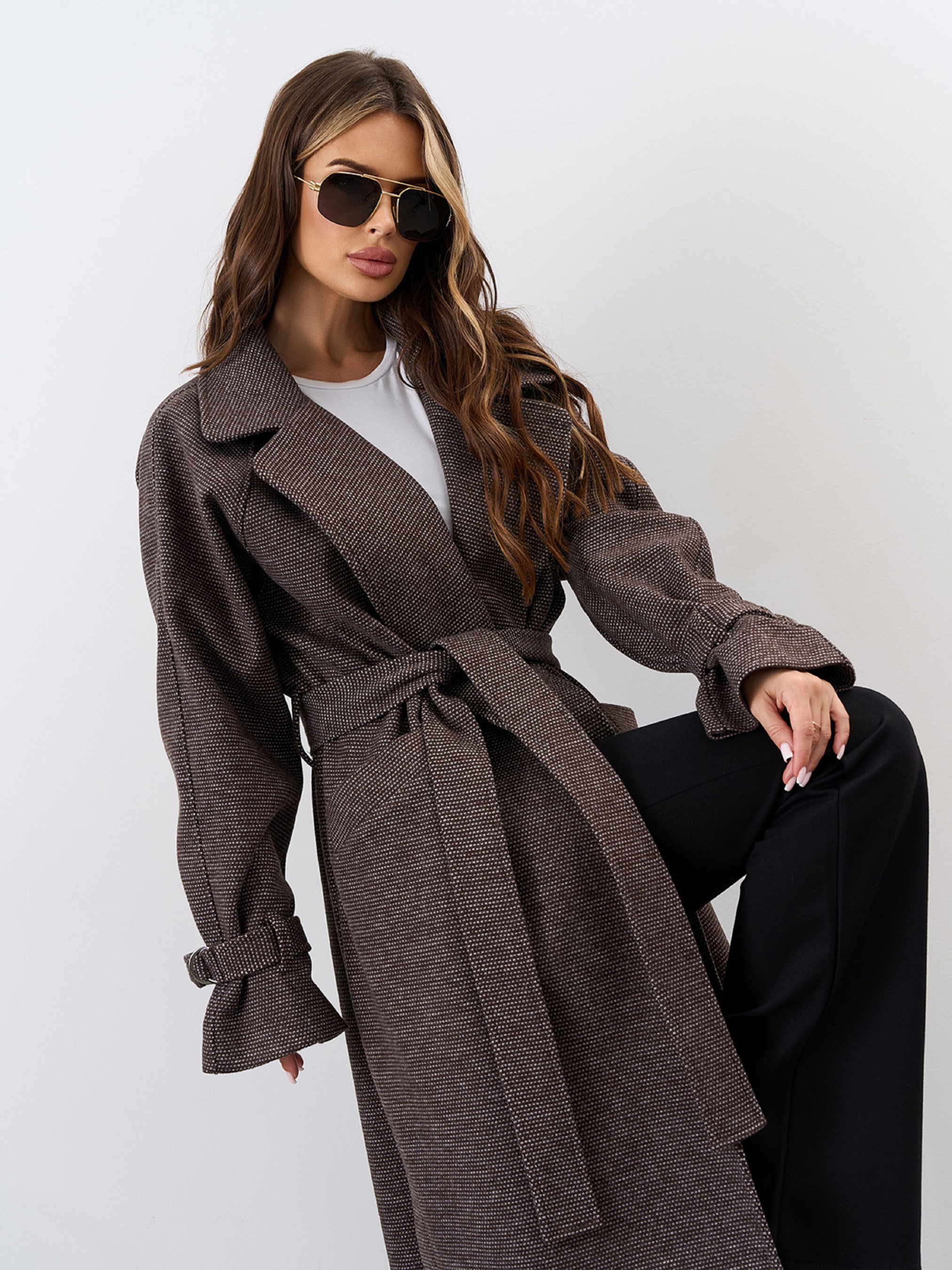 Пальто ISSA Plus модель 15330_темно_коричневый