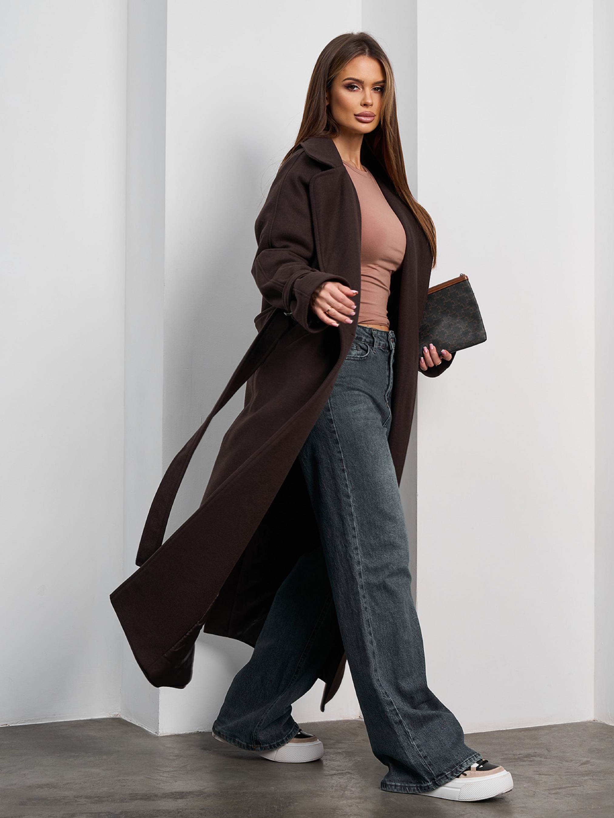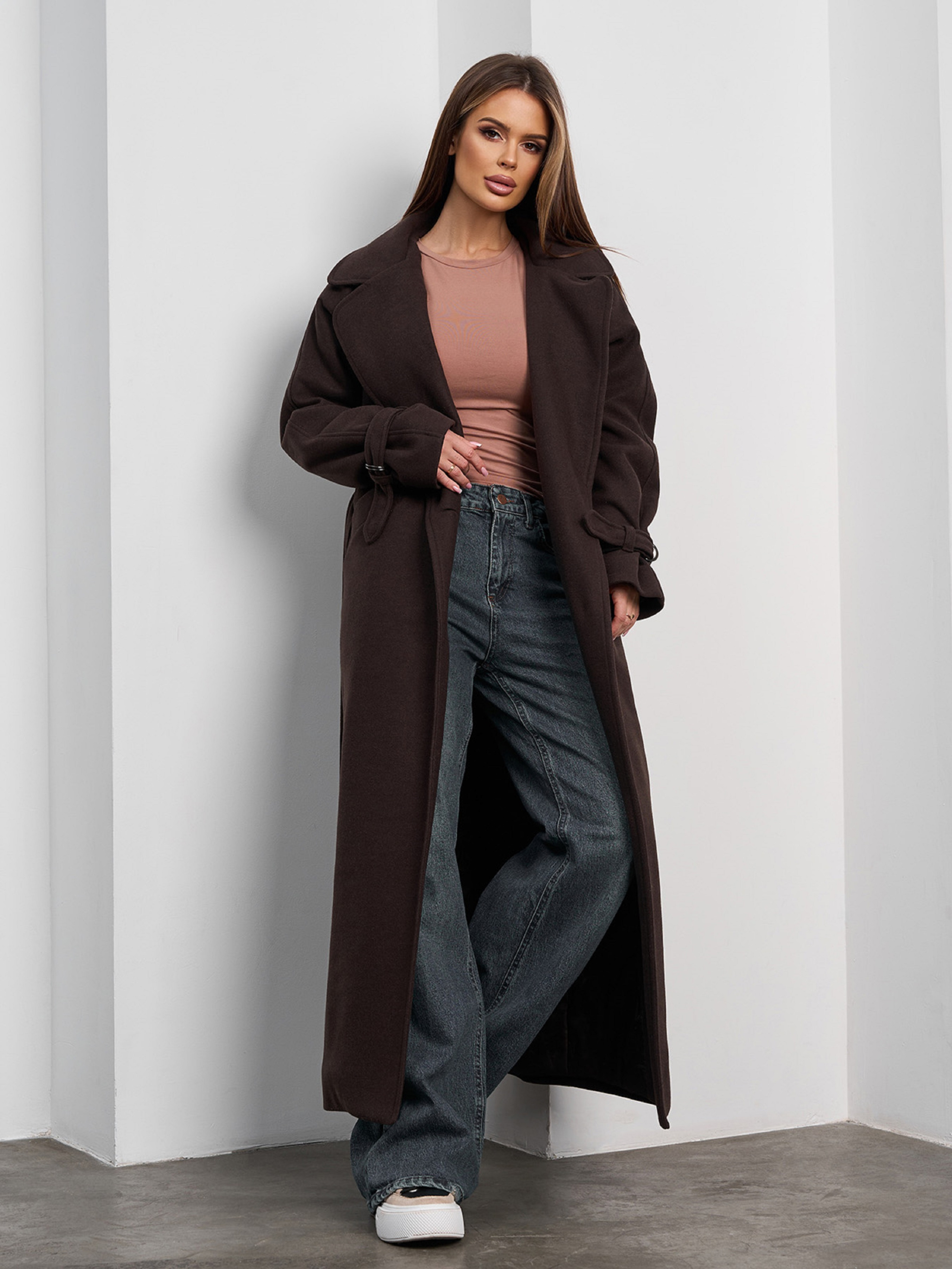 Пальто с утеплителем ISSA Plus модель 15377_темно-коричневый