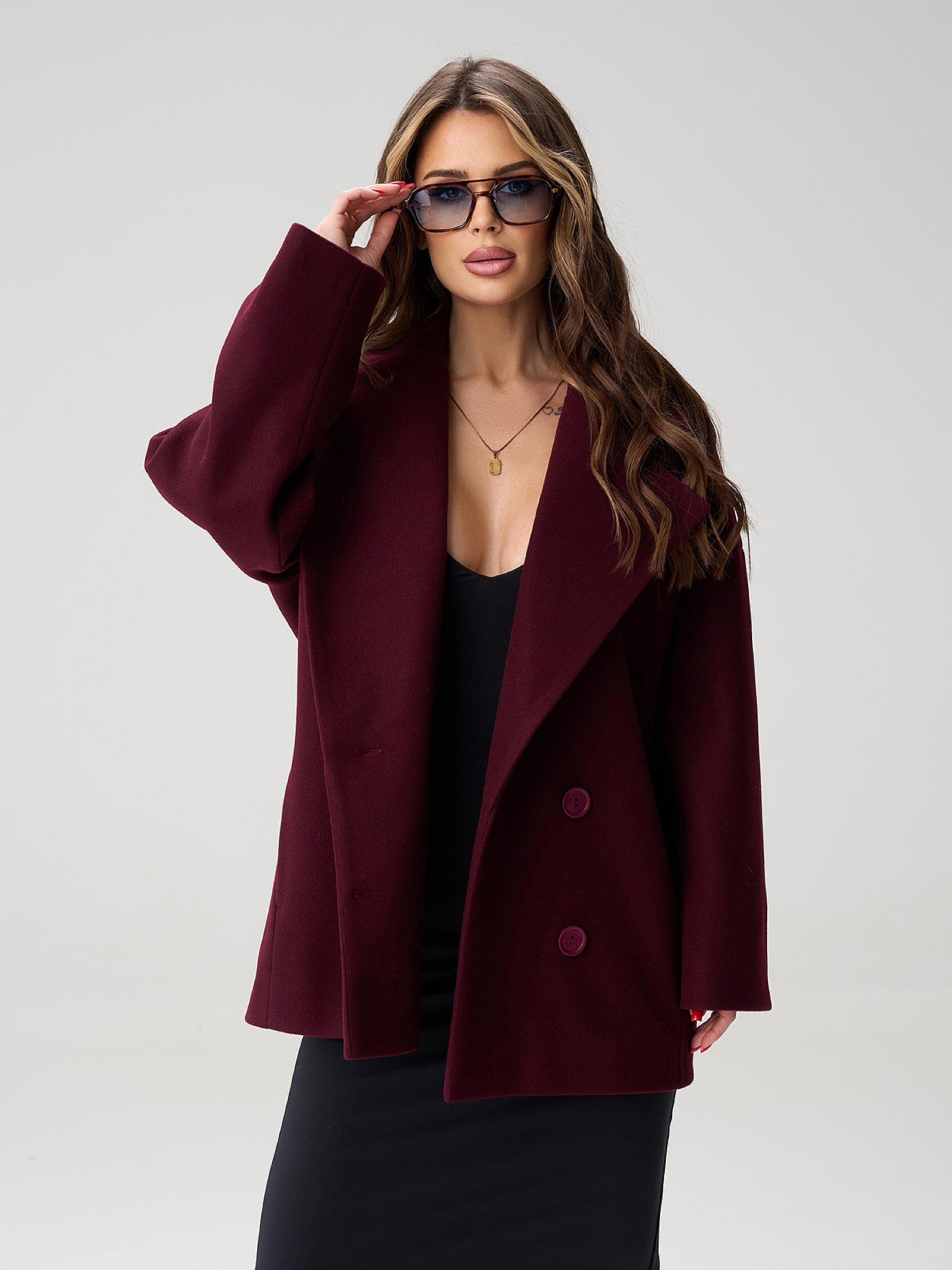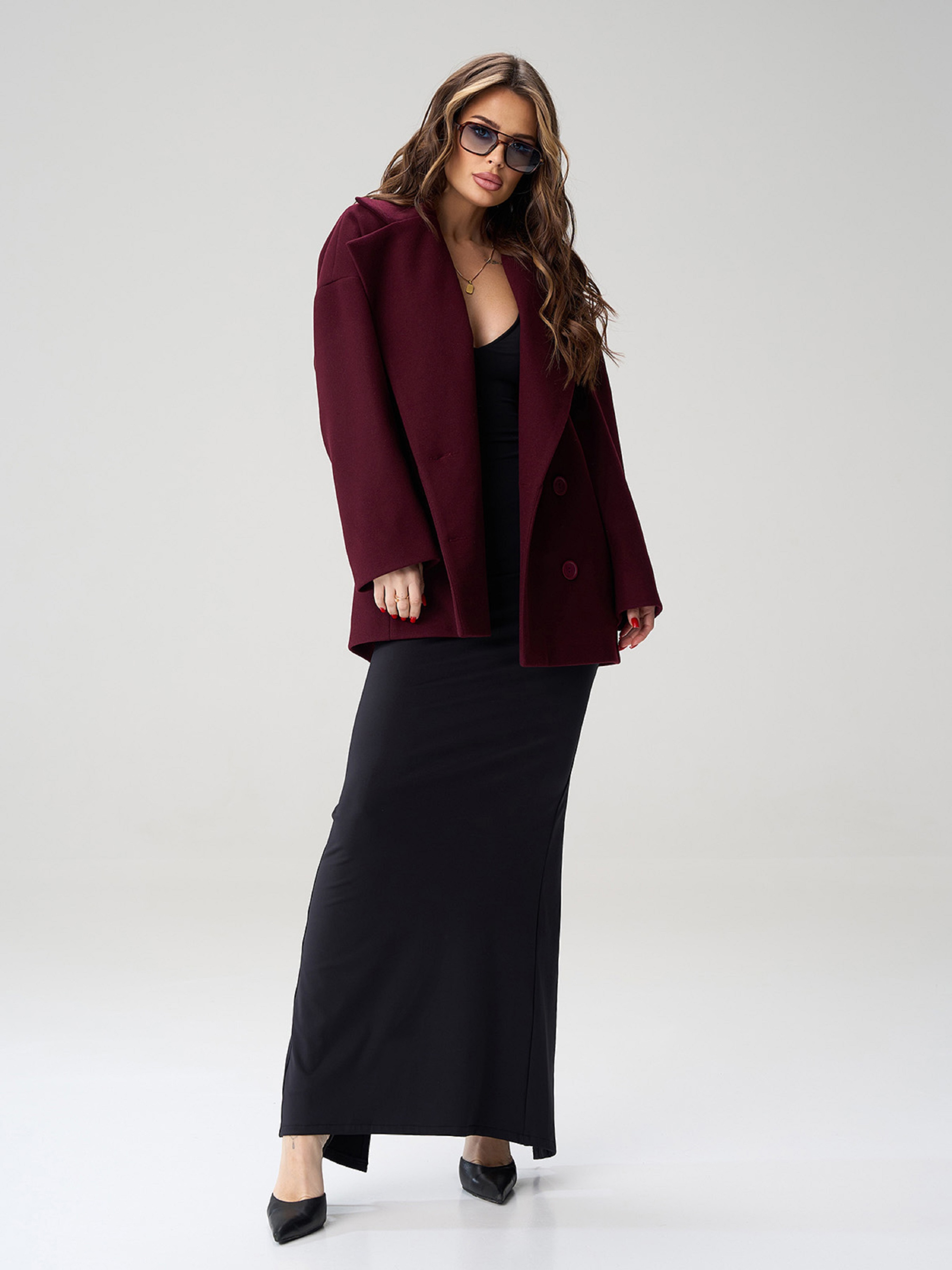 Пальто и плащи ISSA Plus модель 15499_темно-бордовый