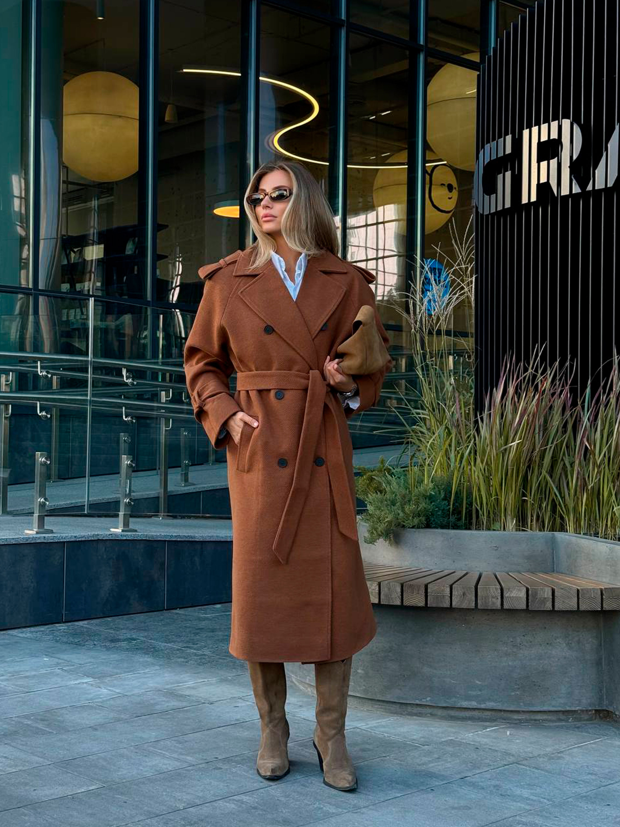Жіноче двобортне оверсайз пальто ПАТІ з кишенями, Гірчичний Milirud (mil576) модель mil576-grchicq