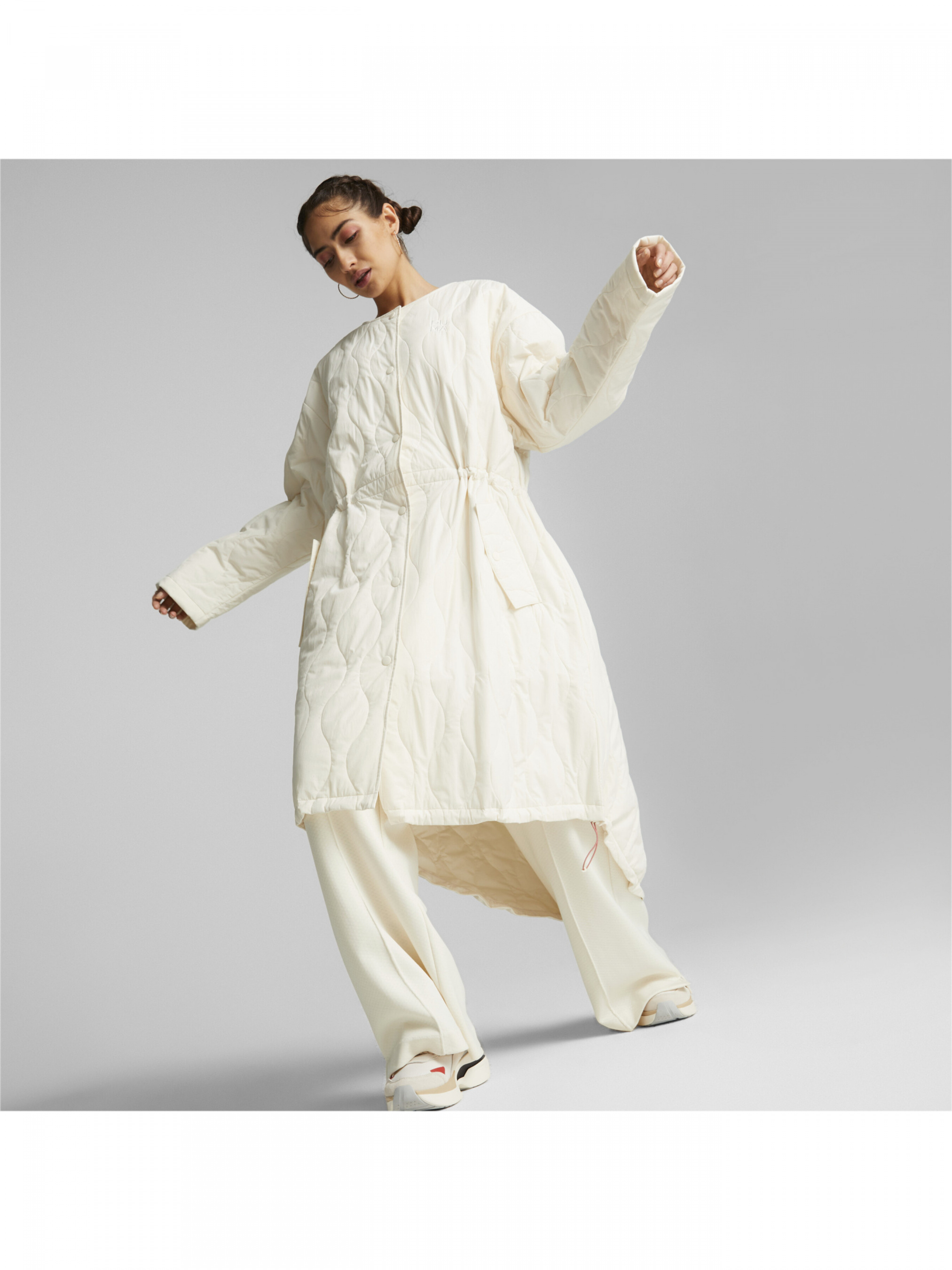 С нашей курткой Infuse Oversized вам не нужно искать компромисс между комфортом и стилем. Эта куртка, рассчитанная на любую погоду, защитит вас и в снег, и в дождь. Ее удлиненный, комфортный фасон очень практичен благодаря технологиям warmCELL, rainCELL и windCELL, а также удобным карманам и застежке на кнопках. Детали Коллекция: Осень-Зима 2022 Стиль: Премиум Технологии: rainCELL, windCELL, warmCELL Характеристики Состав: 100% нейлон Содержание переработанных материалов: Изготовлено из переработанного материала не менее чем на 20% и воплощает собой шаг вперед, к лучшему будущему rainCELL: Технология, предназначенная для защиты от дождя и жары во время тренировок. warmCELL: Влагоотводящая технология для холодной погоды, предназначенная для надежного удержания тепла и его сохранения во время тренировок. windCELL: Технология, разработанная для защиты от ветра и обеспечения комфорта во время тренировок Крой «оверсайз» Стеганая ткань с подкладкой Регулируемый пояс и нижний край со шнурками для индивидуальной регулировки посадки и стильного акцента Без воротника Застежка-молния по всей длине Цельнокроенная планка с видимой застежкой на кнопках Боковые прорезные карманы с клапанами на кнопках Вышитый логотип PUMA на груди слева Страна-производитель: Китай