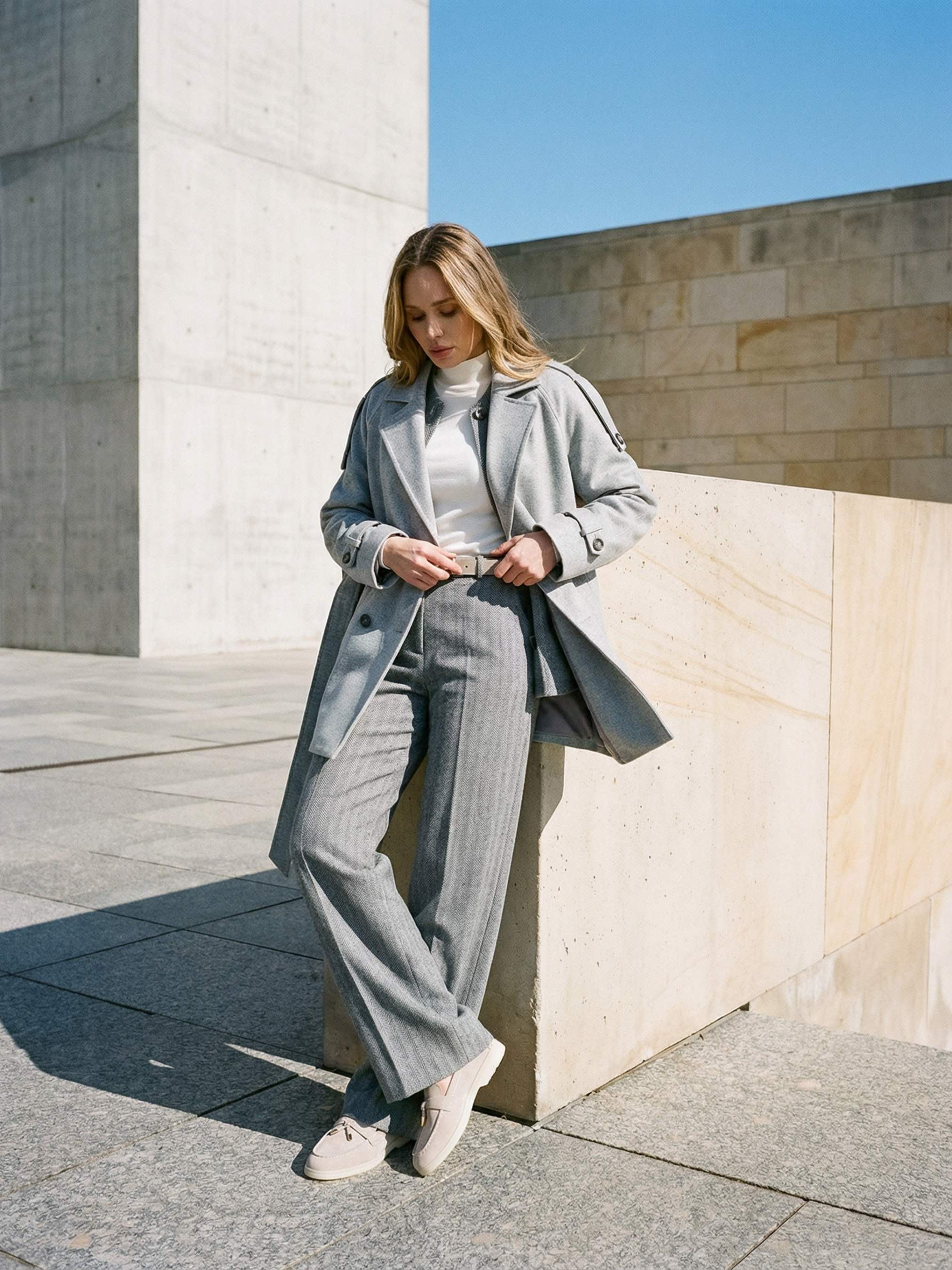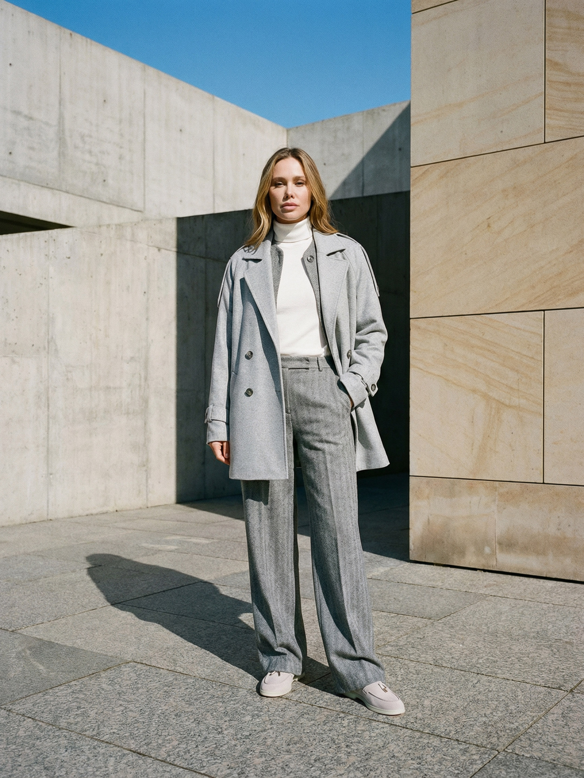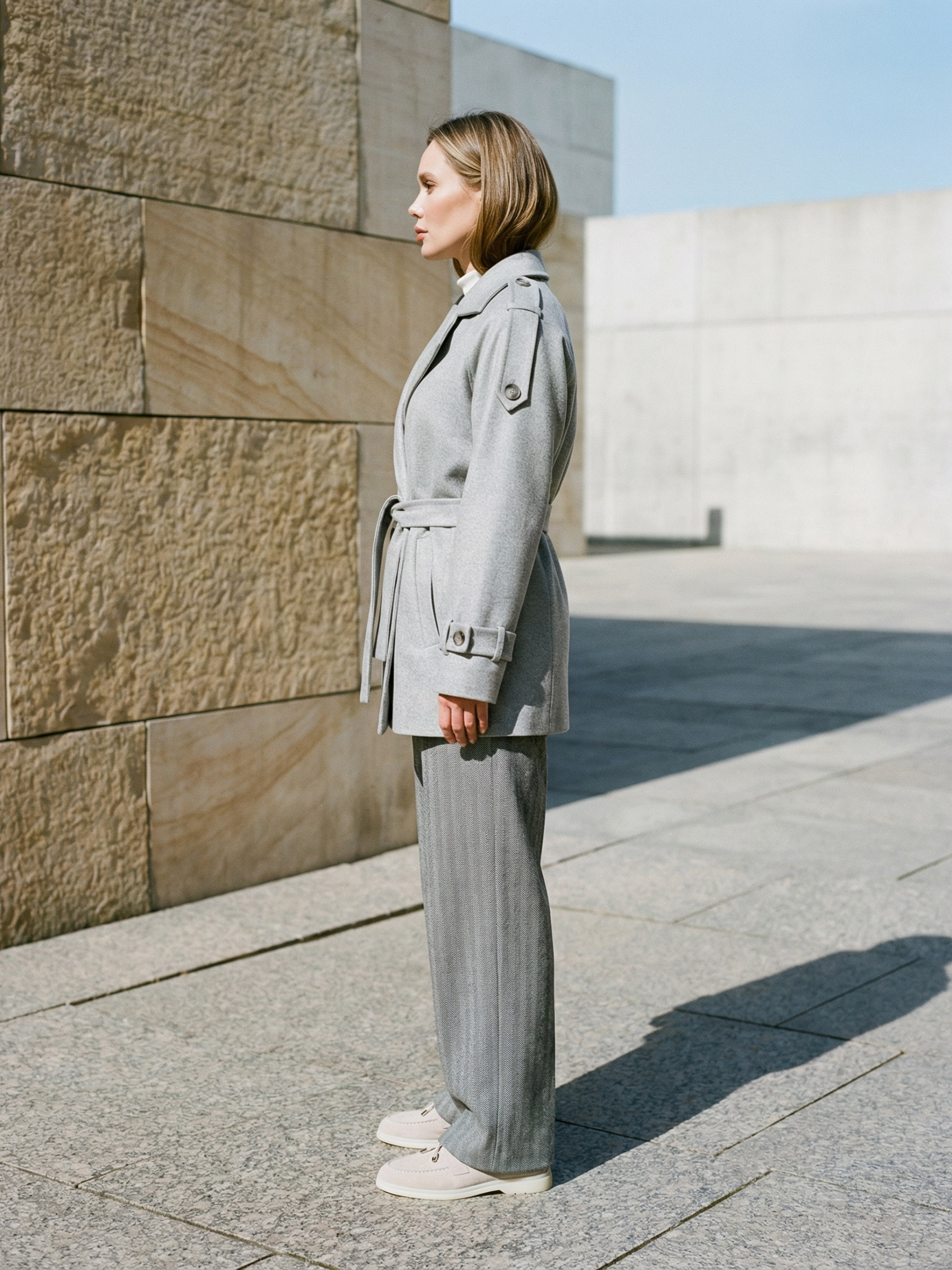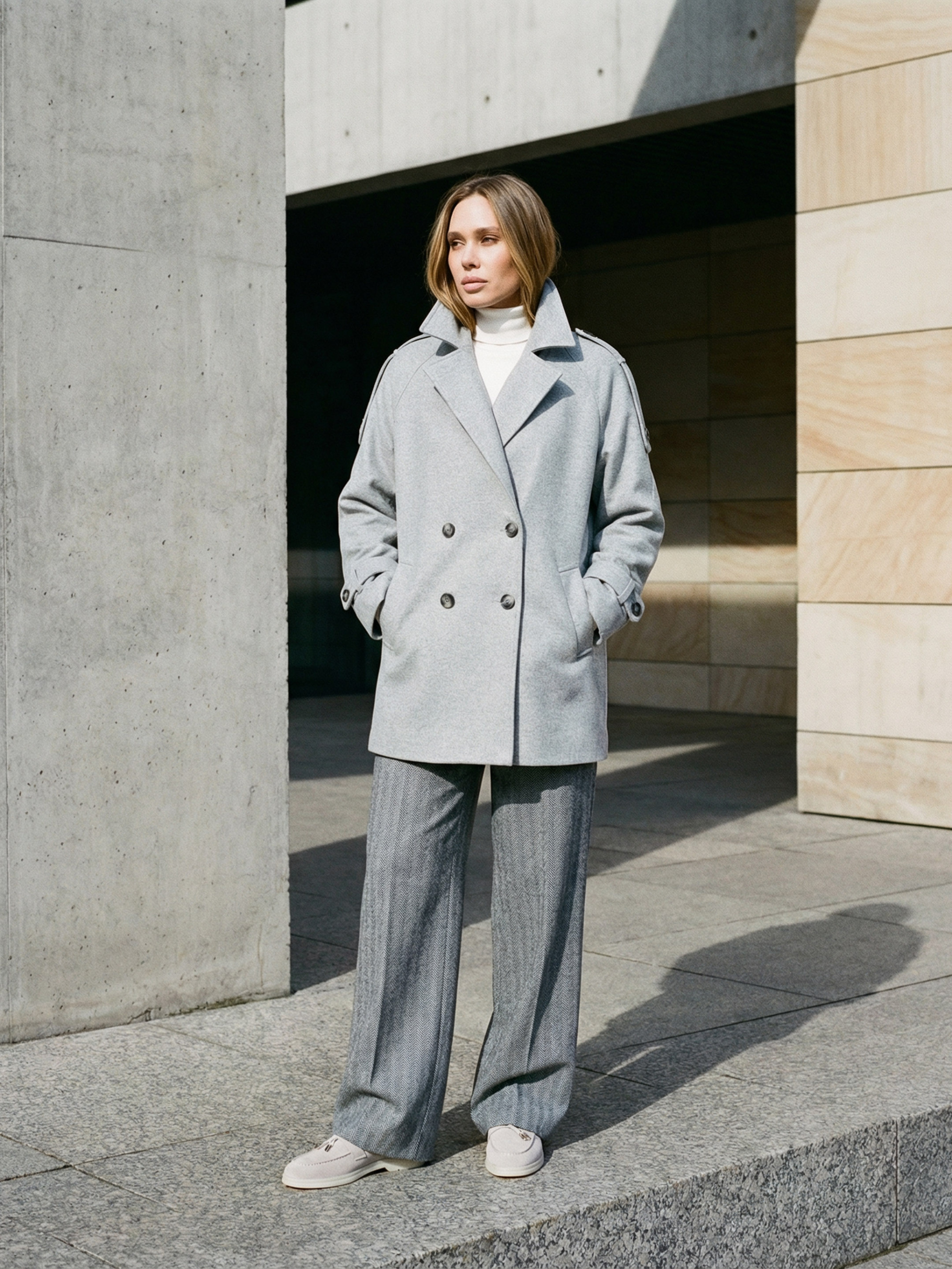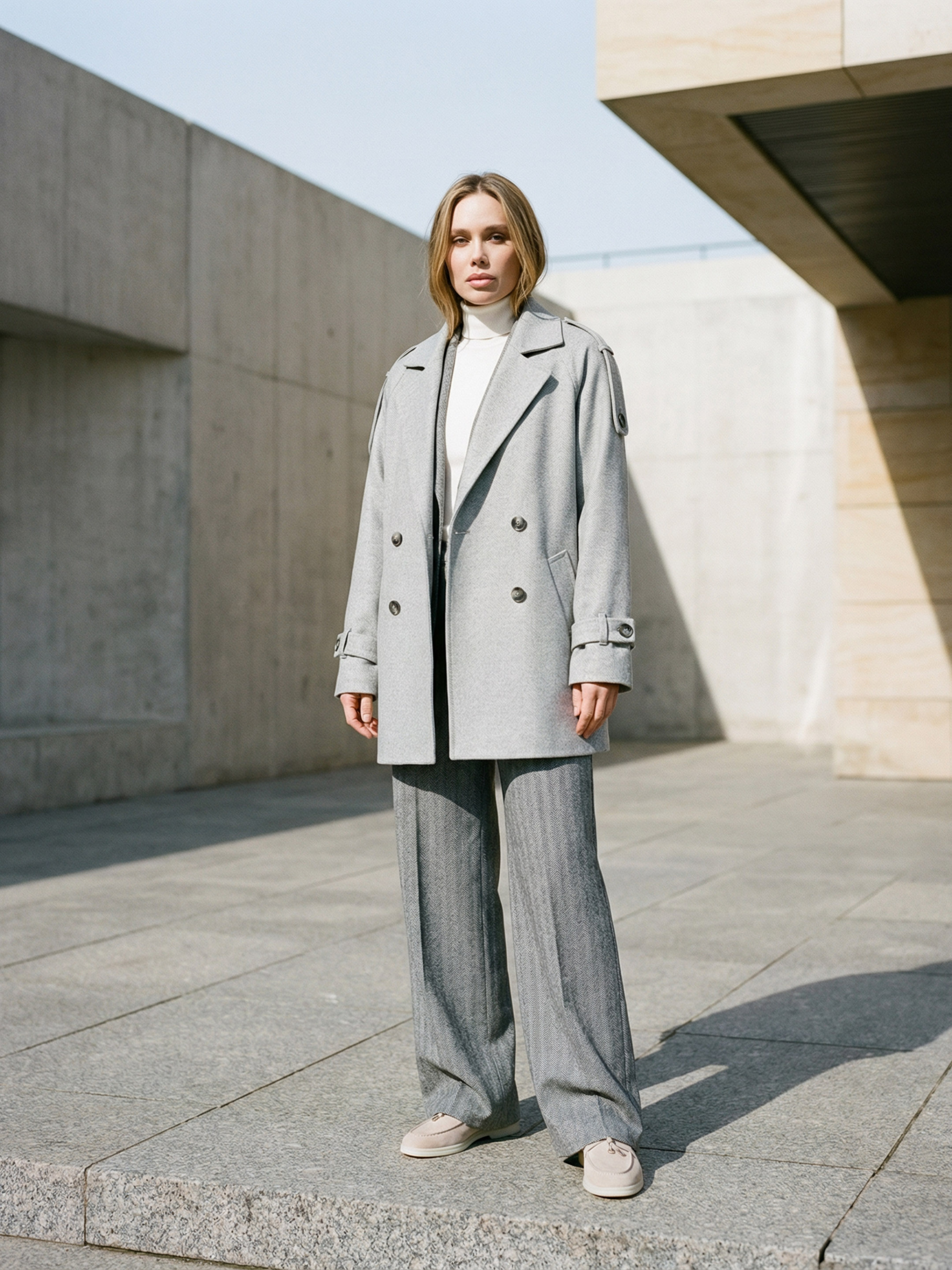Женское демисезонное пальто из коллекции Pre-spring 26 выполнено из качественной итальянской шерсти — тёплого, плотного и приятного на ощупь материала, который хорошо держит форму и обеспечивает комфорт в прохладную погоду. Модель имеет прямой свободный фасон со спущенным рукавом, создающий современный силуэт и удобство в носке. Двубортная полочка на пуговицах придаёт изделию классический стиль, а декоративные погоны и перетяжки на рукавах делают модель более выразительной. Функциональные карманы добавляют практичности, а универсальный дизайн позволяет легко сочетать пальто с деловыми и повседневными образами. S–M: Обхват груди: 84–88 см; Обхват талии: 68–72 см; Обхват бёдер: 92–96 см. L–XL: Обхват груди: 92–96 см; Обхват талии: 76–81 см; Обхват бёдер: 100–105 см. 2XL–3XL: Обхват груди: 100–105 см; Обхват талии: 86–91 см; Обхват бёдер: 110–115 см. Рекомендации по уходу — ручная стирка до 30°. Характеристики Коллекция Pre-spring 26 Материал итальянская шерсть Цвет серый Фурнитура пуговицы Фасон прямой, свободный Сезон демисезон Декоративные элементы двухбортная полка, погоны, перетяжки на рукавах Конструктивные элементы приспущенного рукава, карманы. Комплектация Пальто Уход за одеждой ручная стирка до 30°
