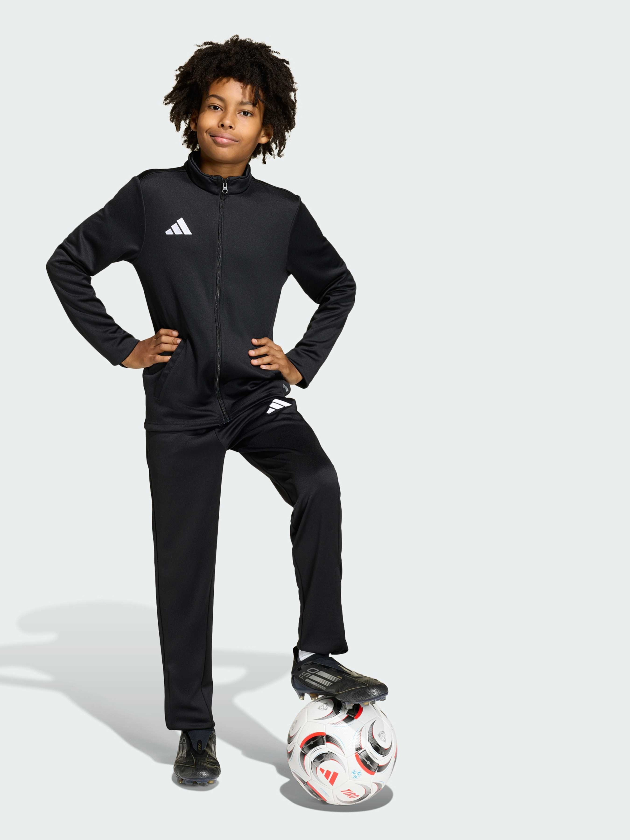 Характеристики Двухслойный трикотаж Стандартный крой Технология CLIMACOOL Шнурок Молния на щиколотке Описание Детские тренировочные брюки Entrada26 Kids помогут твоему ребенку выходить на поле с уверенностью. Созданные для юных футболистов, они сочетают комфорт и функциональность: свободный крой не сковывает движений и позволяет полностью сосредоточиться на игре. Прочные трикотажные брюки выдерживают нагрузки как на тренировках, так и на матчах. Вышитый Badge of Sport добавляет фирменный стиль adidas, делая их модным и спортивным выбором для юного футболиста. Технология Climacool отводит пот, помогая оставаться прохладным и сухим даже в интенсивной игре. Завязки на поясе обеспечивают надежную посадку, а молния на щиколотке позволяет легко переодеваться. Для тренировок, матчей или активных игр - эти брюки поддержат каждое движение твоего ребенка.