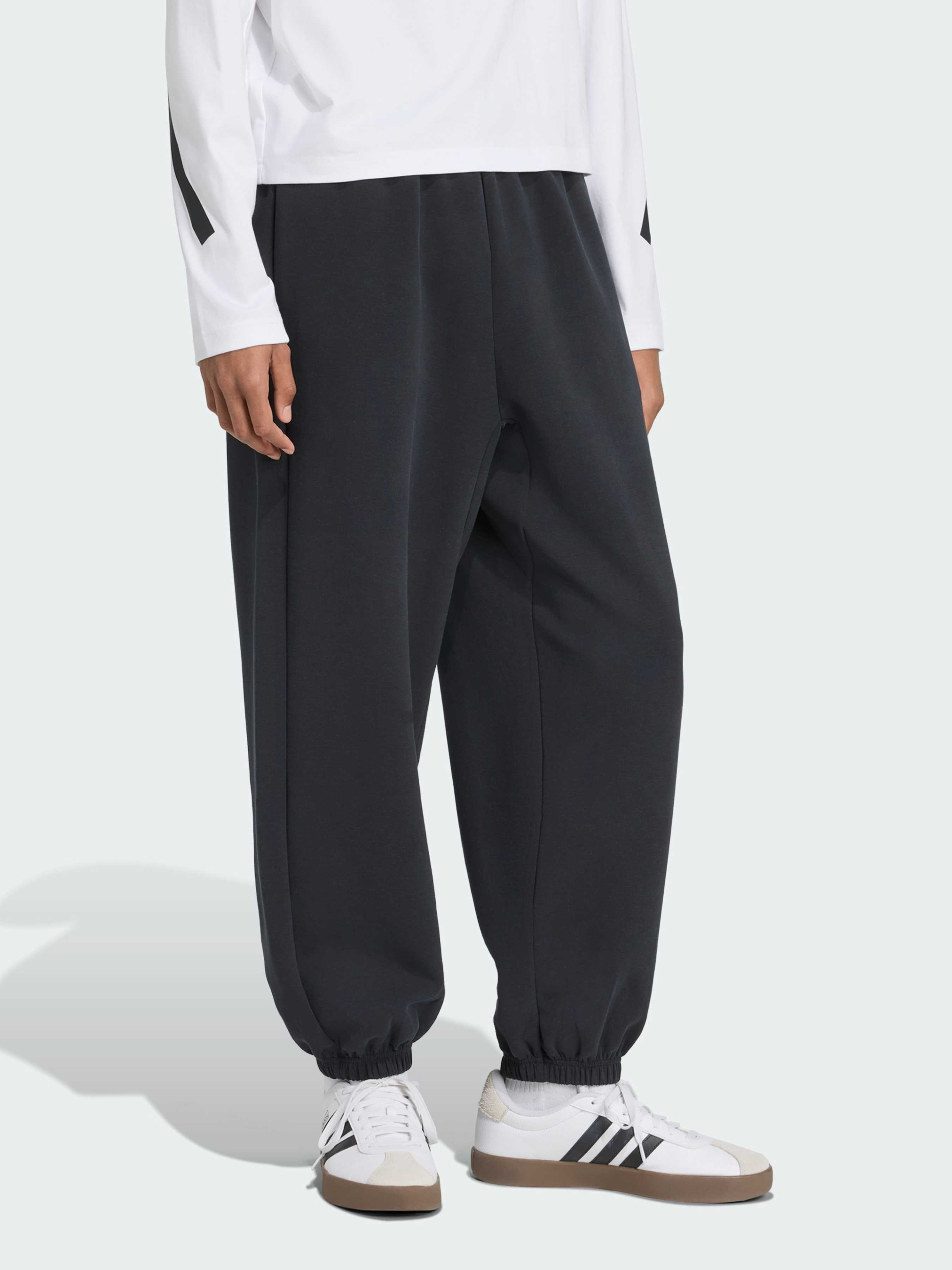 Характеристики 51% переработанный полиэстер, 25% модал, 15% хлопок, 9% эластан Боковые карманы Свободный крой Эластичные края Эластичный пояс на завязках-шнурках Застежка-молния Описание Надень эти брюки adidas и ощути легкий комфорт. Минималистичный дизайн делает их универсальным выбором, будь то дела по городу или отдых дома. Выполненные из хлопкового френч-терри, они мягкие и теплые. Карманы позволяют удобно хранить телефон и ключи, пока ты в движении.
