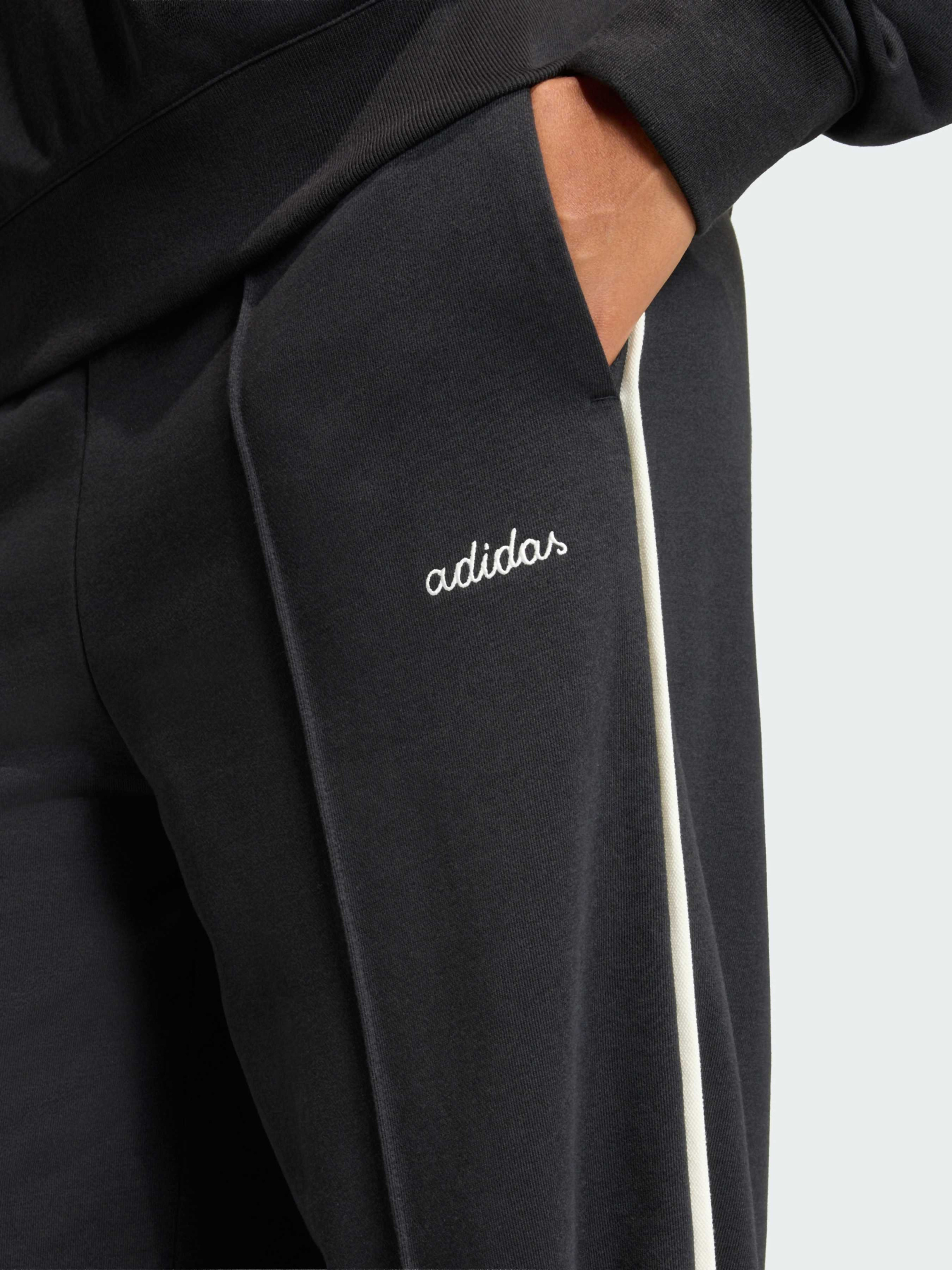 Характеристики 55% хлопок, 36% переработанный полиэстер, 9% вискоза Высокая посадка Стандартный крой Футер Эластичный пояс на завязках-шнурках Описание Иногда именно детали создают настроение. Брюки adidas Seasonal Essentials Colourpop with Embroidered Graphic - это сочетание уюта и стиля, которое выделяется яркими тремя полосками по бокам и оригинальной надписью adidas. Вдохновленные классическими теннисными силуэтами, они добавляют игривую нотку в повседневный образ. Мягкий футер обеспечивает комфорт и тепло, а высокая посадка подчеркивает фигуру. Прямые штанины создают расслабленный силуэт, идеально подходящий для прогулок и отдыха. Носи их с любимыми кроссовками и топом - и твой образ будет выглядеть безупречно в любой ситуации.