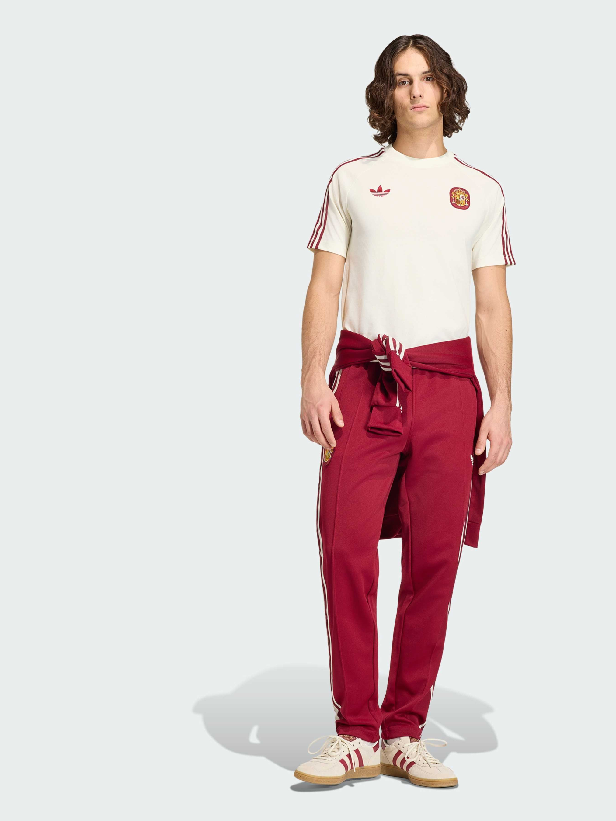 Характеристики 70% переработанный полиэстер, 30% хлопок Завязки-шнурки Интерлок Стандартный крой Описание Спортивные брюки Spain Originals - дань уважения футбольной культуре, сочетание наследия и современного стиля. Изготовленные из ткани интерлок, они обеспечивают комфортную посадку. Трилистник добавляет классический акцент adidas, а шнурок помогает надежно зафиксировать посадку. Созданы для тех, кто живет футболом, эти брюки отлично подойдут как для прогулок, так и для поддержки команды на трибунах. Свободная посадка гарантирует удобство, делая их универсальным элементом гардероба. Будь то стадион или встреча с друзьями - эти брюки подарят тебе стиль и комфорт.