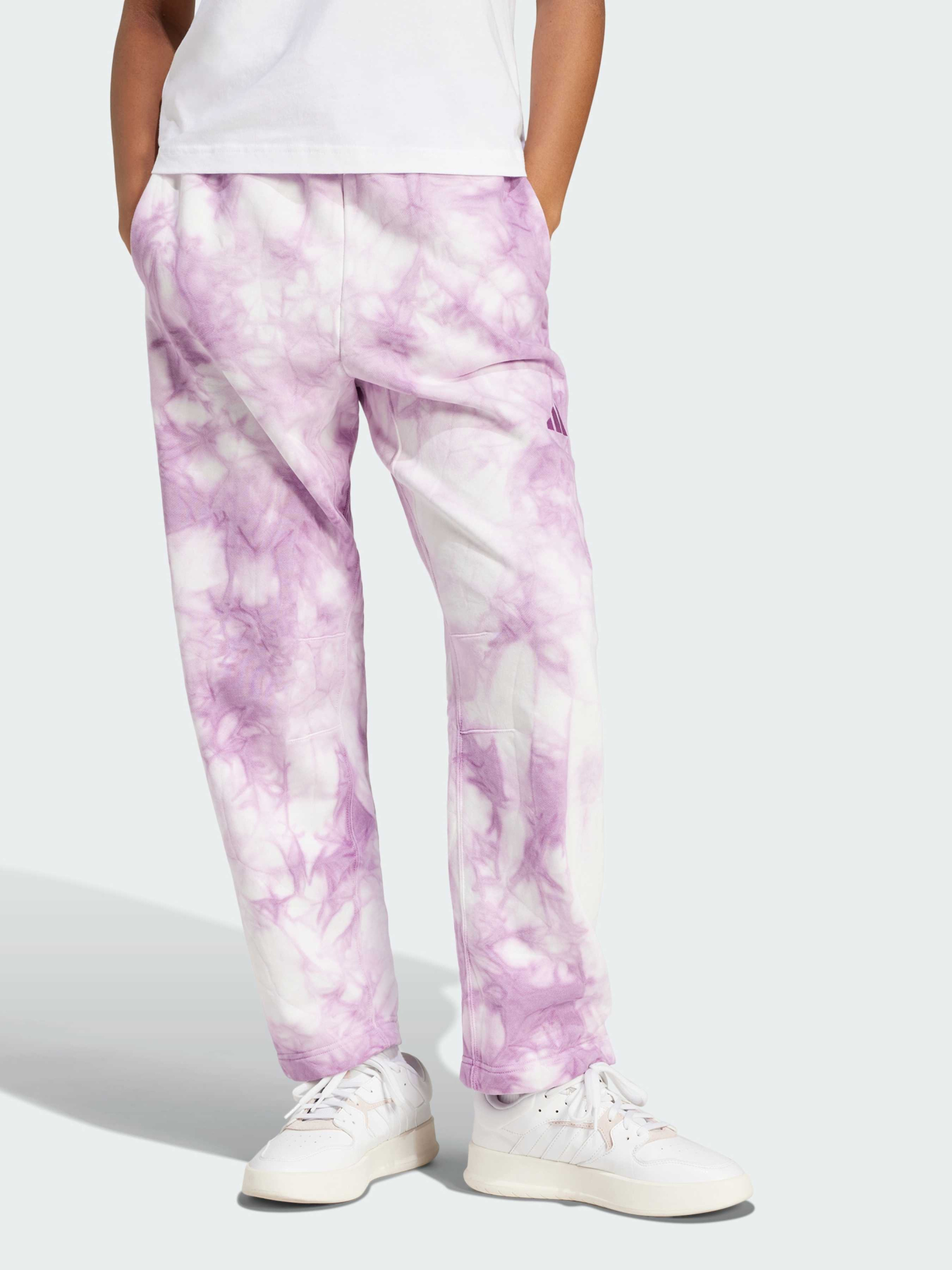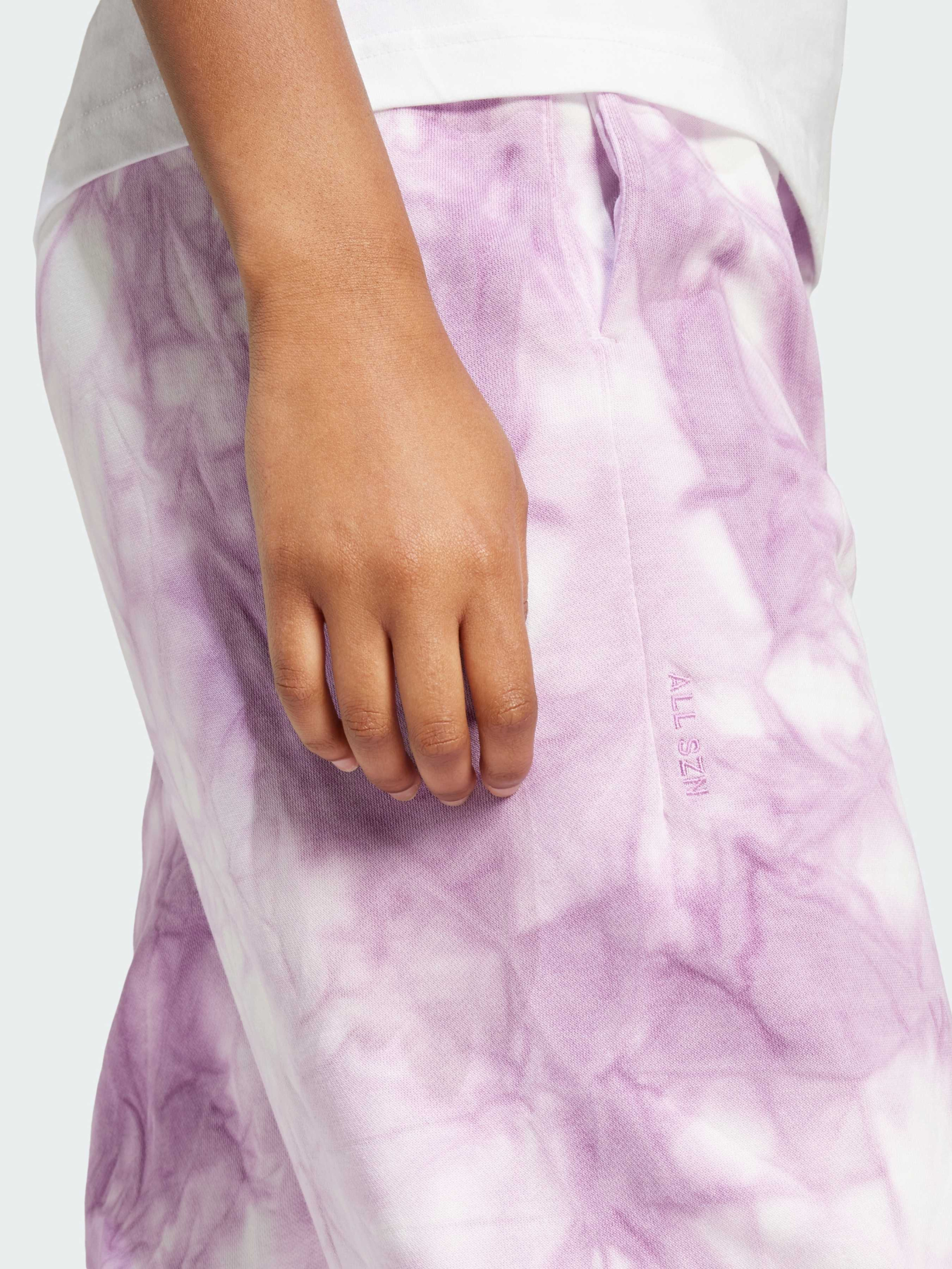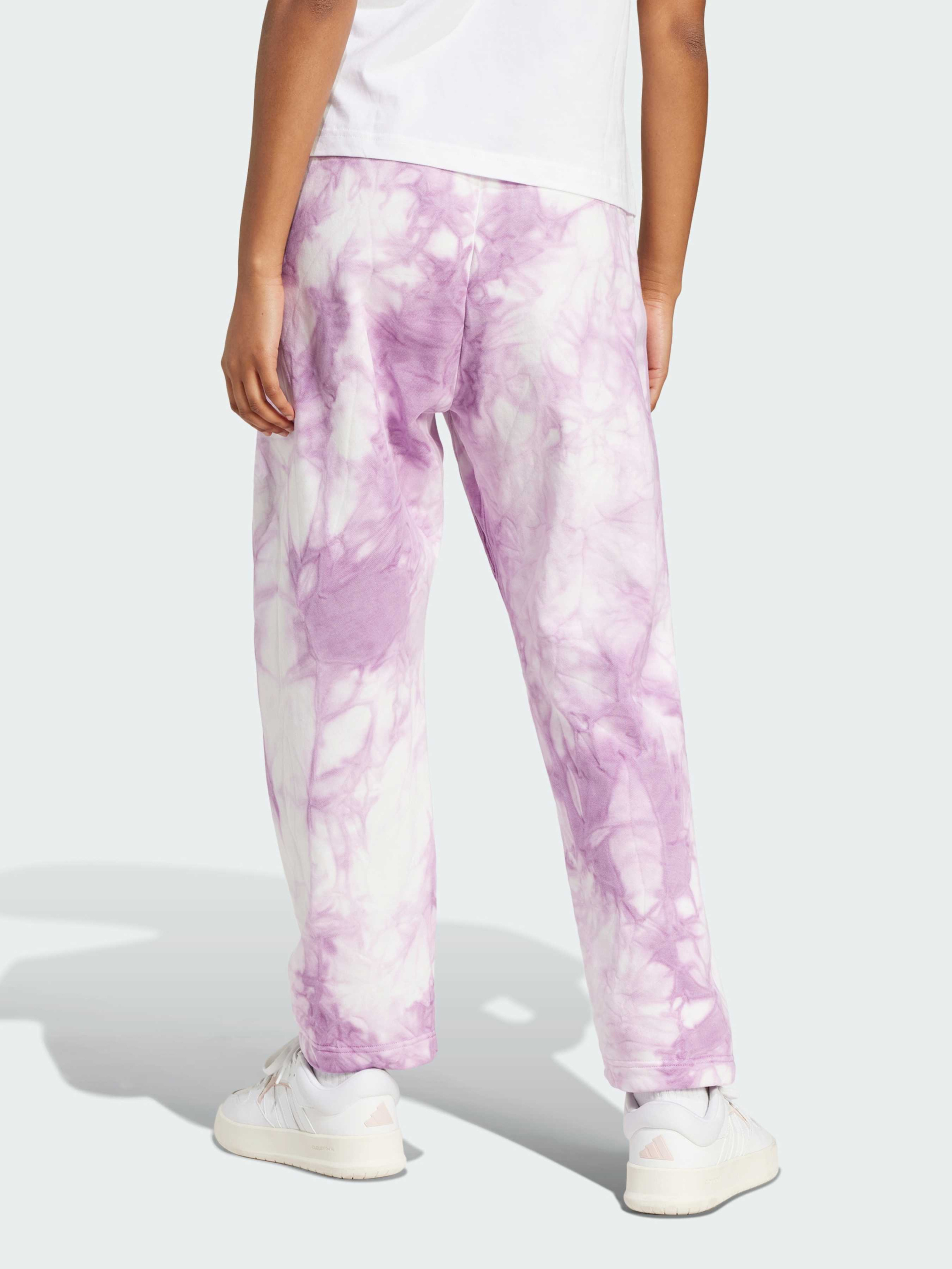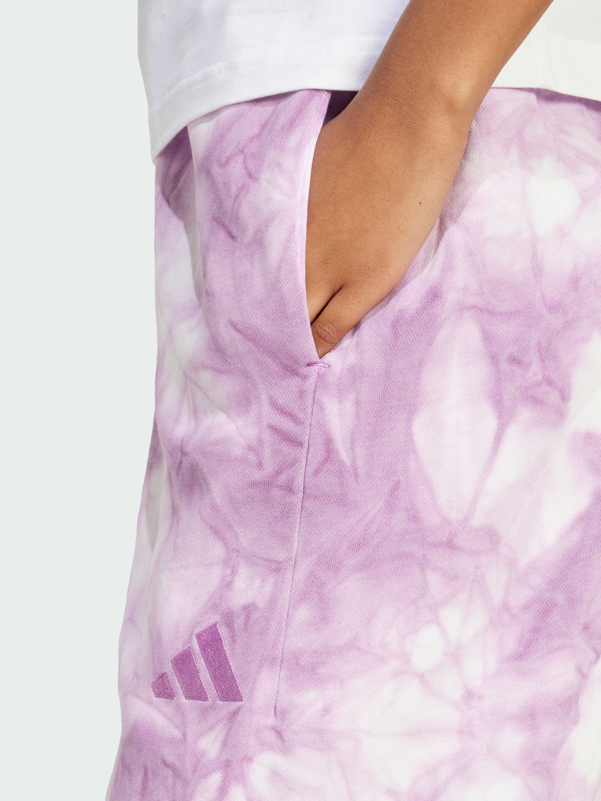 Характеристики 70% хлопок, 30% переработанный полиэстер Высокая посадка Материал с мягкой флисовой подкладкой Передние карманы Свободный крой Эластичный пояс на завязках-шнурках Штаны с расширяющимися к низу штанинами Длина семь восьмых Без бокового шва Описание Отдых ещё никогда не выглядел так стильно. Эти брюки adidas будут сопровождать тебя повсюду — от дивана до утренней прогулки за кофе благодаря свободному крою с объёмными штанинами и эластичному поясу. Высокая посадка гарантирует комфорт, а передние карманы пригодятся для телефона и ключей. Но главная особенность — уникальный принт тай-дай, делающий каждую пару неповторимой.