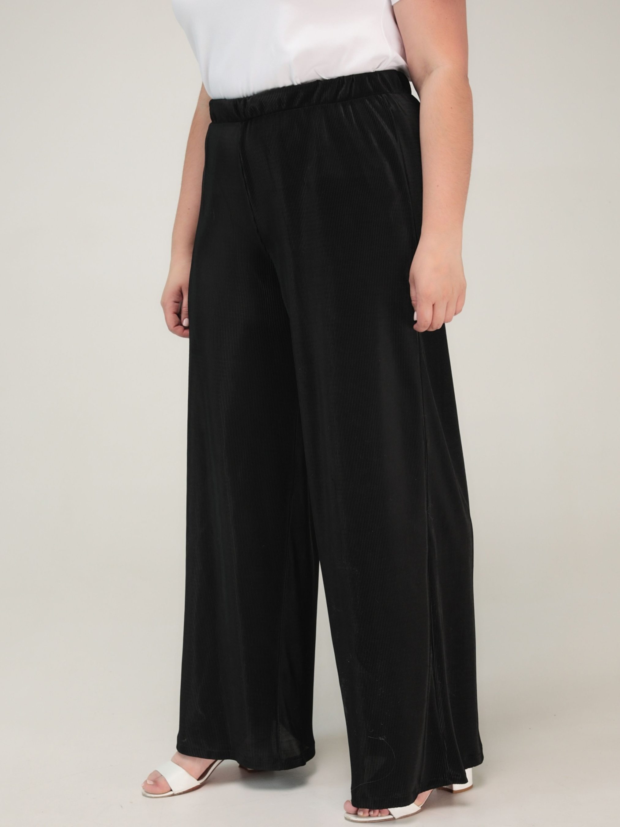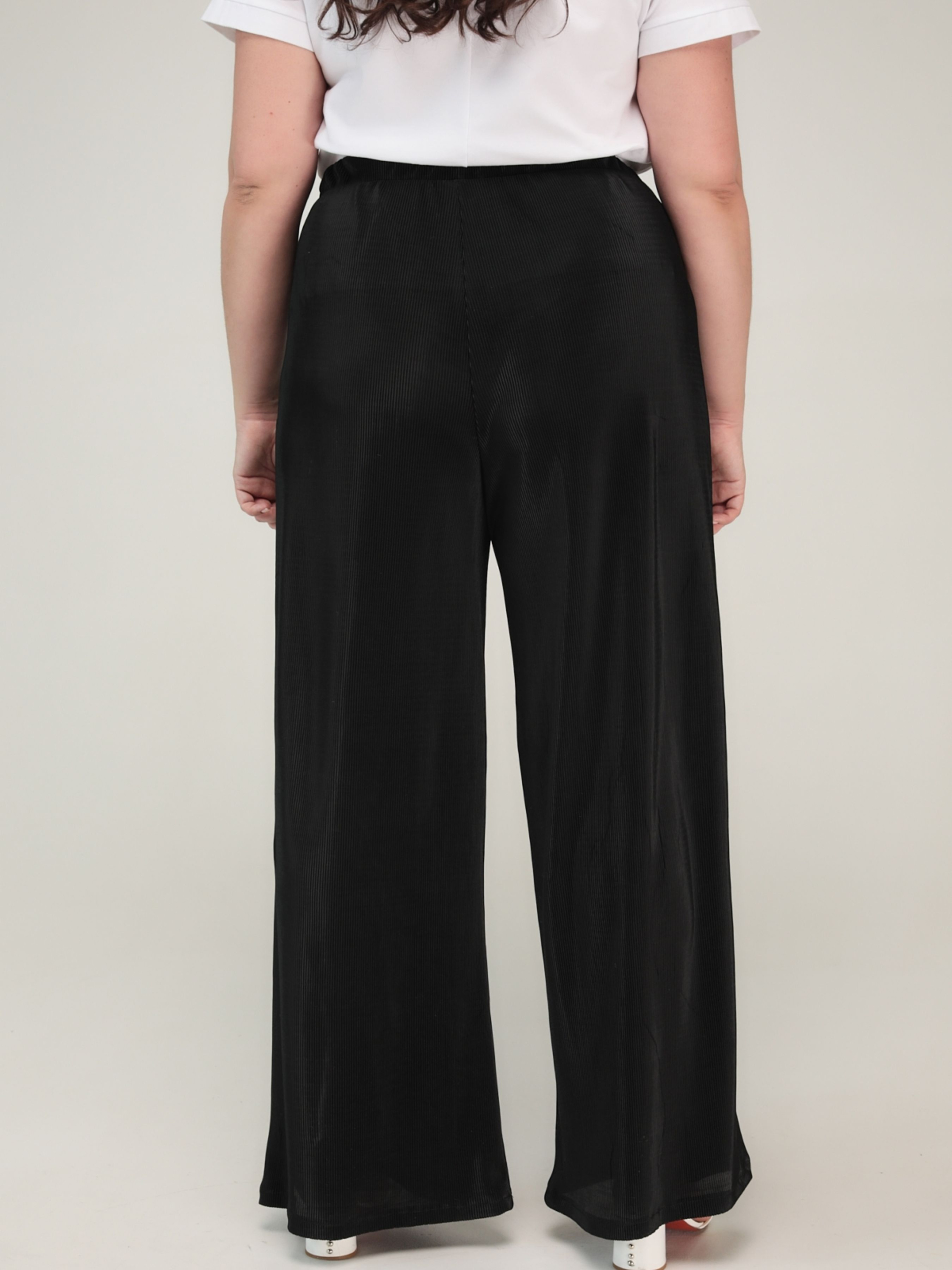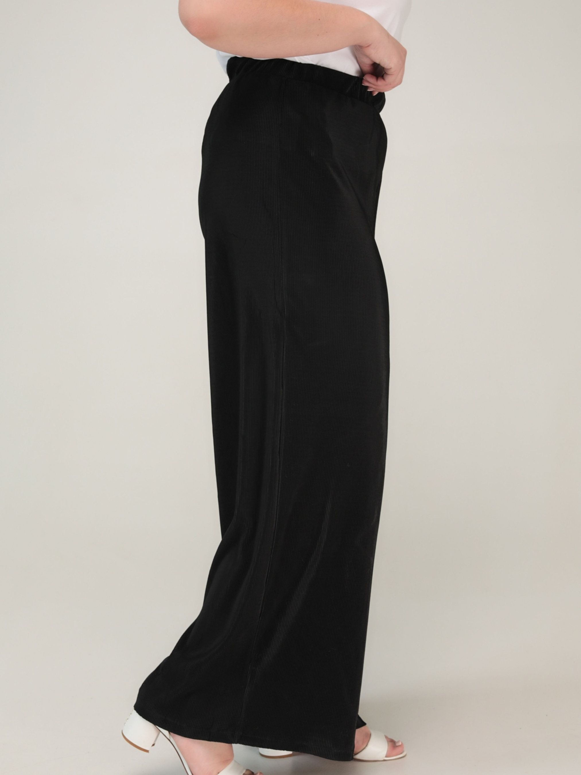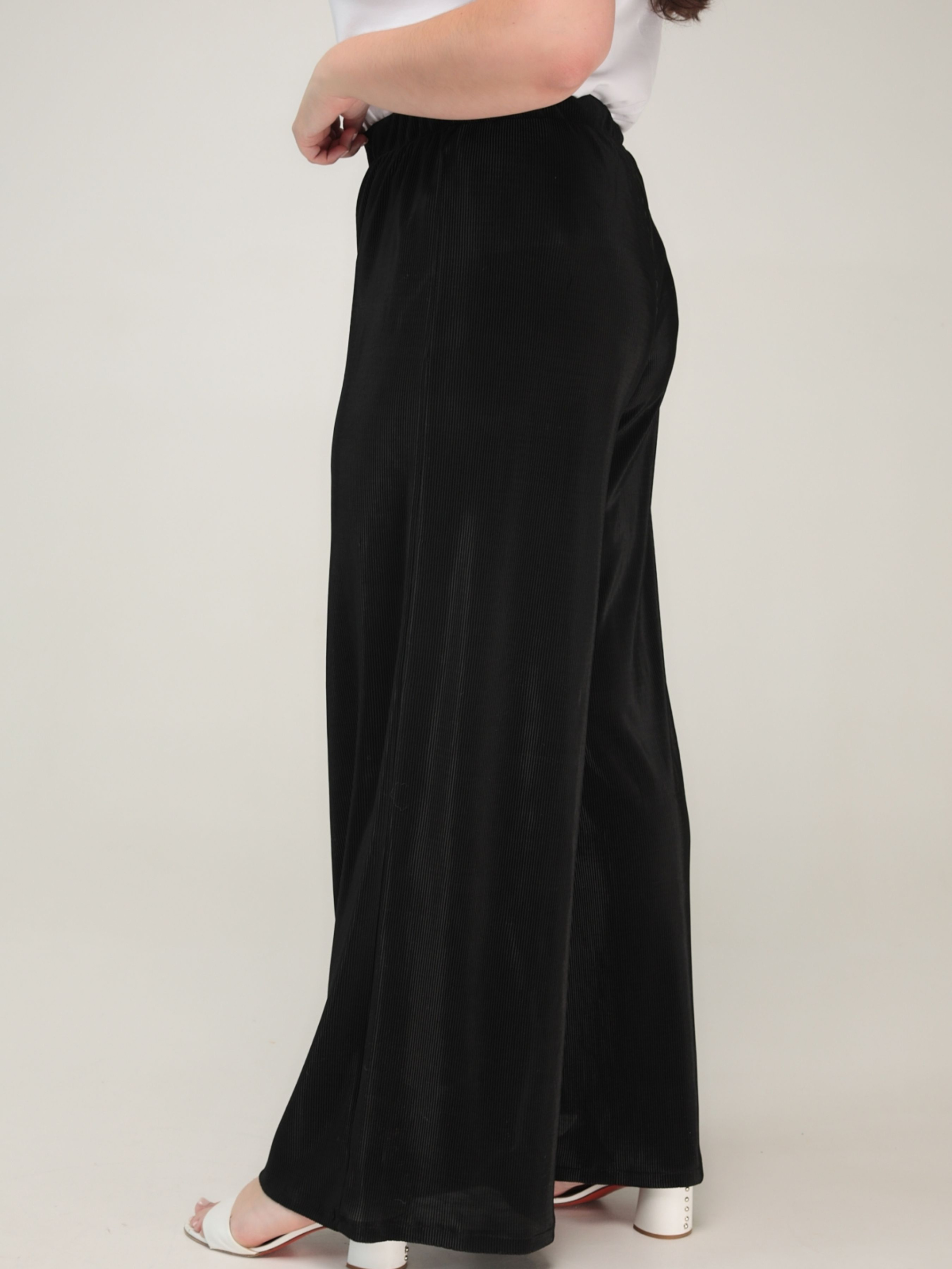 Штани «Доріс» від TM ALL POSA — це стильна та зручна модель у фасоні палаццо, яка стане ідеальним вибором для літнього сезону. Виготовлені з трикотажу гофре (95% поліестер, 5% еластан), ці штани мають рифлену структуру з легким мерехтливим ефектом, що додає елегантності образу. Основні характеристики: Фасон: палаццо — широкі, розкльошені від талії штани, що забезпечують вільну циркуляцію повітря та комфорт у спекотну погоду. Посадка: висока талія на еластичній резинці з розтяжністю 8–10 см, що забезпечує зручну посадку. Колір: класичний чорний, універсальний для поєднання з різними елементами гардеробу. Ці штани ідеально підходять для створення як повсякденних, так і святкових образів. Їх можна поєднувати з блузами, топами або легкими жакетами. Завдяки еластичній тканині та вільному крою, модель «Доріс» забезпечує комфорт протягом усього дня. Переваги: Легка та дихаюча тканина, що не просвічується. Універсальний фасон, який підходить для різних типів фігур. Висока якість пошиття та матеріалів. — чудовий вибір для жінок, які цінують комфорт, стиль та якість.
