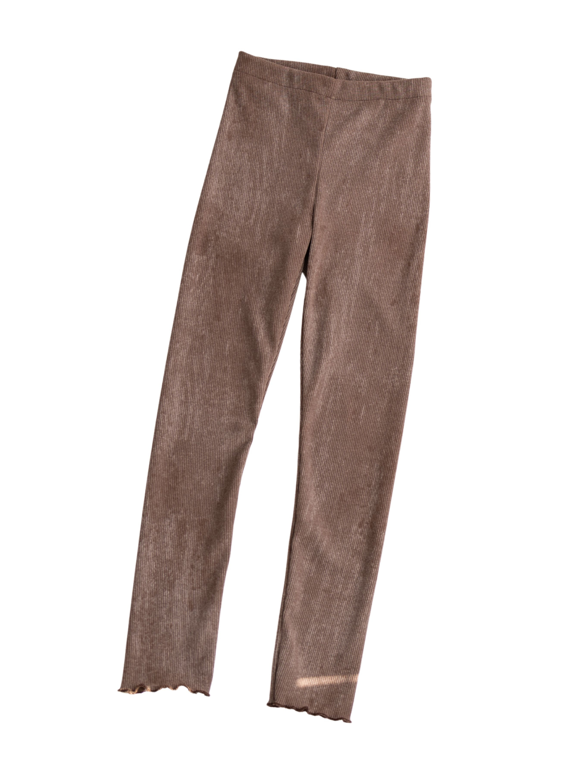 Модель изготовлена из высококачественного хлопкового трикотажа в классический рубчик, который отличается мягкостью, отлично тянется и идеально садится по фигуре, обеспечивая максимальную свободу движений во время активных игр или прогулок. Уникальный эффект вываривания ткани придает изделию трендовый винтажный вид и мягкую неравномерность тона, что делает каждую пару эксклюзивной. Лосины обладают комфортной высокой посадкой на широкой эластичной резинке, которая надежно фиксирует изделие на талии, не пережимая кожу и не вызывая раздражений. Благодаря натуральному хлопковому составу материала эти лосины приятны к телу, позволяют коже «дышать» и сохраняют свою форму и насыщенность фактуры даже после многократной стирки, что делает их практичным и незаменимым элементом для создания уютных повседневных образов в сочетании с лонгсливами, худыми или футболками.