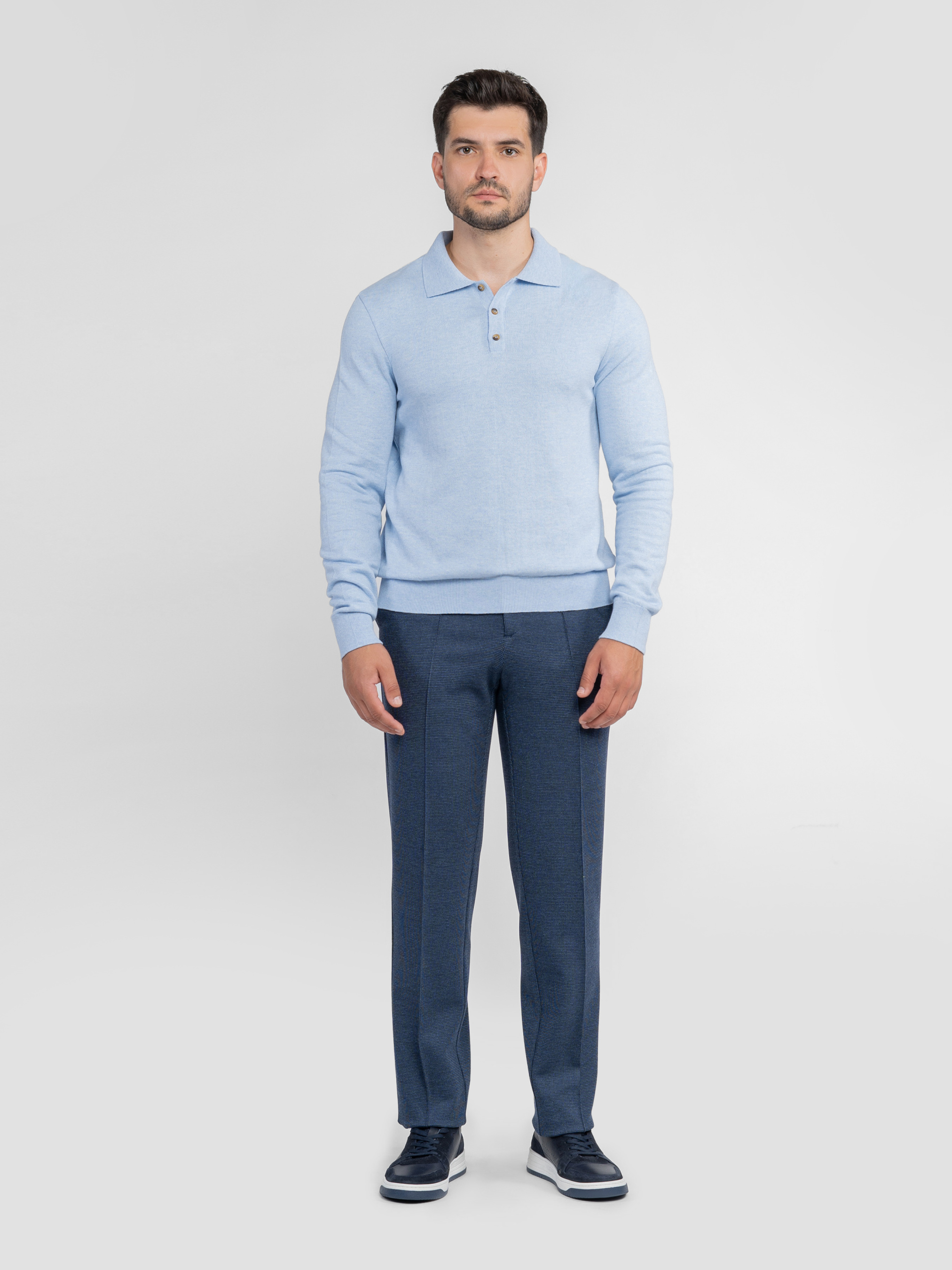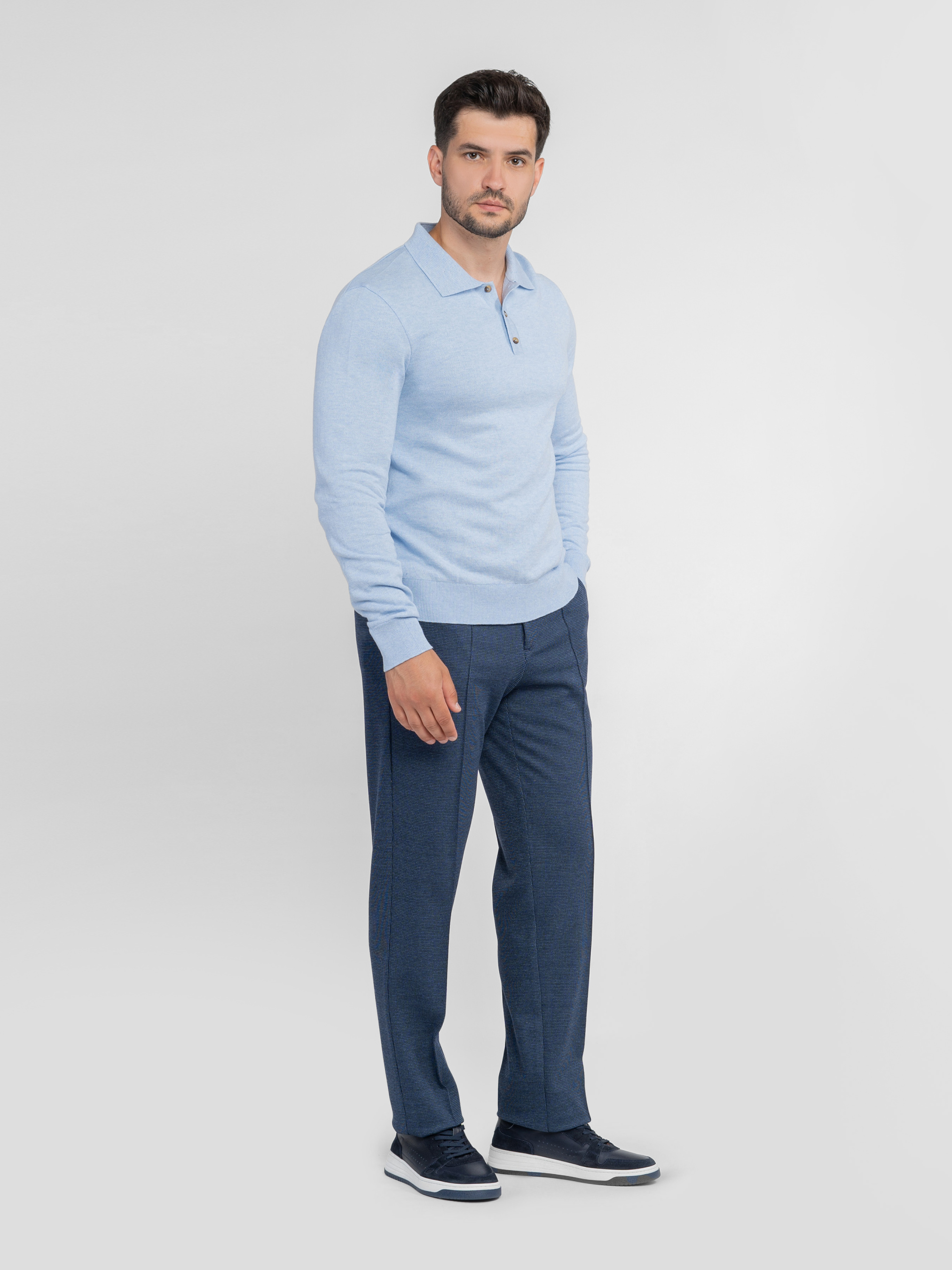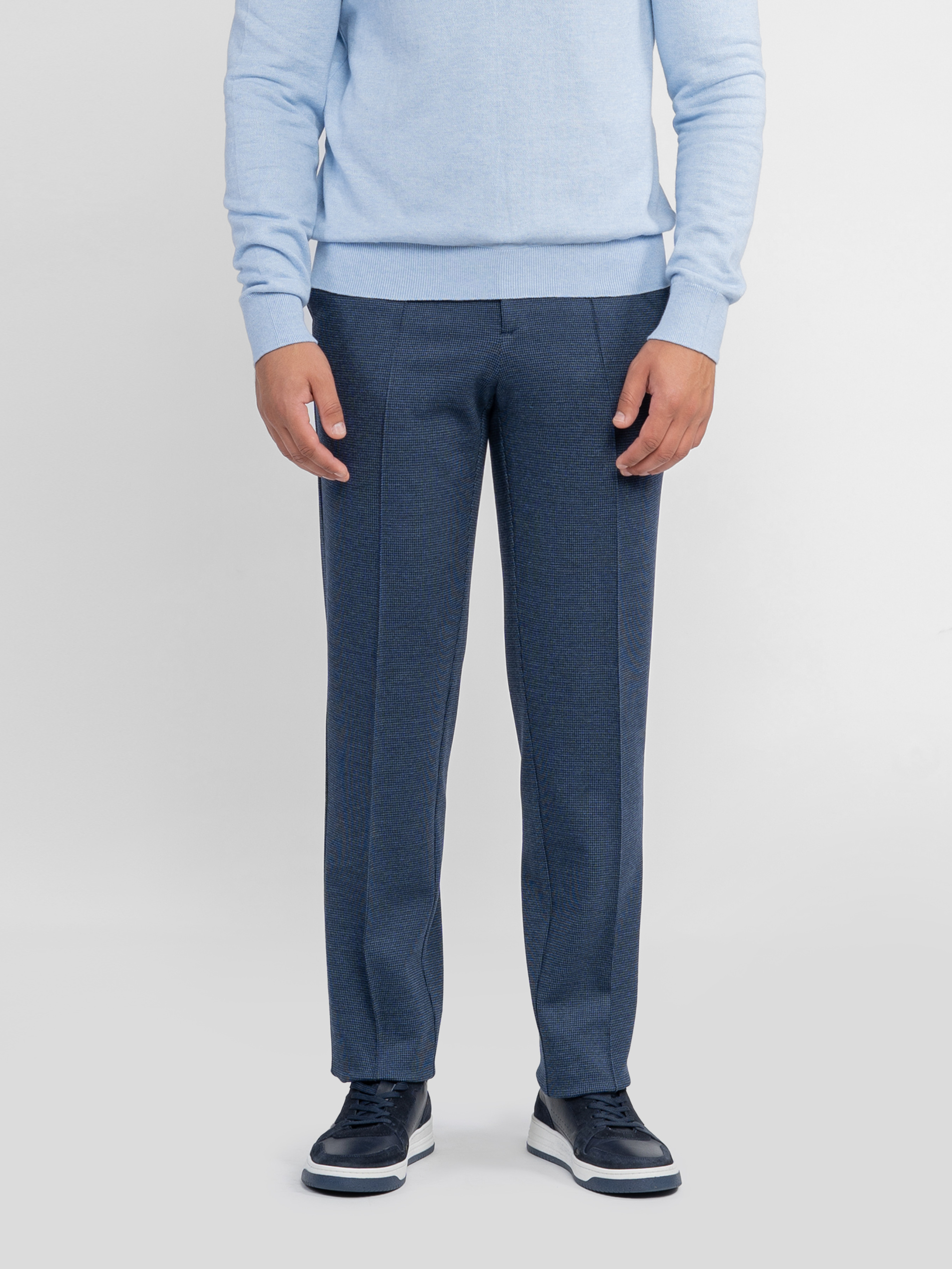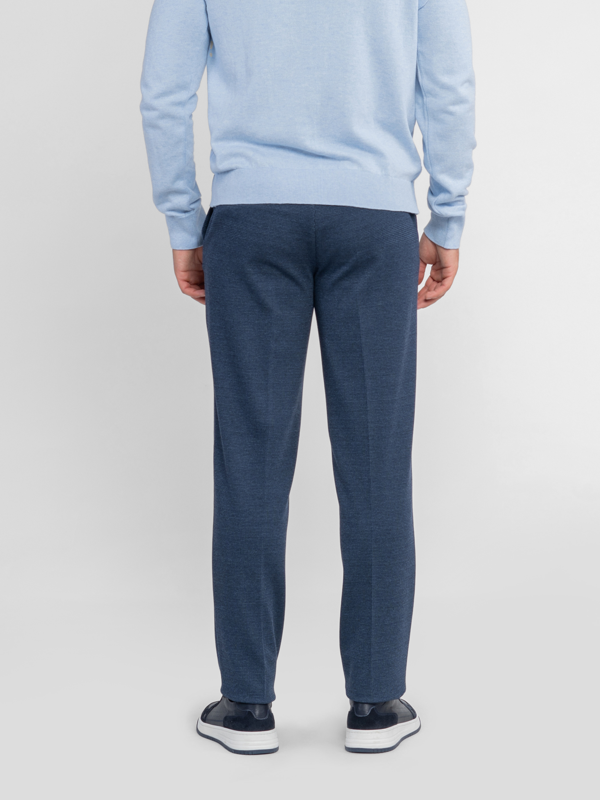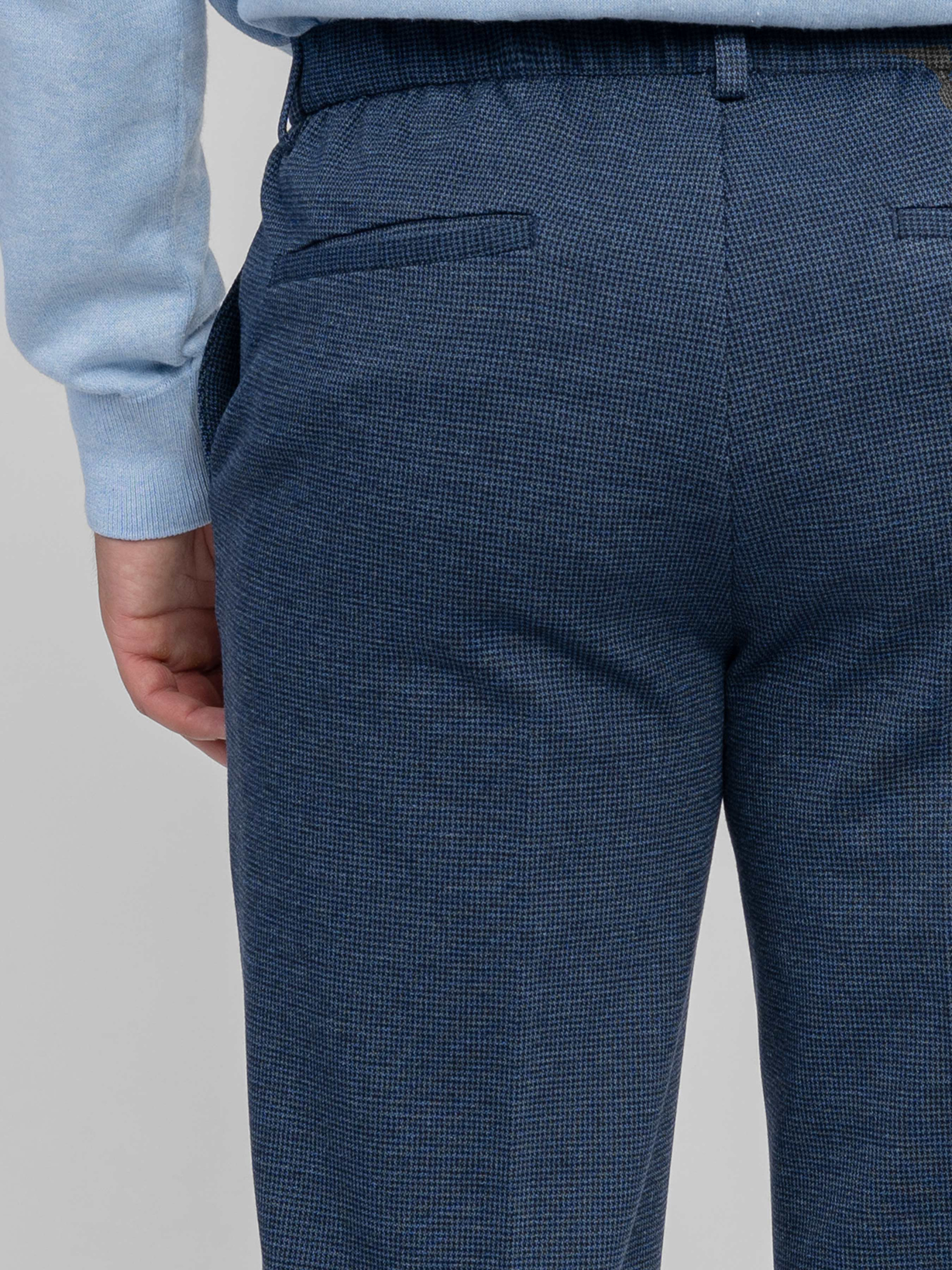 Мужские брюки Arber синего цвета созданы из эластичного трикотажа на основе вискозы. Мягкая и приятная на ощупь ткань адаптируется к телу, не сковывает движений и гарантирует комфорт в течение всего дня. Модель имеет среднюю посадку, аккуратные стрелки и пояс частично на резинке, с застежкой на молнию и пуговицу для удобства. Оснащены двумя косыми боковыми и двумя задними карманами. Идеально сочетаются с блейзером M02.01.06.531 или бомбером M17.01.06.531 из той же ткани для завершенного стильного образа. Модель на фото в размере 48. Рост: 180 см. Параметры: 103/85/97