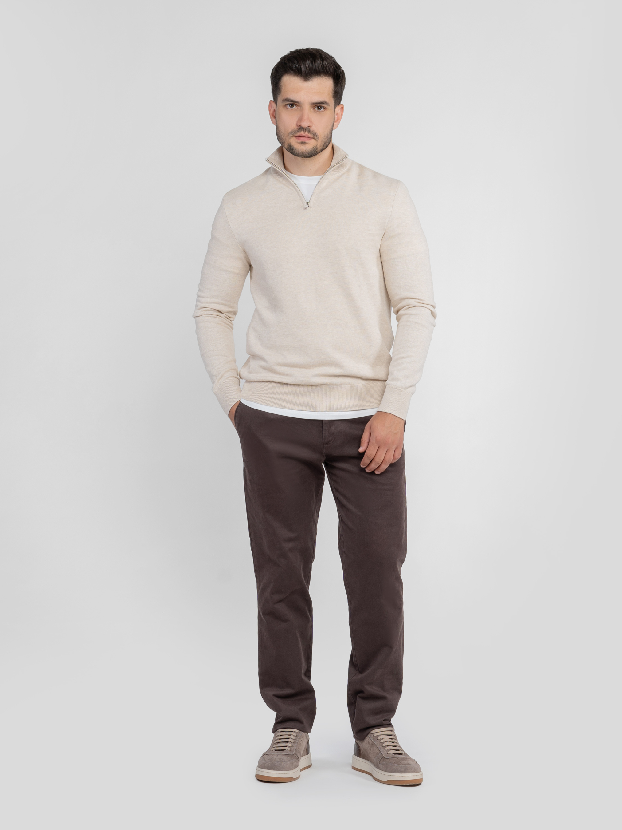 Мужские брюки Arber коричневого цвета, созданы из натурального мягкого хлопка с минимальным добавлением эластана для комфорта. Благодаря современному крою они идеально сидят по фигуре, сочетая элегантность и удобство. Брюки с застежкой на молнию и пуговицу, с двумя наклонными боковыми карманами и двумя прорезными задними. Модель удачно сочетается с трикотажными поло, лонгсвитами, рубашками или пиджаками для стильных повседневных образов. Модель на фото в размере 48. Рост: 180 см. Параметры: 103/85/97.