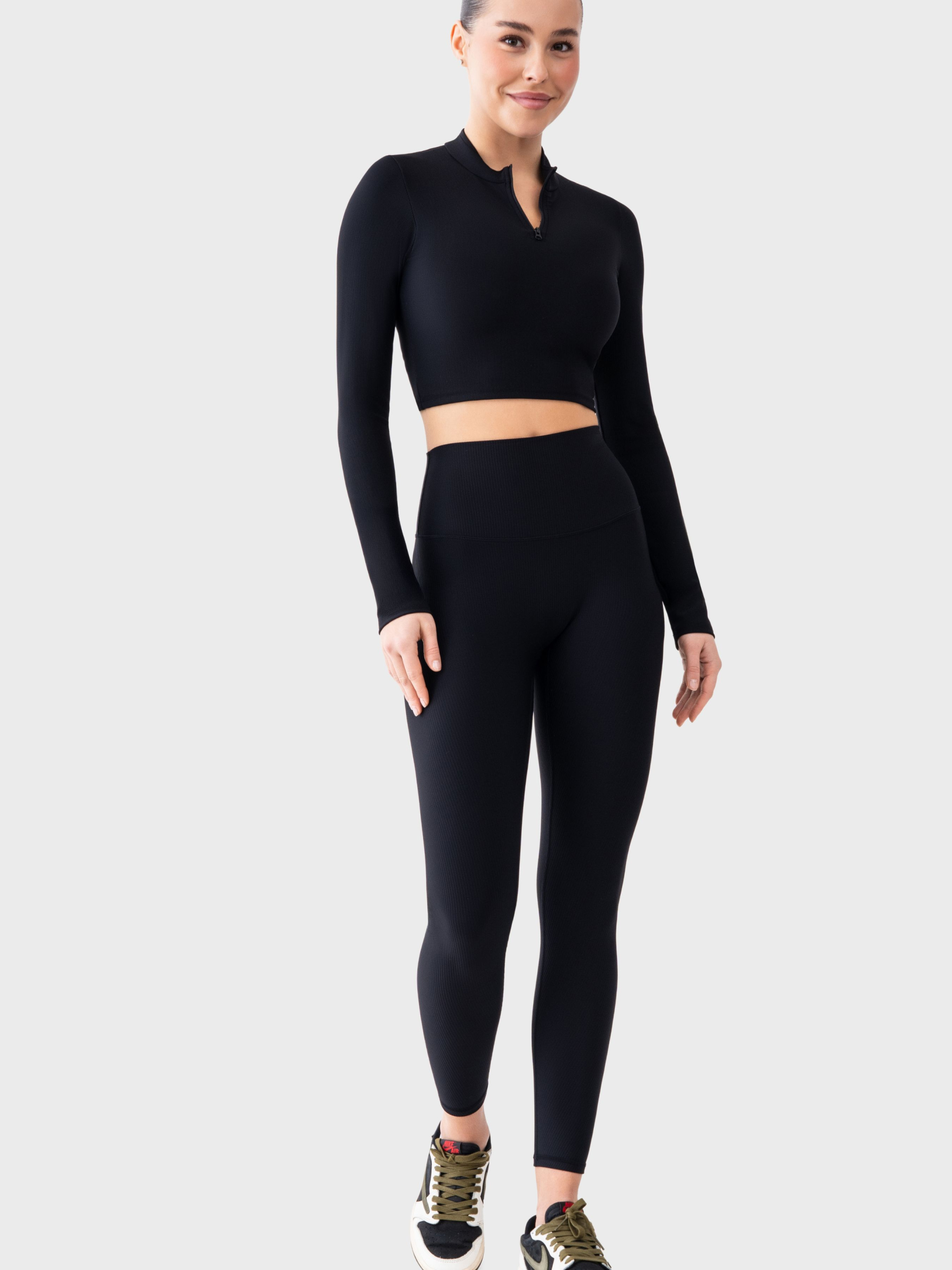 Чёрные легинсы AVECS созданы для активного образа жизни, тренировок и уверенного повседневного ношения. Продуманный крой и современные технологии обеспечивают плотное, но комфортное облегание, поддержку силуэта и аккуратный визуальный эффект без ограничения движений. Модель выполнена из эластичной ткани на основе нейлона 78% со спандексом 22%, которая отличается прочностью, высокой гибкостью и способностью точно адаптироваться к формам тела. Материал не просвечивает, хорошо сохраняет форму и остаётся приятным к телу даже при интенсивной активности. Технология High Waisted формирует высокую талию, обеспечивая надёжную фиксацию и стабильную посадку без сползания. Технология Hip Lifting создаёт подтягивающий эффект в зоне бёдер, подчёркивая естественные линии фигуры. Технология Slimming Skinny способствует моделированию и визуальному сужению силуэта. Чёрные легинсы AVECS сочетают функциональность, корректирующий эффект и минималистичный дизайн, делая их универсальным выбором для спорта, активного отдыха и повседневных спортивных образов. Состав: нейлон 78%, спандекс 22%.