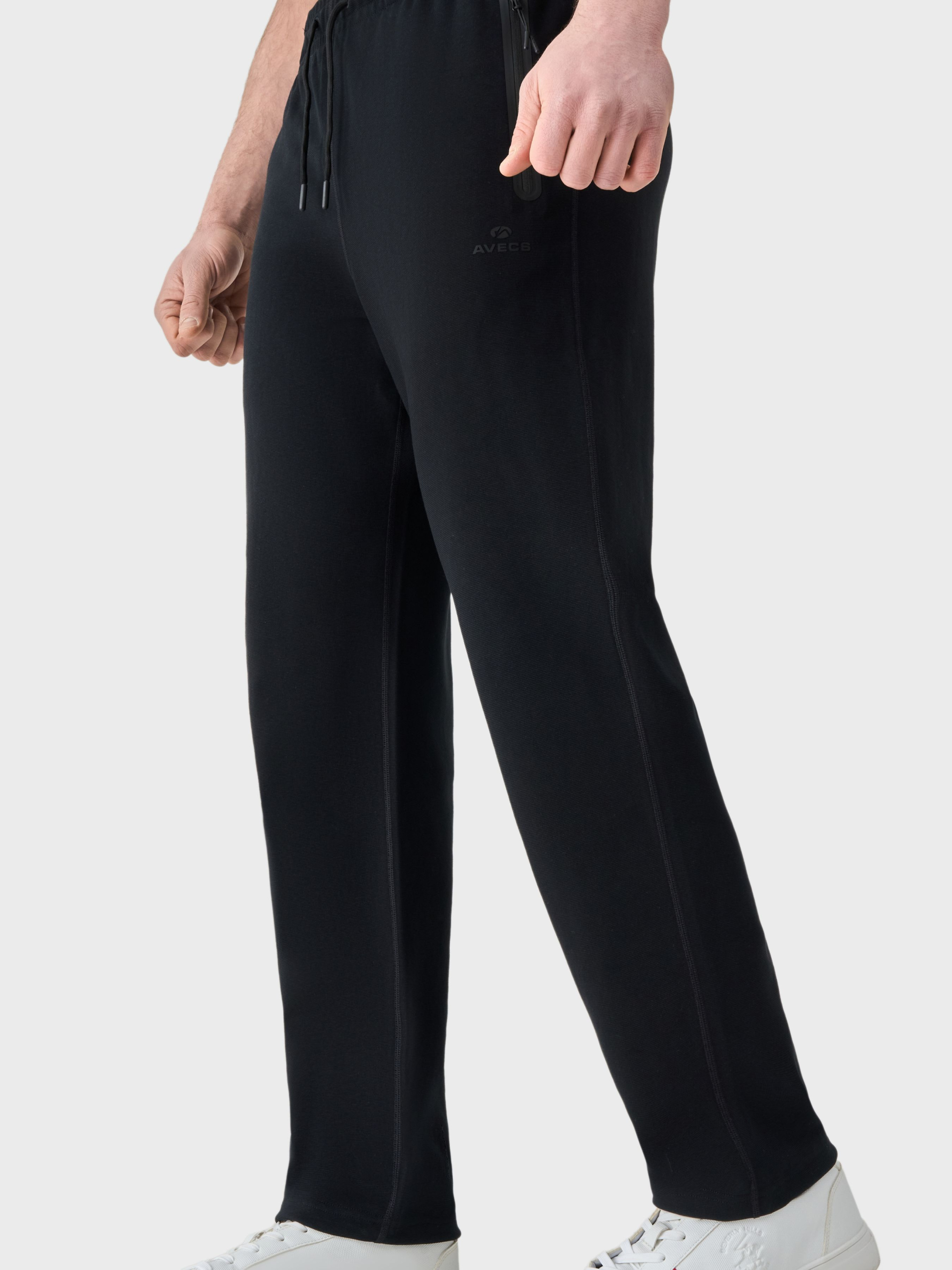 Черные штаны AVECS прямого кроя предназначены для комфортной повседневной носки и сдержанных городских образов. Модель сочетает классический силуэт, практичность и универсальный дизайн, что делает ее уместной как в casual-образах, так и в более собранном повседневном стиле. Брюки выполнены из структурированной ткани на основе коттона с добавлением полиэстера (75% котон, 25% полиэстер). Материал приятен к телу, хорошо держит форму, износоустойчив и подходит для регулярного использования. Прямой классический крой формирует чистоплотный силуэт и не ограничивает движений. Два кармана с водонепроницаемыми молниями обеспечивают надежное хранение необходимых вещей в ежедневном ритме. Система регулировки объема штанин с помощью втягивания позволяет адаптировать посадку и изменять вид изделия в зависимости от стиля или условий ношения. Черные прямые штаны AVECS – это функциональное решение для базового гардероба, сочетающее комфорт, практичность и лаконичную эстетику. Особенности: -Структурированная ткань -Две застежки с водонекпроницаемыми молниями -Прямой классический крой -Система регулировки объема штанин с помощью втягивания Состав: котон 75%, полиэстер 25%.
