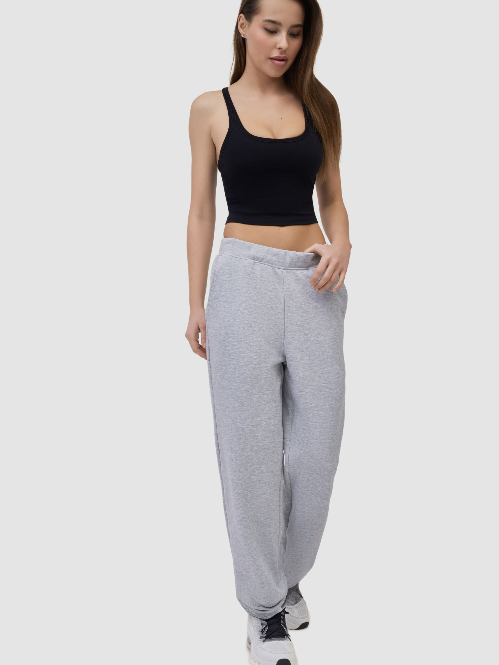 Женские брюки AVECS в сером цвете сочетают комфорт, функциональность и сдержанный современный стиль. Модель выполнена из трикотажа Double Face – двустороннего материала, отличающегося мягкостью, приятными тактильными ощущениями и комфортом при контакте с кожей. Ткань хорошо удерживает тепло и способствует эффективному отводу влаги, обеспечивая комфорт в течение всего дня. Материал эластичный, износостойкий и стабильно держит форму даже после длительного ношения. Прямой крой и лаконичный дизайн делают штаны универсальным элементом гардероба. Модель легко сочетается с верхом AVECS, позволяя создать целостный спортивный образ для прогулок, поездок или активного городского ритма. Эластичный пояс со шнурками-завязками обеспечивает индивидуальную посадку, а функциональные карманы придают практичность в повседневном использовании. Серые штаны AVECS – это сочетание технологического материала, удобства и минималистичного дизайна для комфортной жизни каждый день. Особенности: -Трикотаж "Double Face" -Износостойкий -Прямой крой без манжетов -Аккуратные вертикальные линии кроя -Эластичный пояс с мягкой еврорезинкой -Два боковых кармана -Логотип AVECS -Комфортная посадка Состав: хлопок 60%, полиэстер 40%.