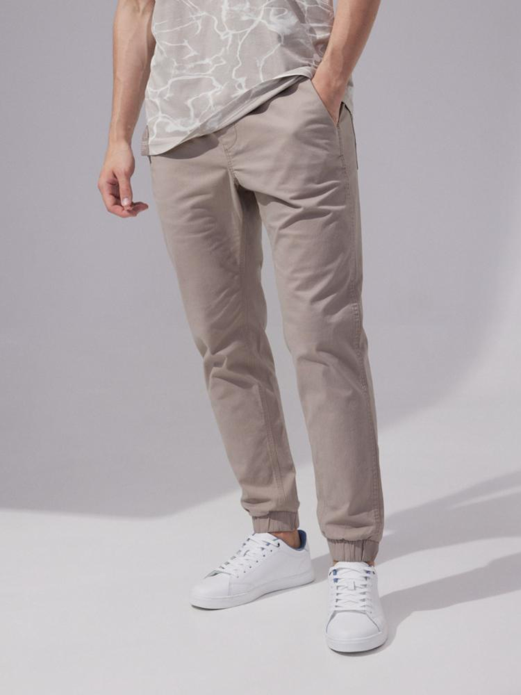 Штаны JOGS 234 10042623 Классические джоггеры. Подходит для повседневного стиля: - два кармана спереди и два вшитых кармана сзади, - эластичная ткань повышает комфорт при ношении, - модель с 5 карманами, - шнурок и эластичный пояс, - манжеты внизу штанины. Сезон: осень/зима Состав: 98% хлопок 2% эластан Уход: - стирка при максимум 30 °С - не отбеливать - не сушить в сушильной машине - гладить максимум при темп. 150 °С - не химчистка Размер на модели - XL Рост модели - 185 см