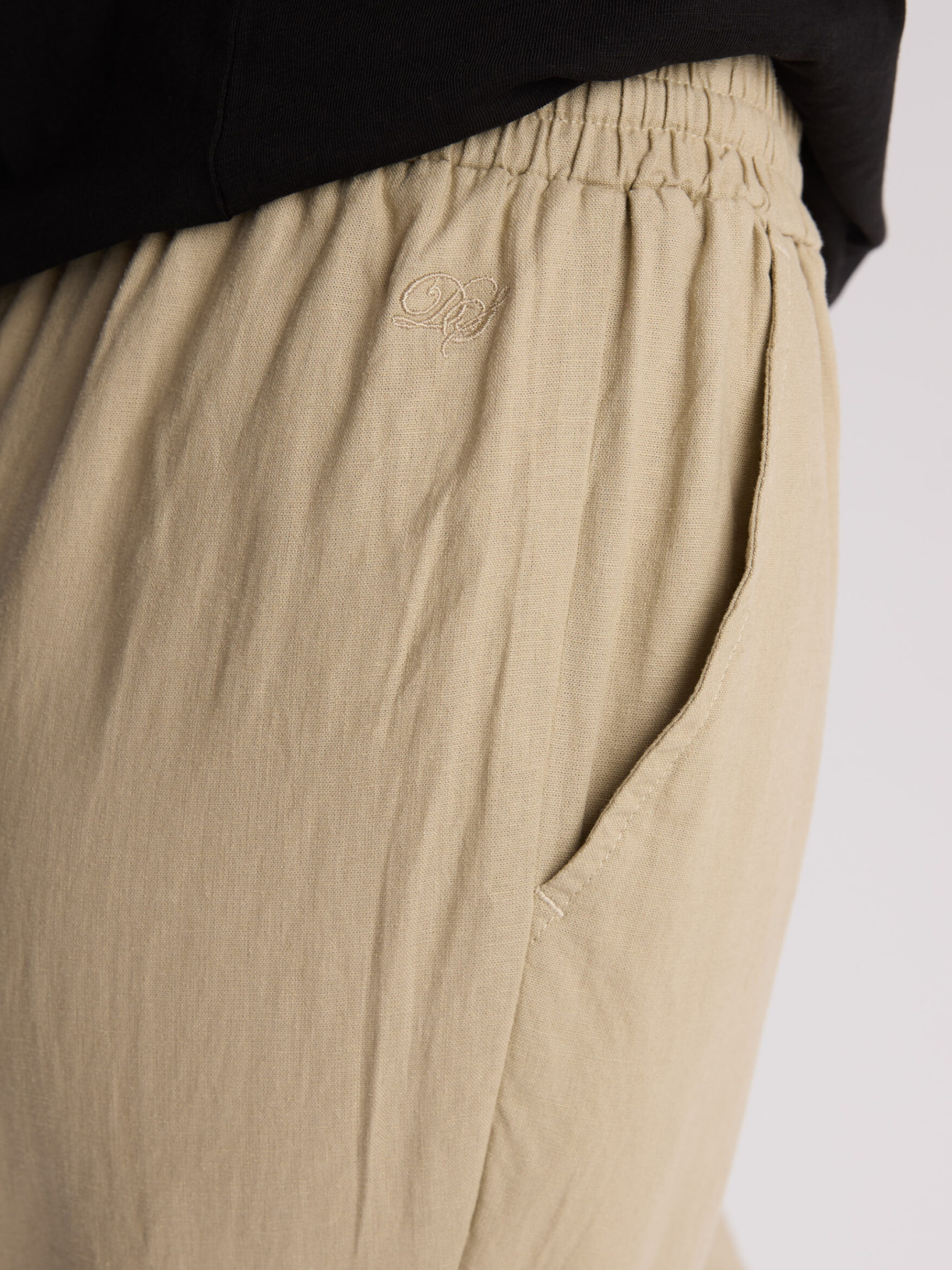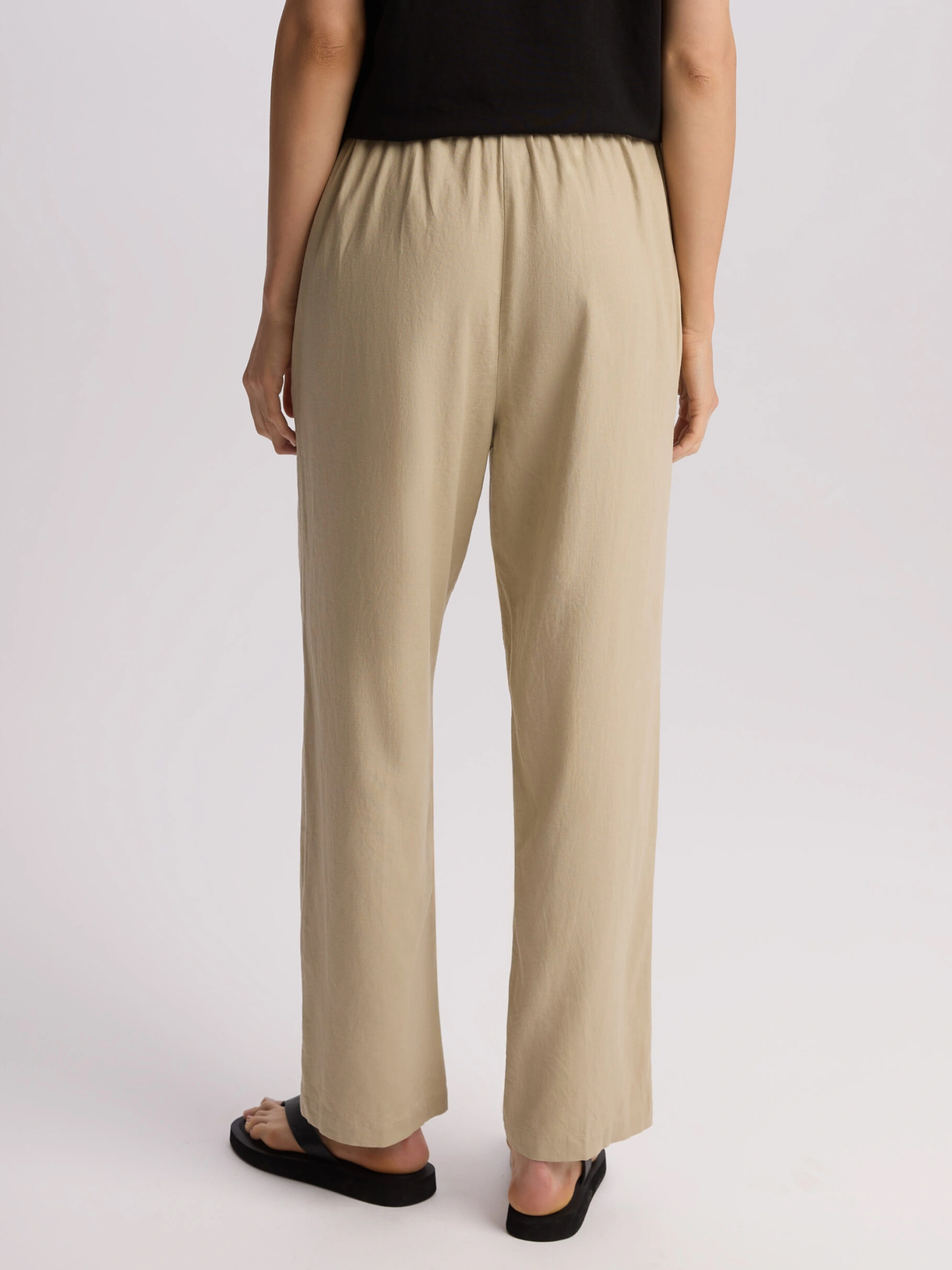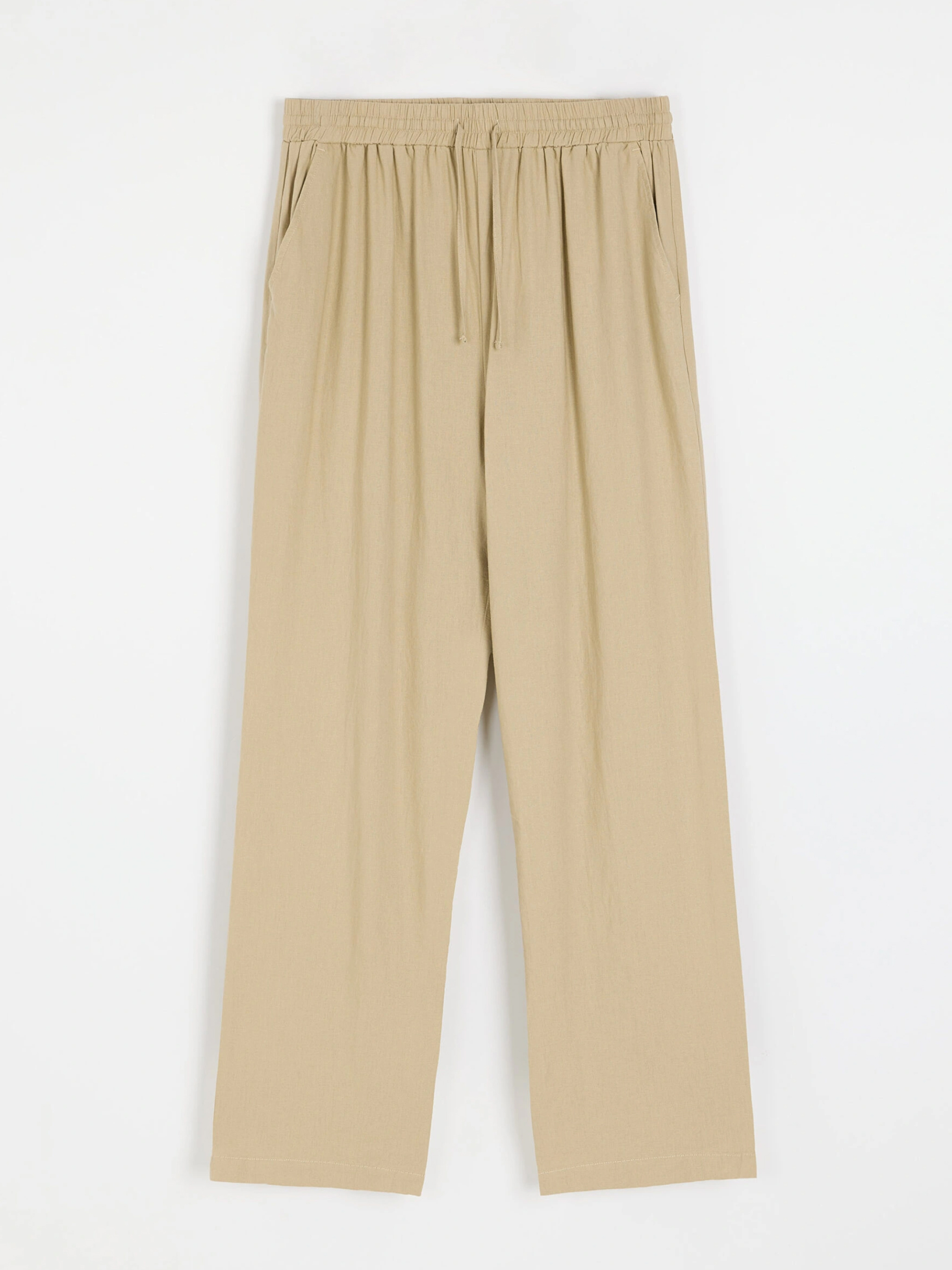 LENEA Женские брюки из льна и вискозы: - свободного кроя, - высокая талия с резинкой и завязкой на талии, - прямой крой к лодыжке, - карманы по бокам. Состав: 55% лен, 45% вискоза. Сезон: Весна/Лето Уход: - стирка при максимум 30 °С - не отбеливать - не сушить в сушильной машине - гладить максимум при темпе. 150 °С - не химчистка